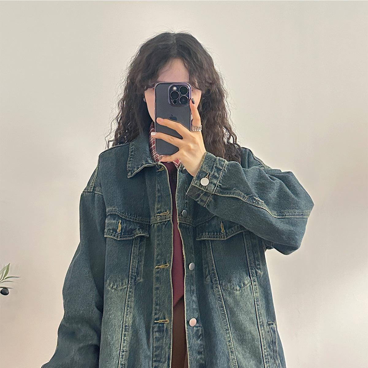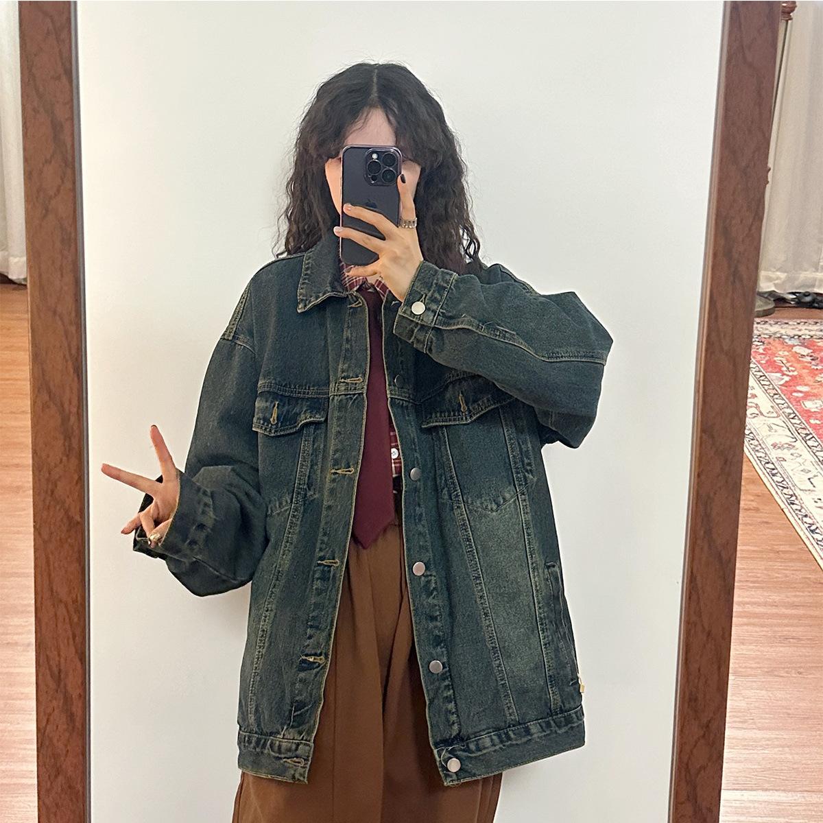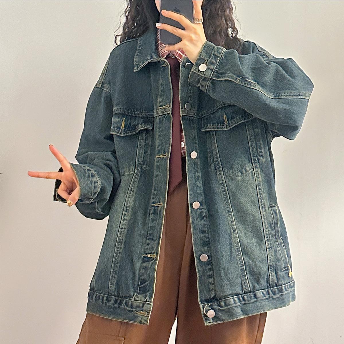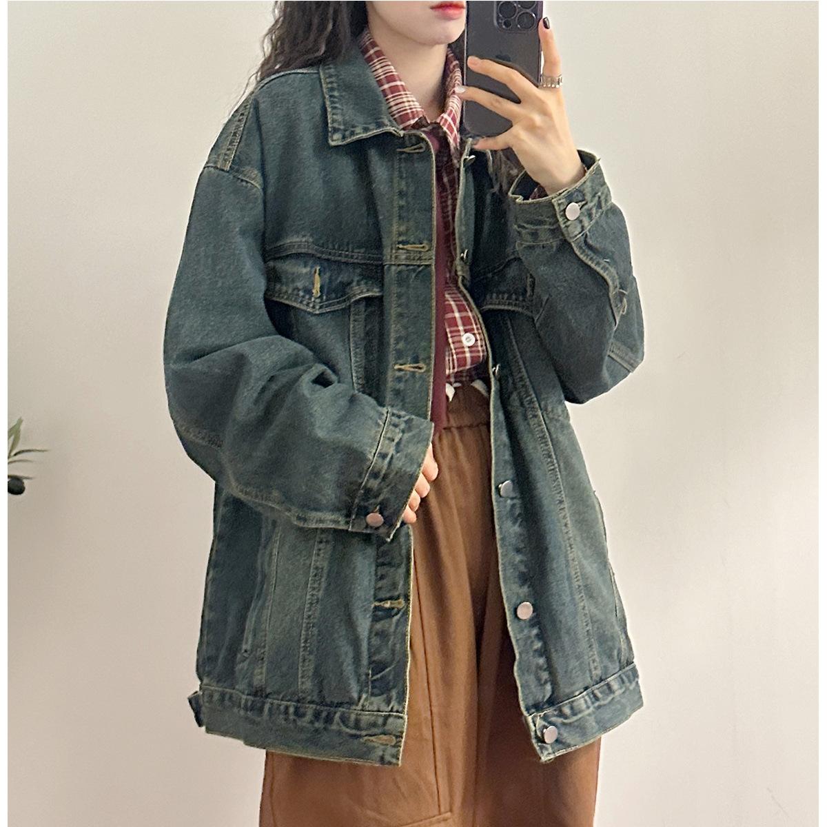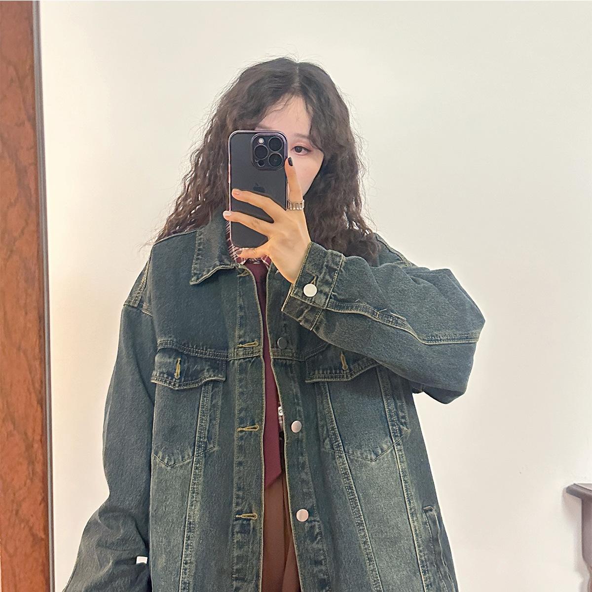 Chamarra de mezclilla desgastada retro americana para mujer primavera y otoño lavada nicho versátil estilo preppy casual para trabajo top