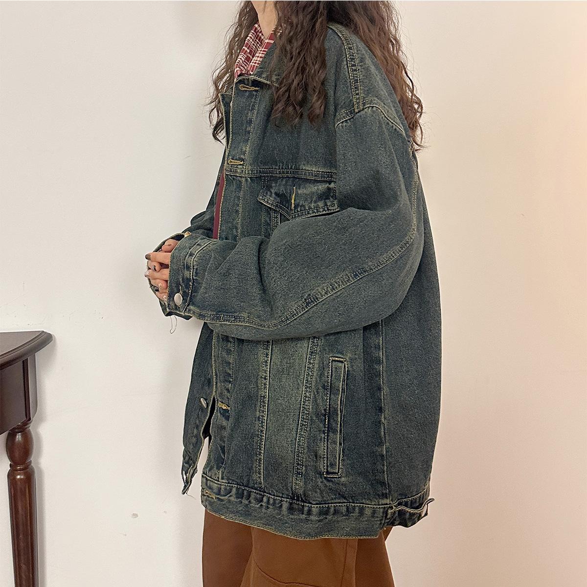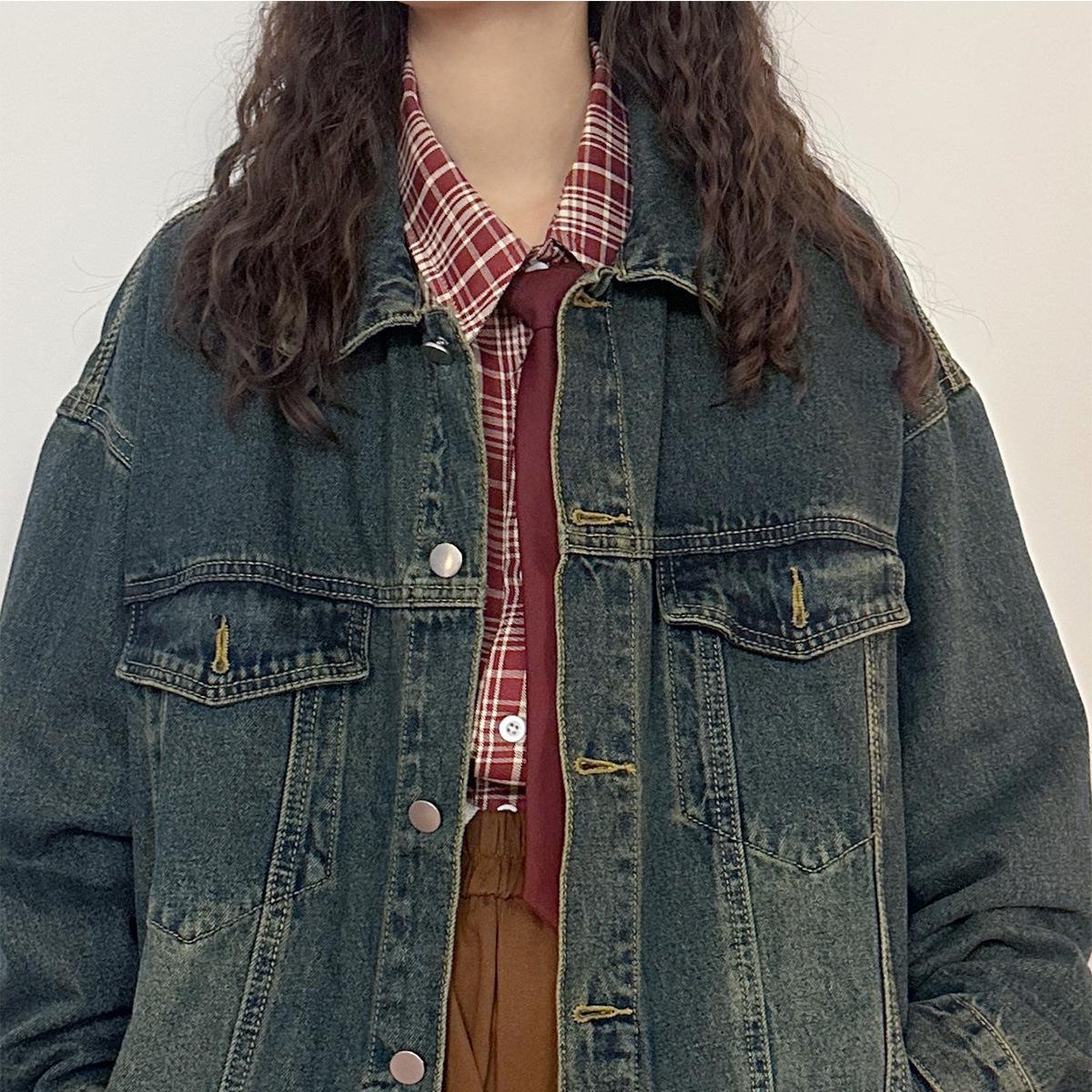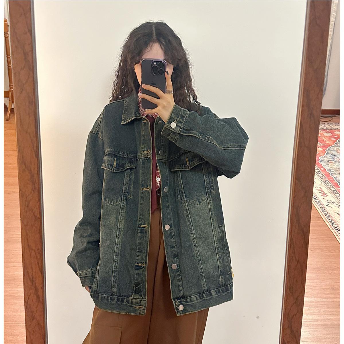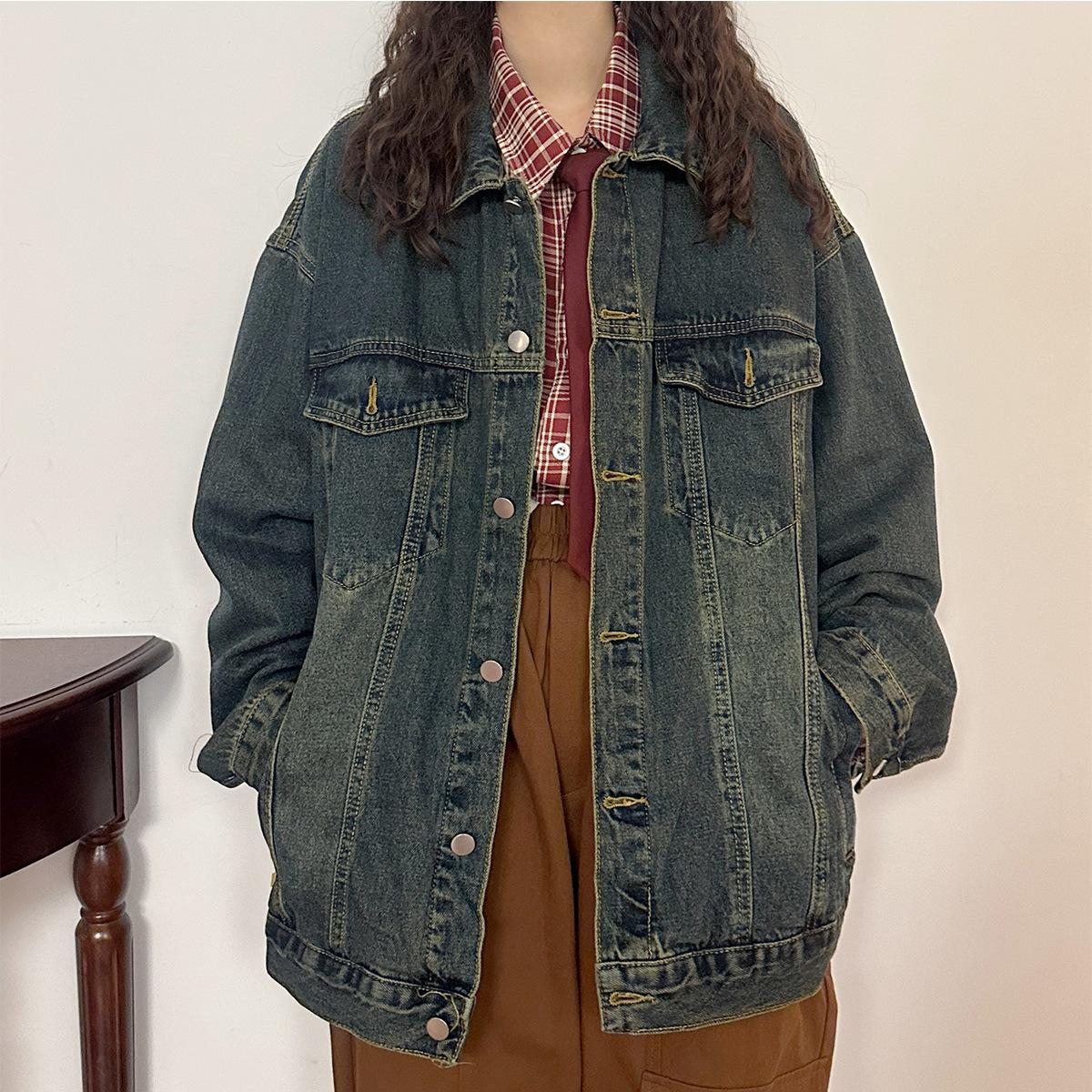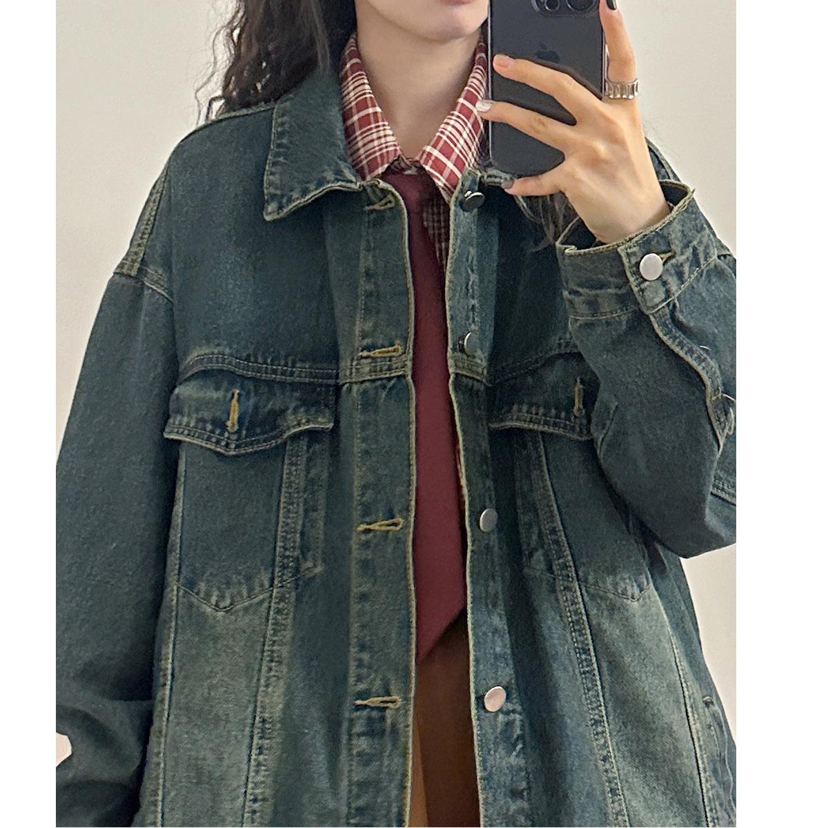 Chamarra de mezclilla desgastada retro americana para mujer primavera y otoño lavada nicho versátil estilo preppy casual para trabajo top