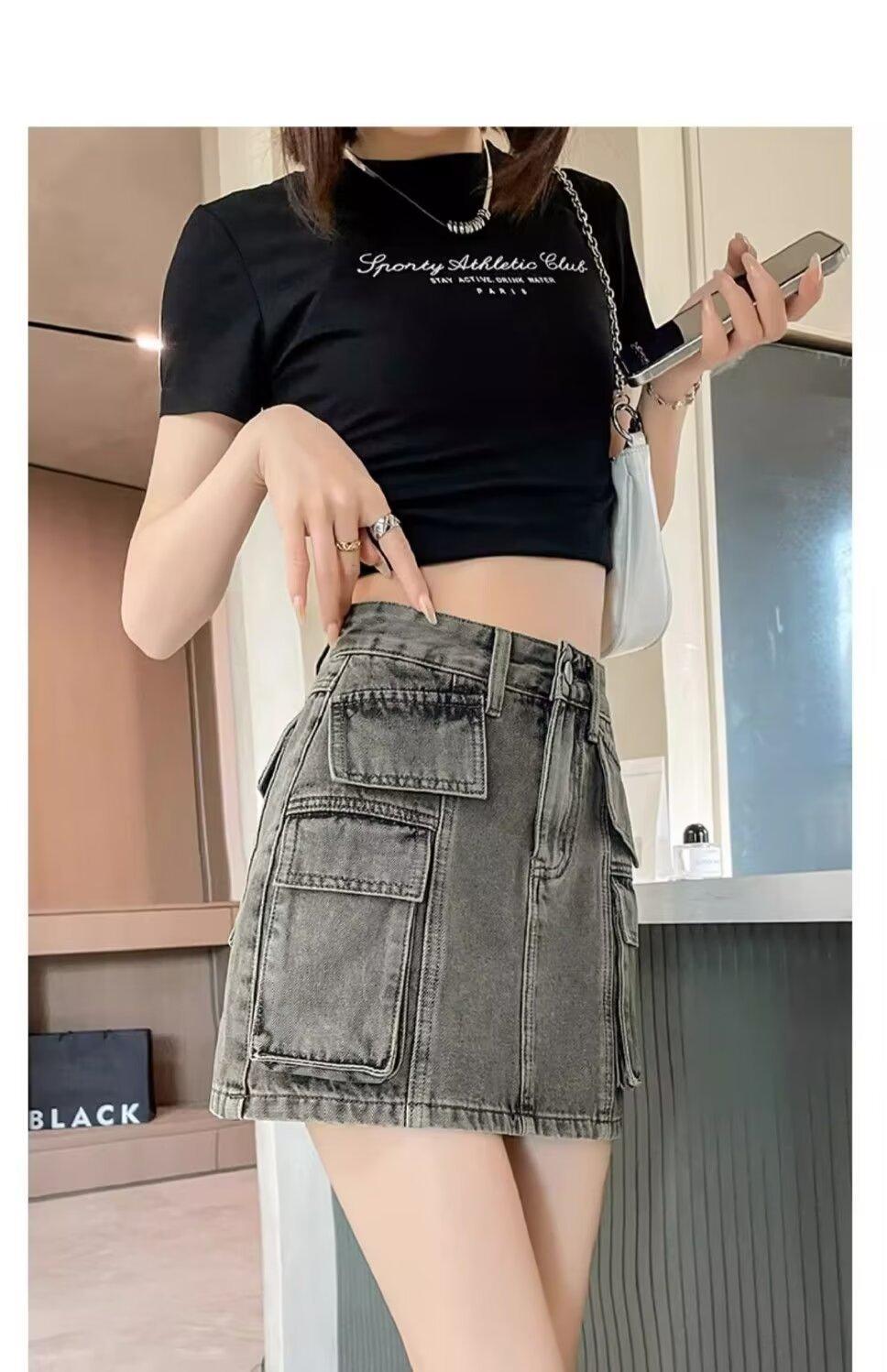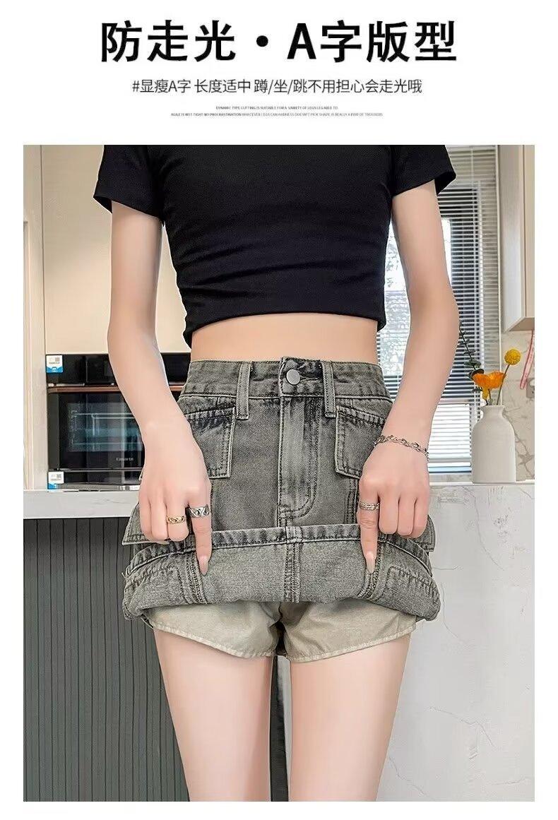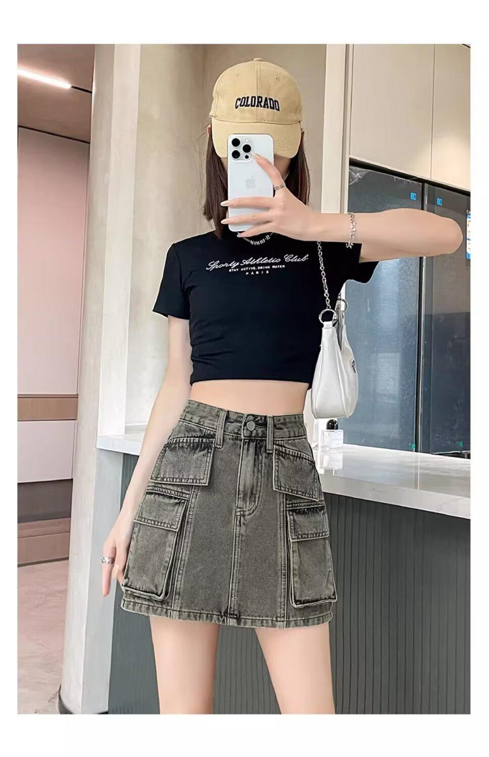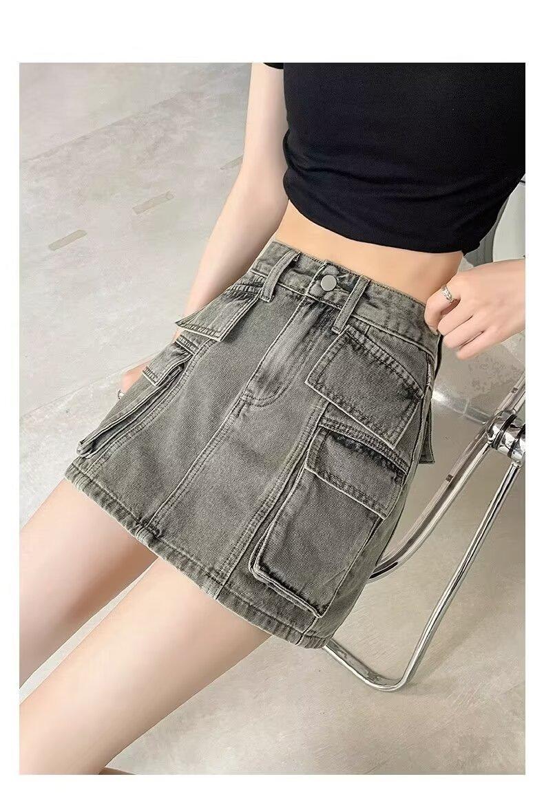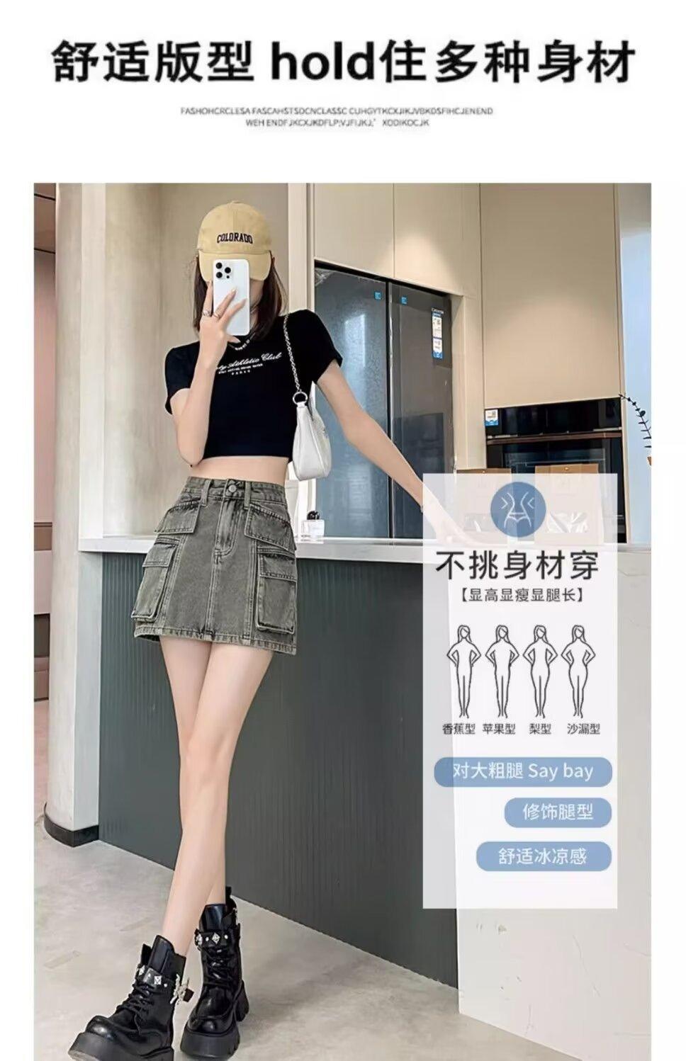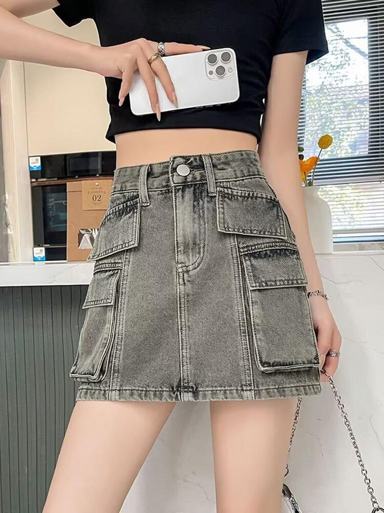 Falda Corta de Mezclilla de Verano para Chica Caliente Moda Femenina Falda A-Line Adelgazante de Cintura Alta Versátil Falda Ajustada a las Caderas Falda de Mezclilla a la Moda