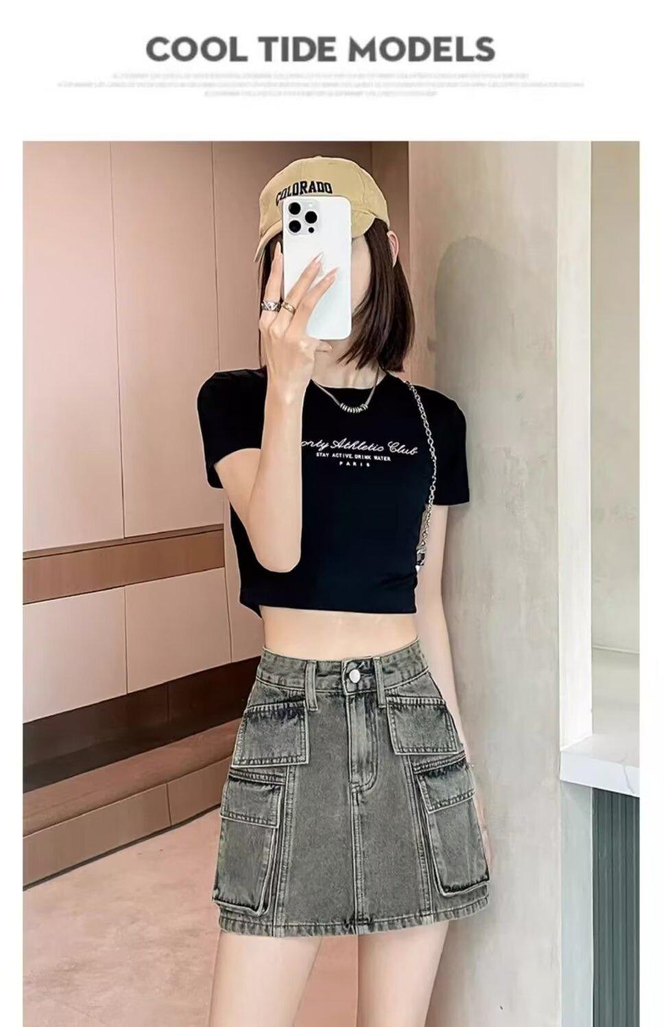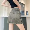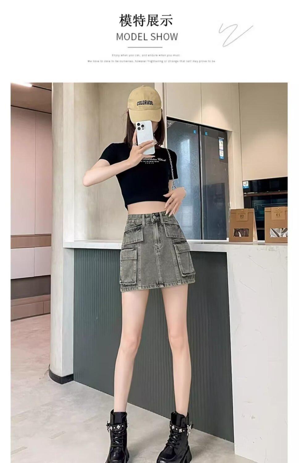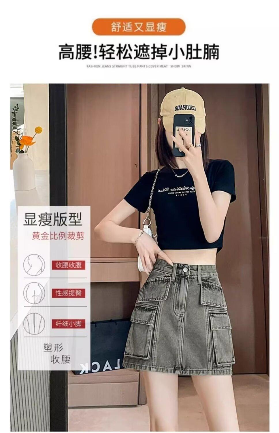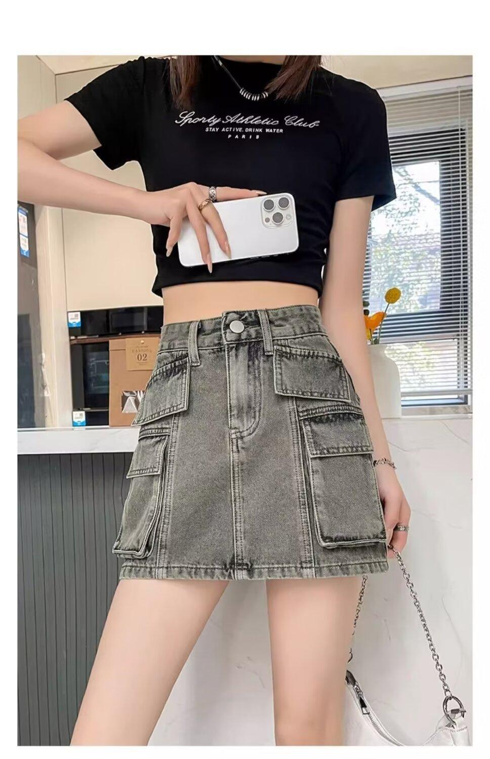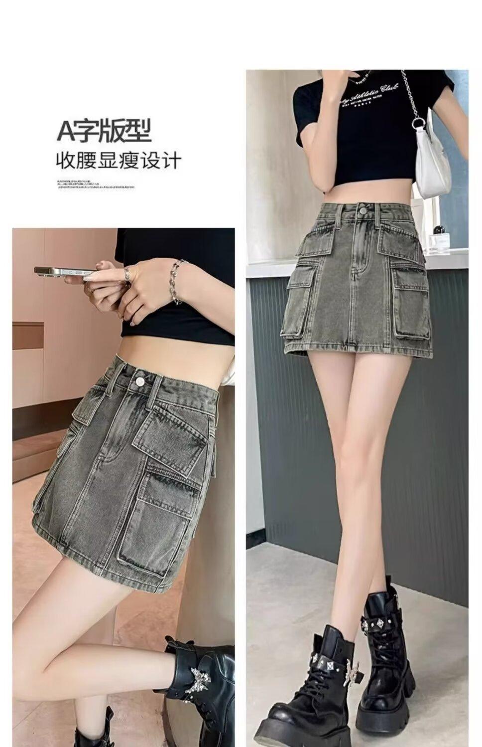 Falda Corta de Mezclilla de Verano para Chica Caliente Moda Femenina Falda A-Line Adelgazante de Cintura Alta Versátil Falda Ajustada a las Caderas Falda de Mezclilla a la Moda