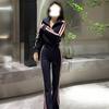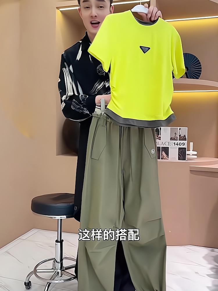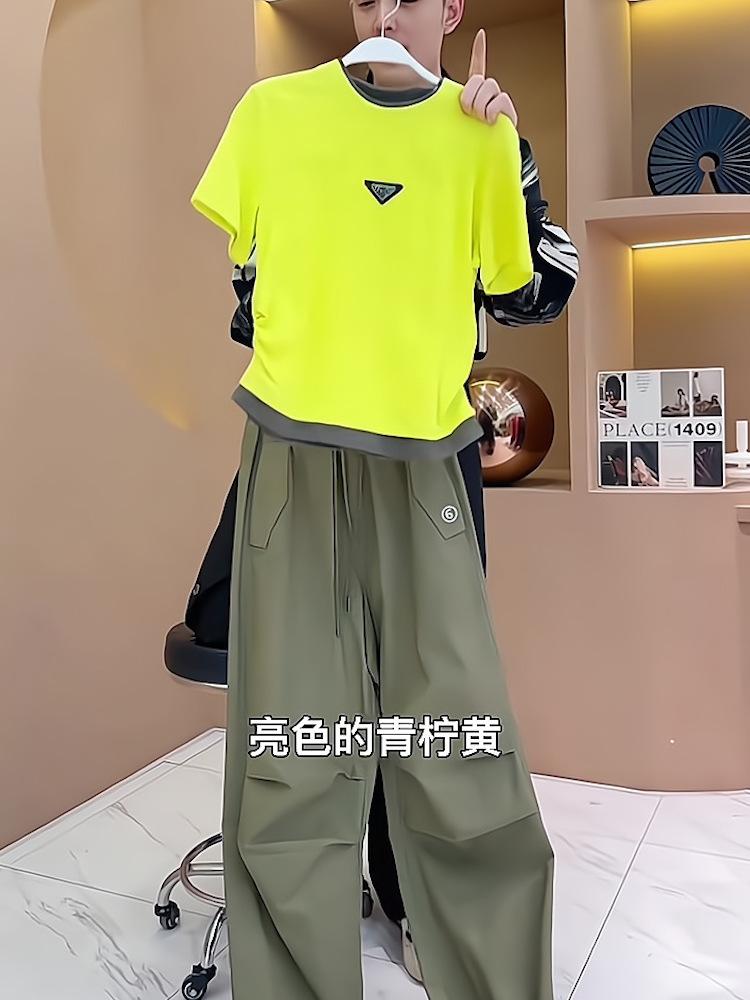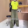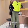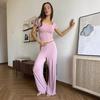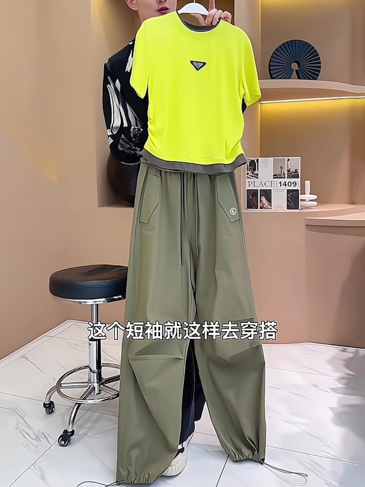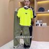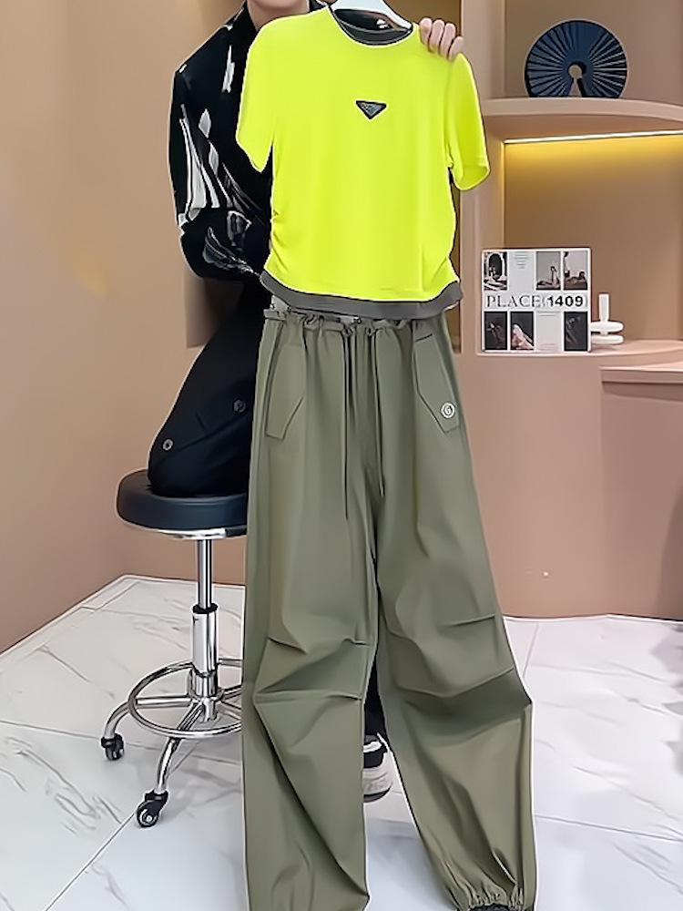 Conjunto de Pantalón de Moda Casual de Estación Europea de Color Sólido Cuello Redondo Corto Sencillo Manga Corta Top Conjunto de Dos Piezas para Mujer