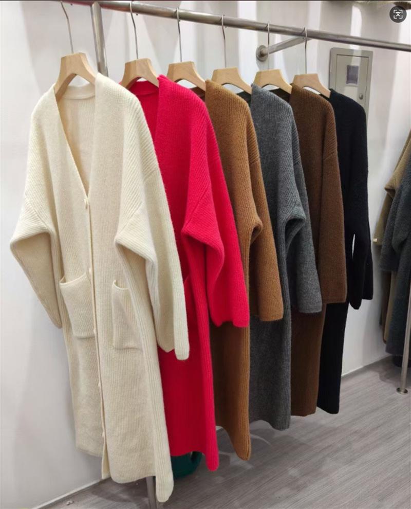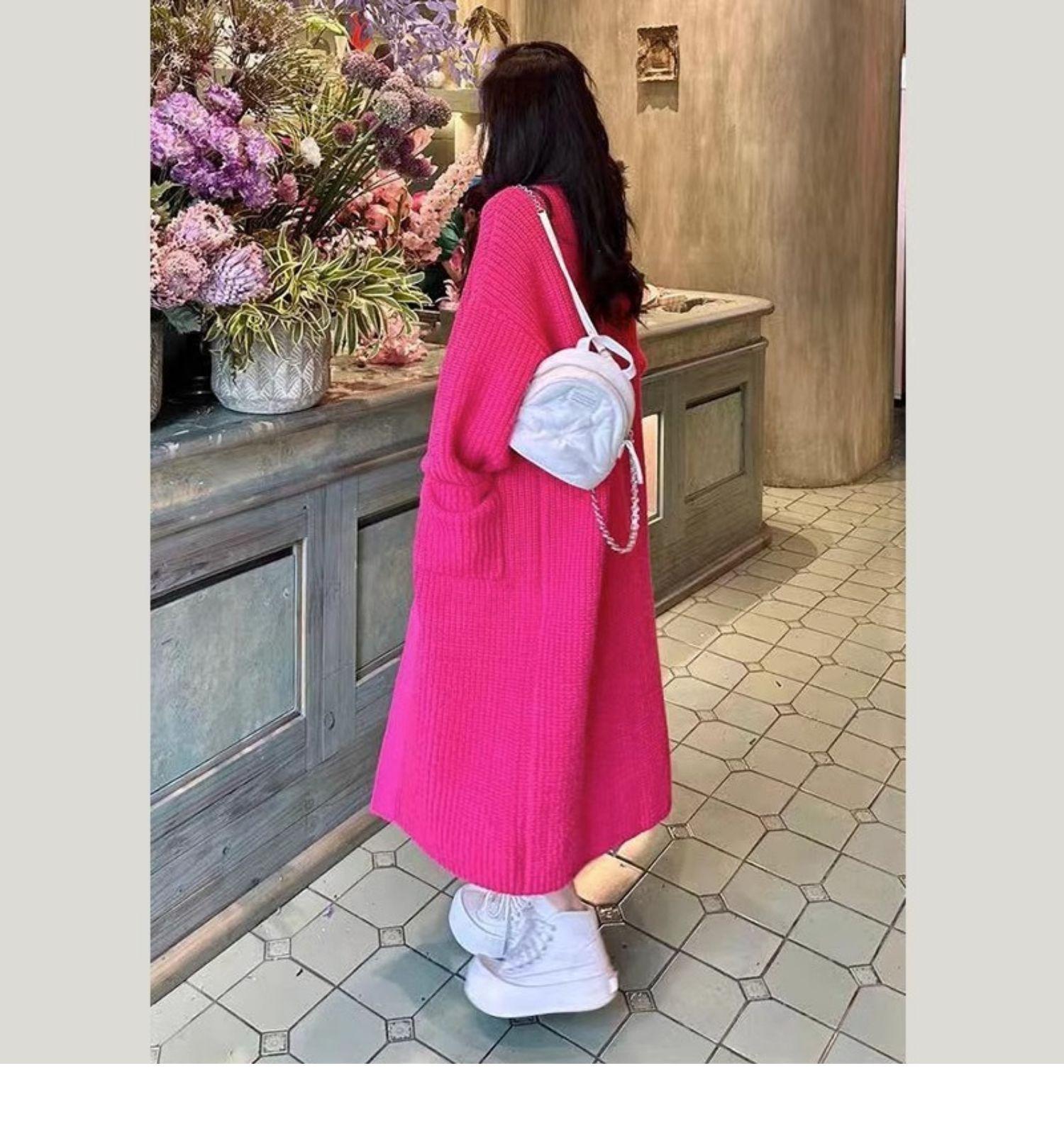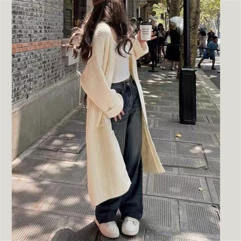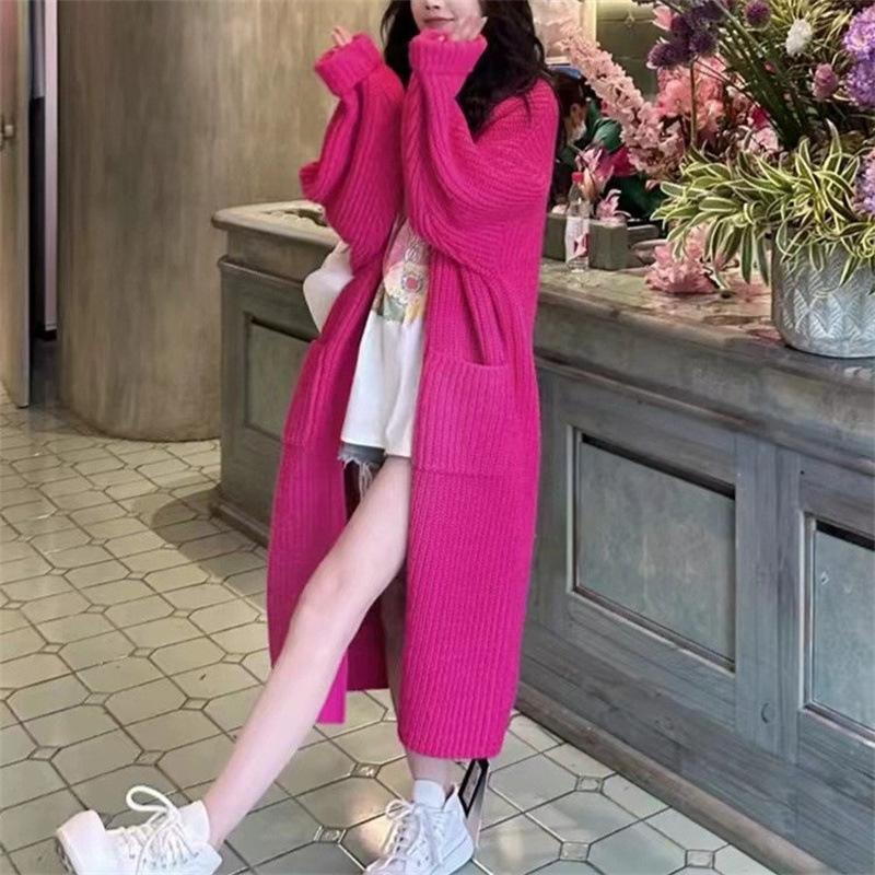 Otoño e Invierno Nuevo Cárdigan de Punto de Manga Larga Estilo Largo Holgazán Transfronterizo para Mujer, Suéter de Color Sólido, Abrigo Suelto Versátil que Adelgaza