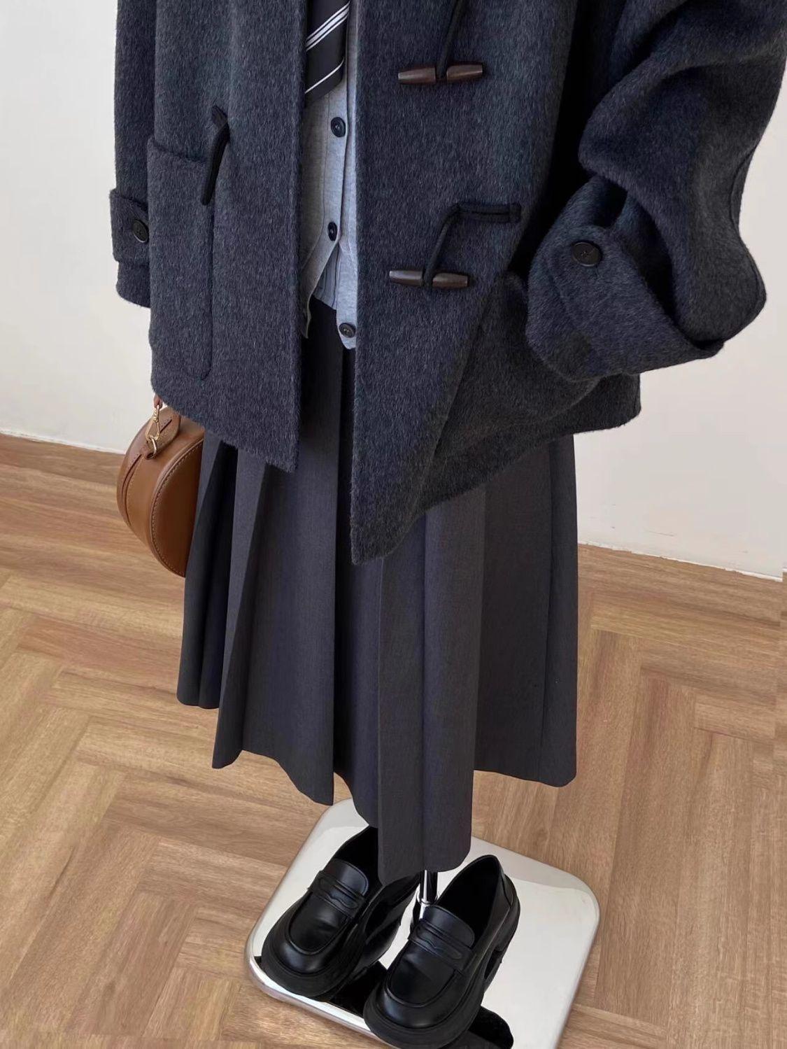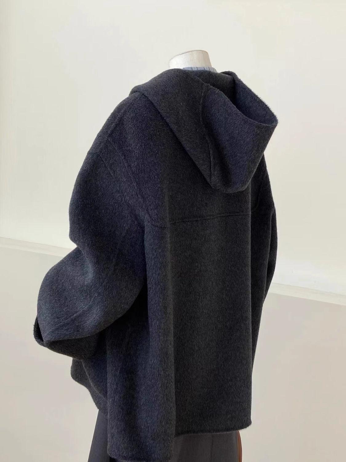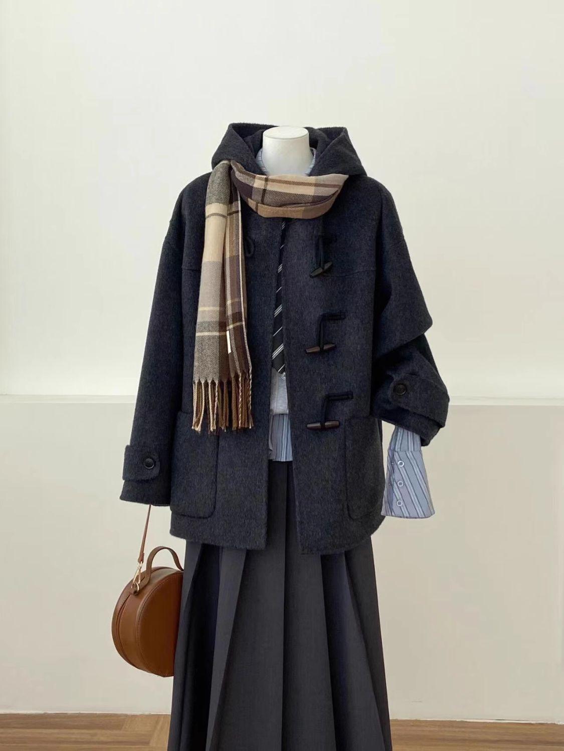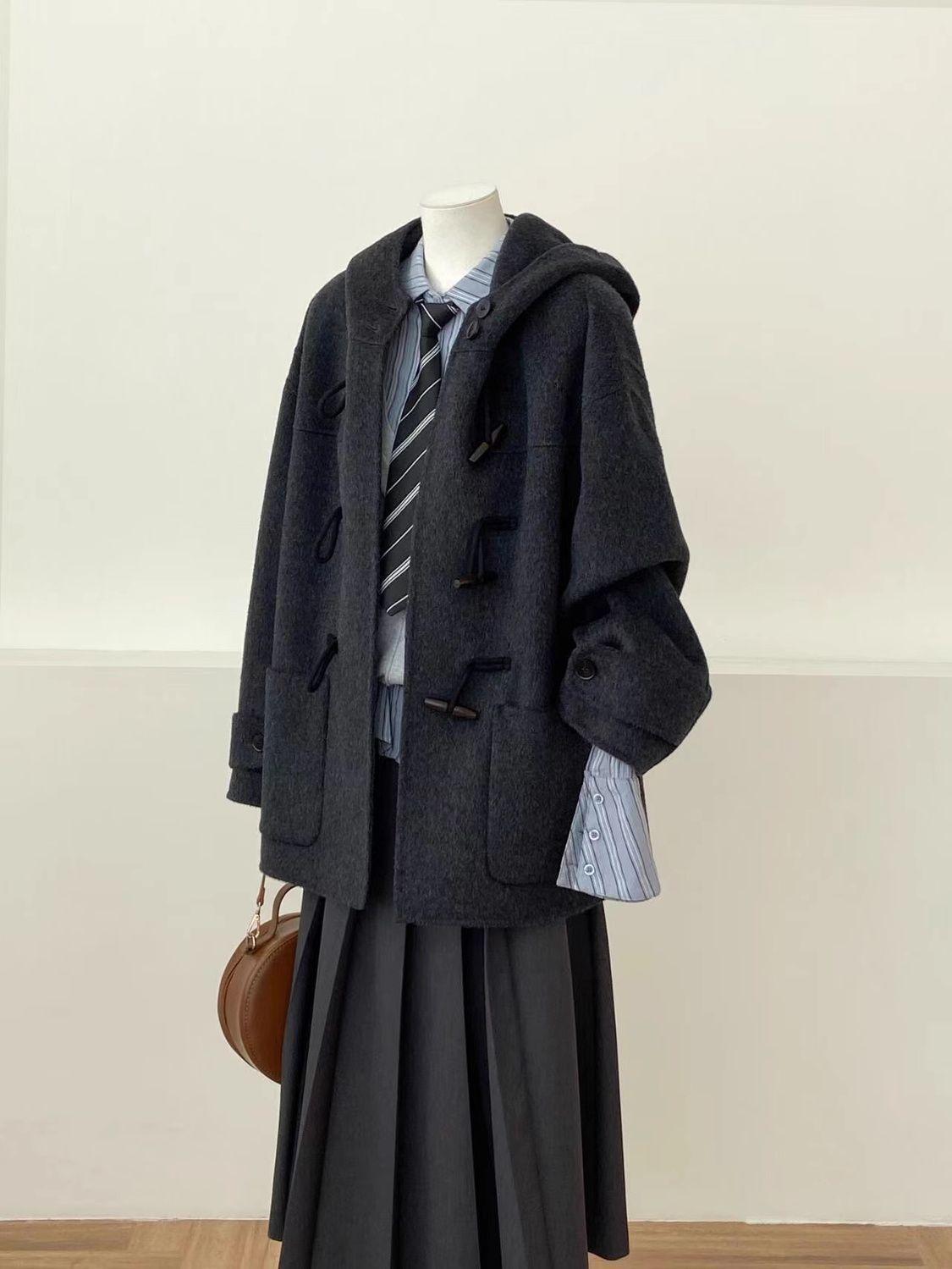 Abrigo de Lana con Capucha y Botones de Cuerno para Mujer Otoño e Invierno 2025 Estilo Coreano Abrigo de Lana para Mujer con Moda de Alta Gama