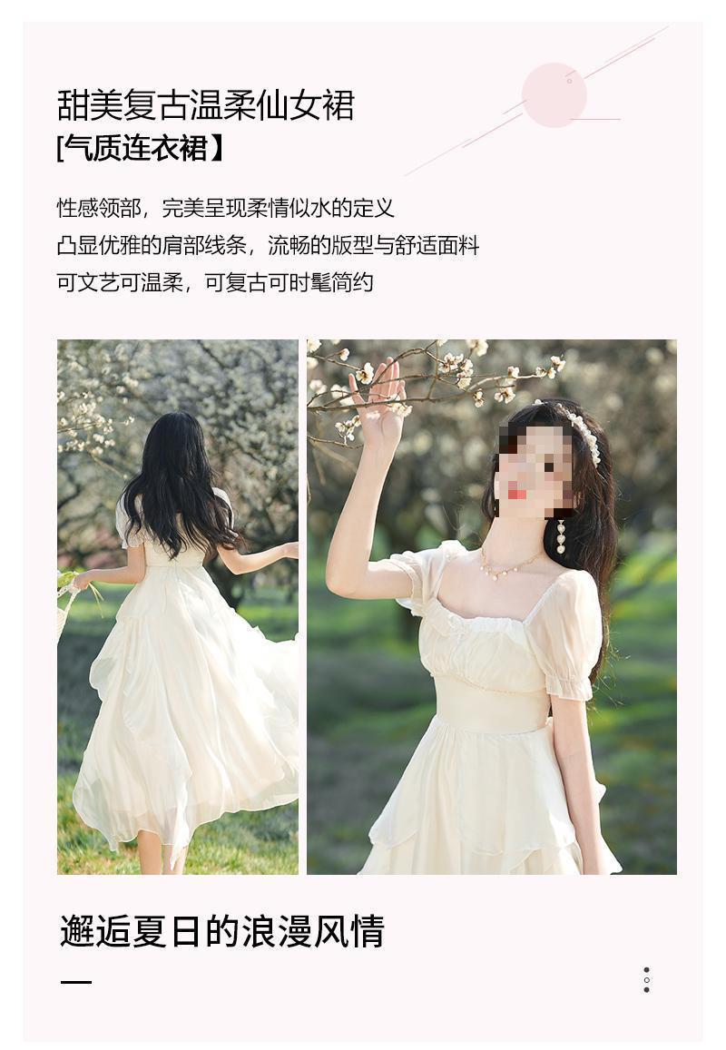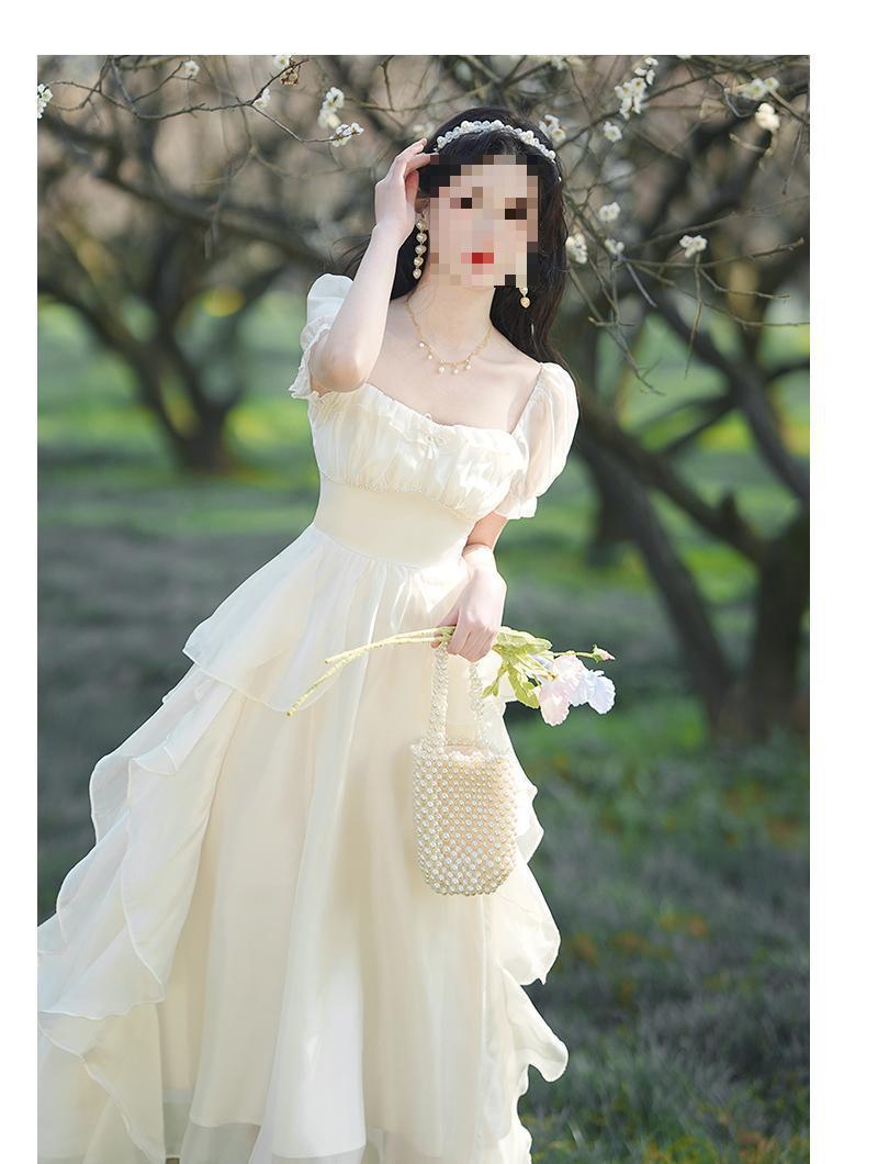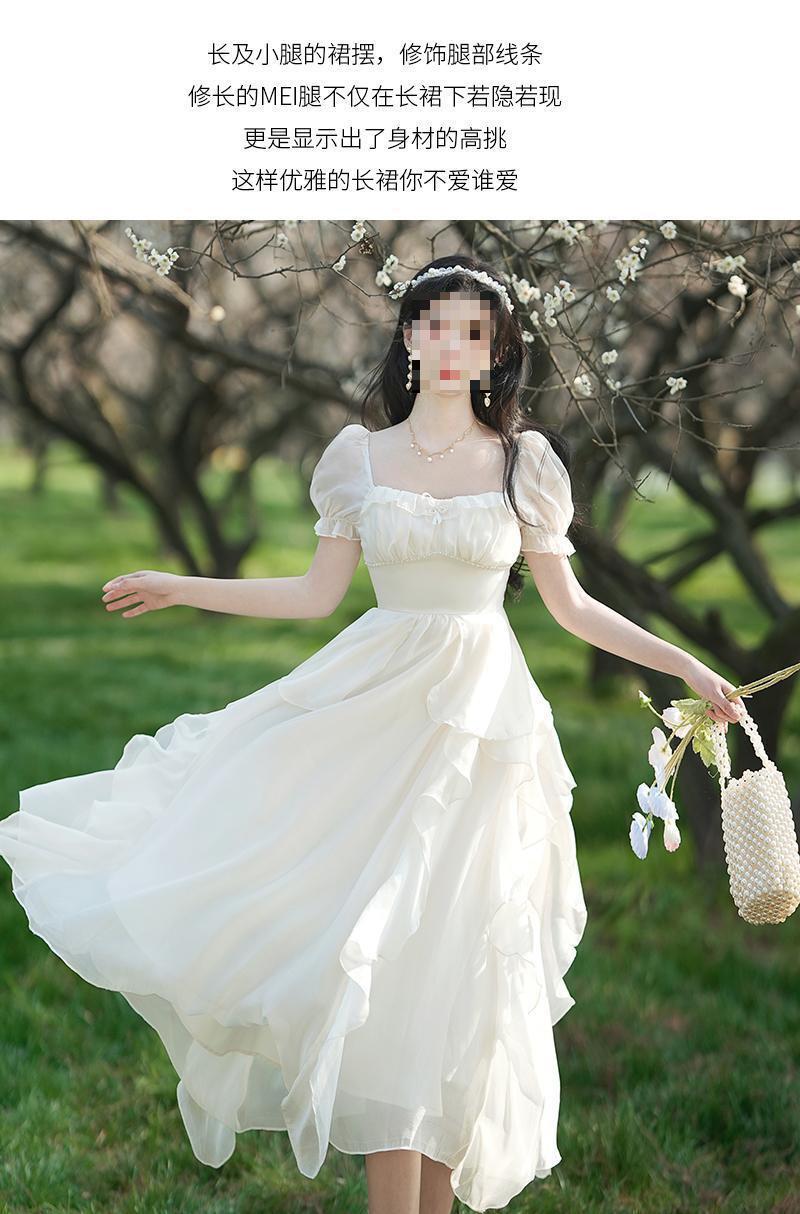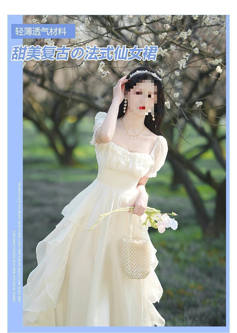 Pausa para el Té Francés Retro de Alta Gama Chica Dulce Delgado Temperamento de Hada Super Hada Vestido con Volantes Verano