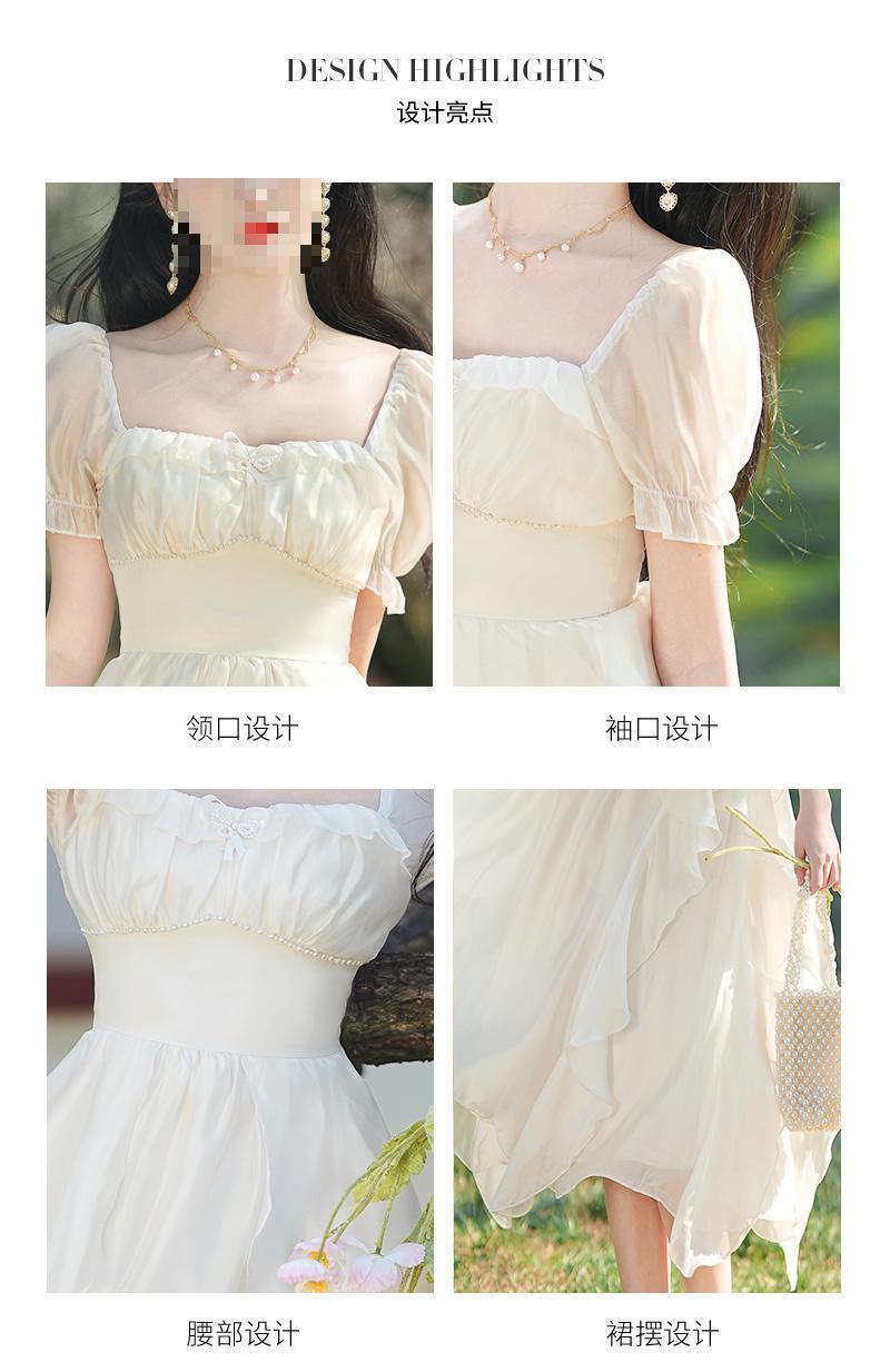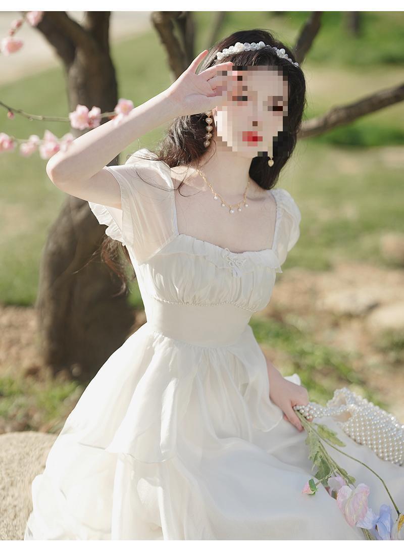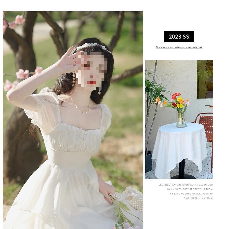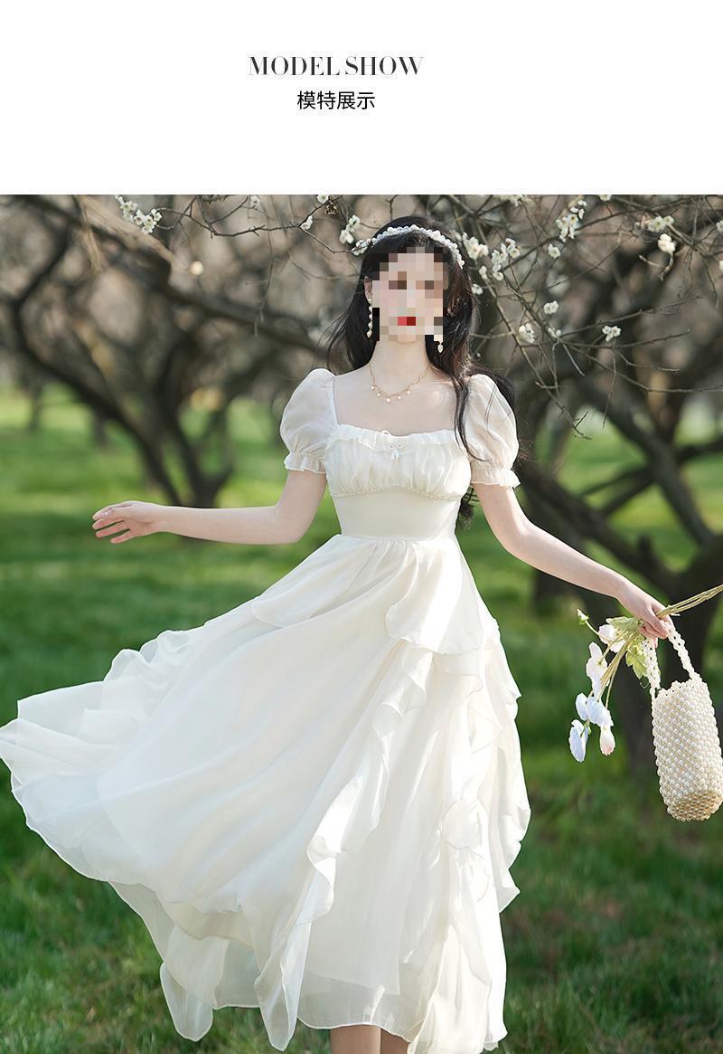 Pausa para el Té Francés Retro de Alta Gama Chica Dulce Delgado Temperamento de Hada Super Hada Vestido con Volantes Verano