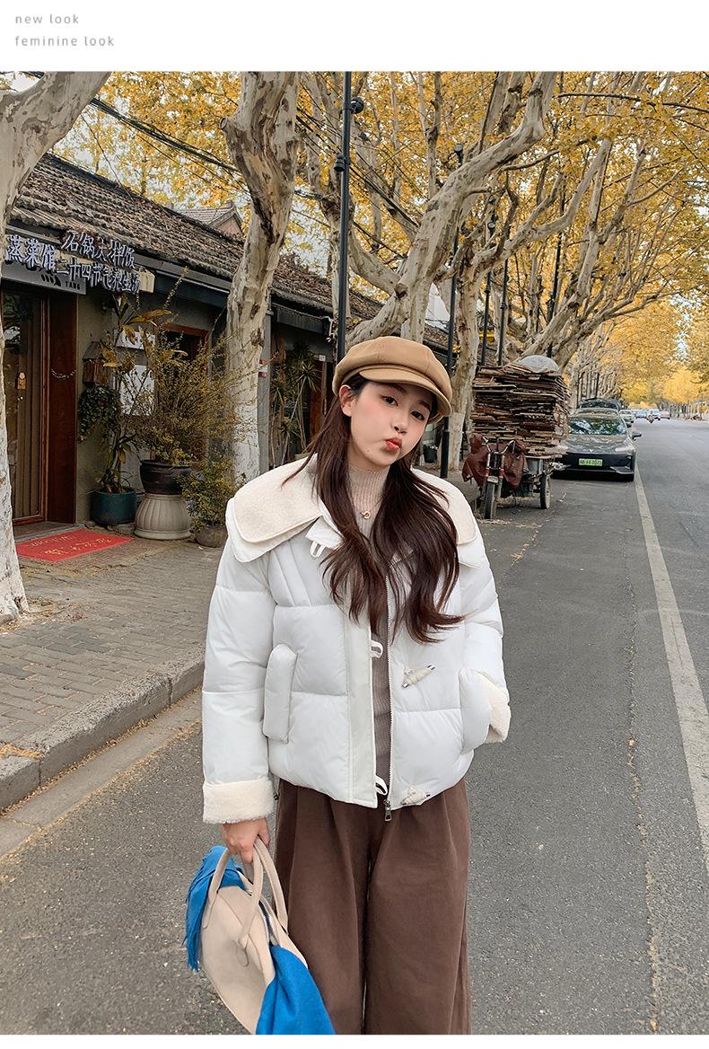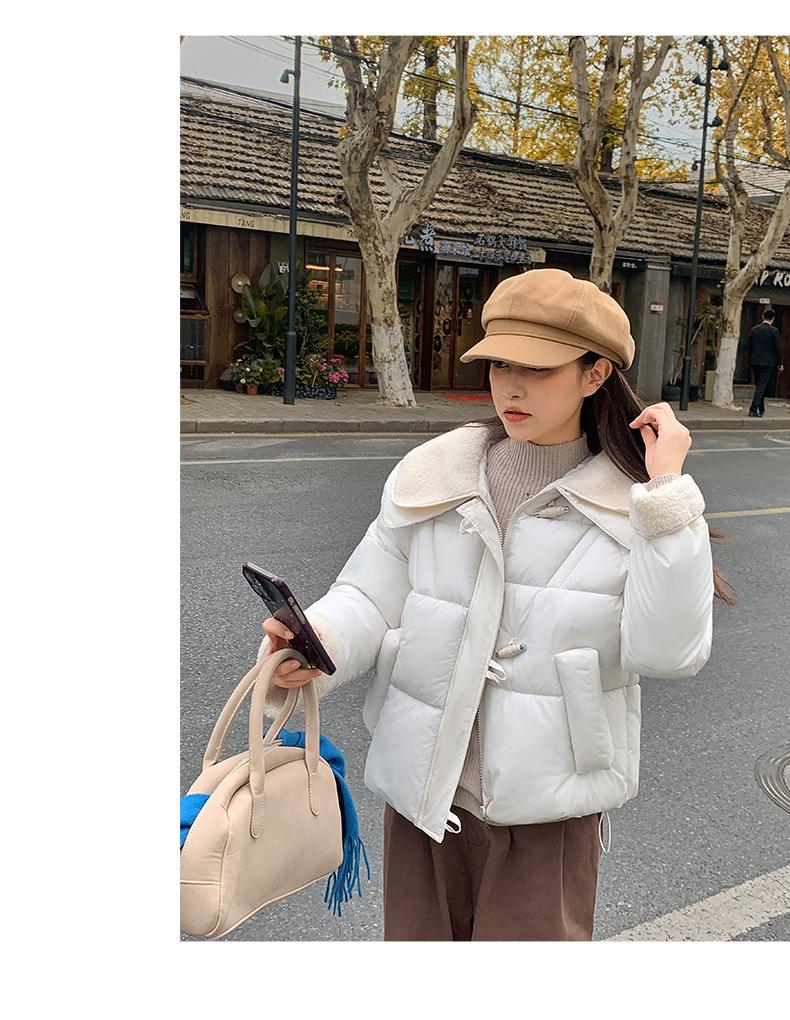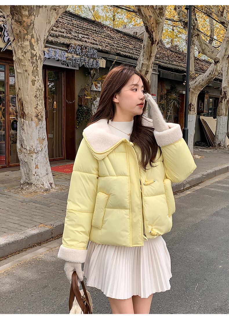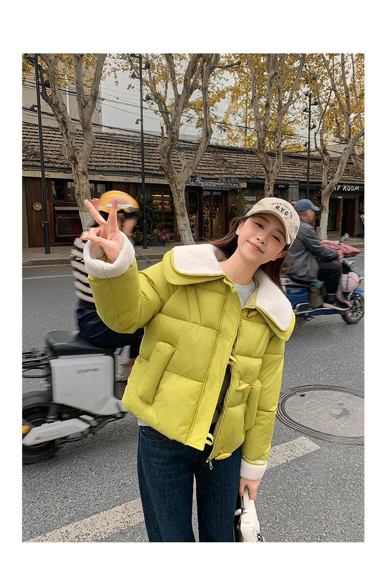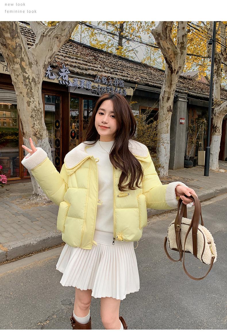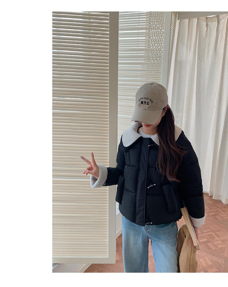 Abrigo corto de algodón para mujer estilo coreano color caramelo que reduce la edad petite 2025 invierno botón de cuerno solapa grande corto