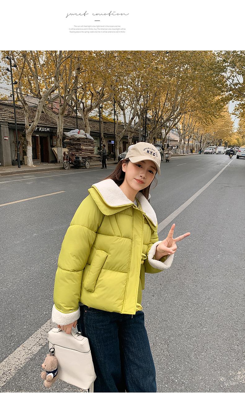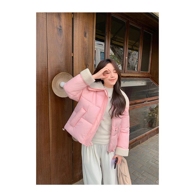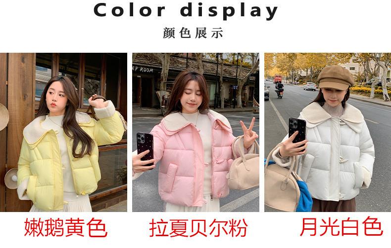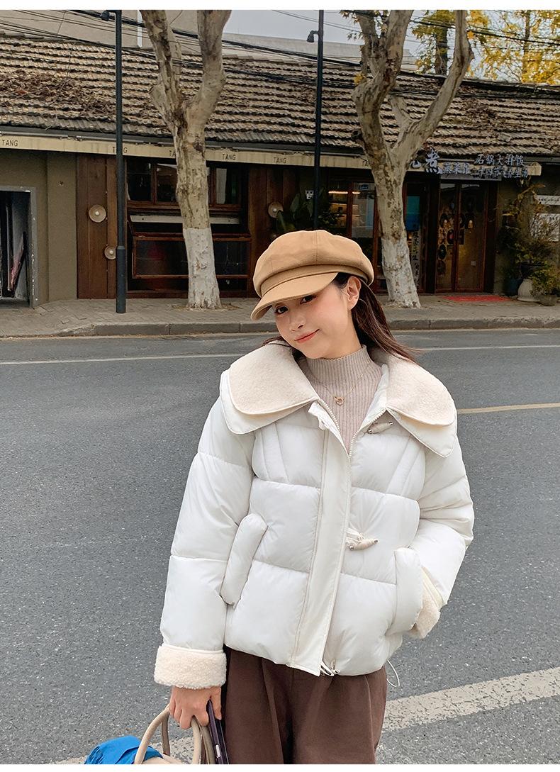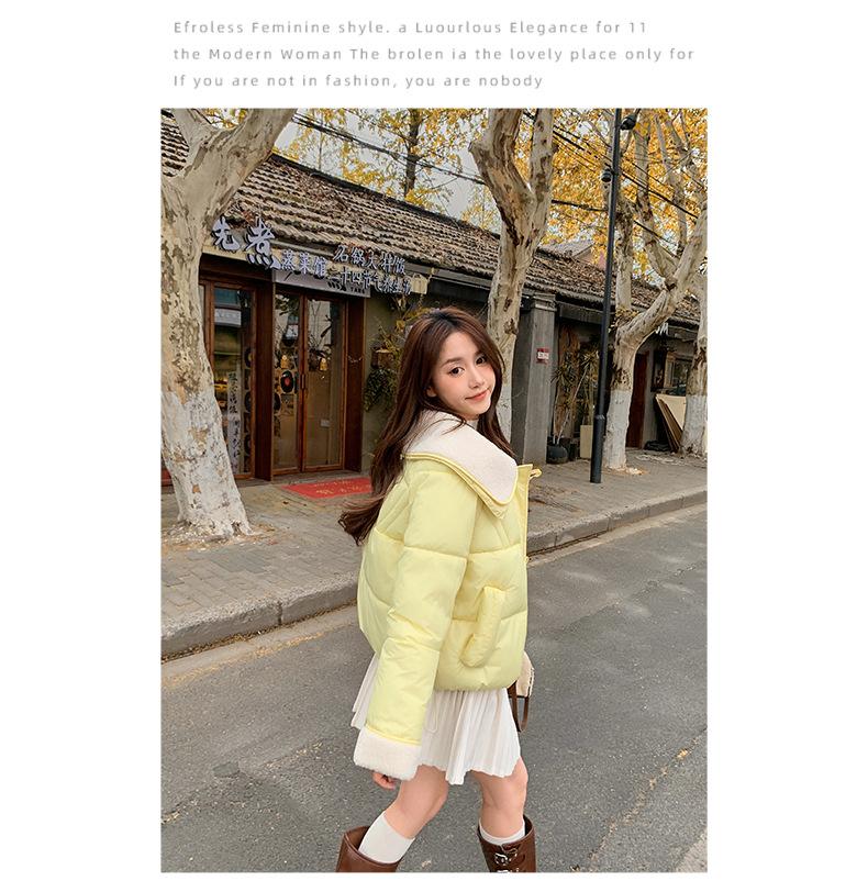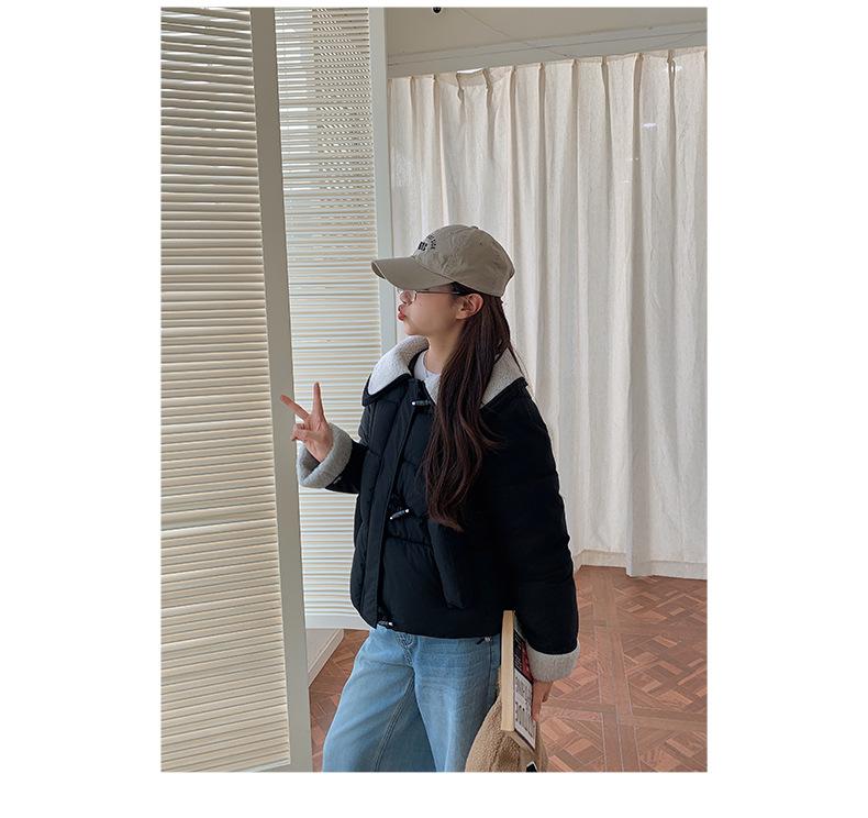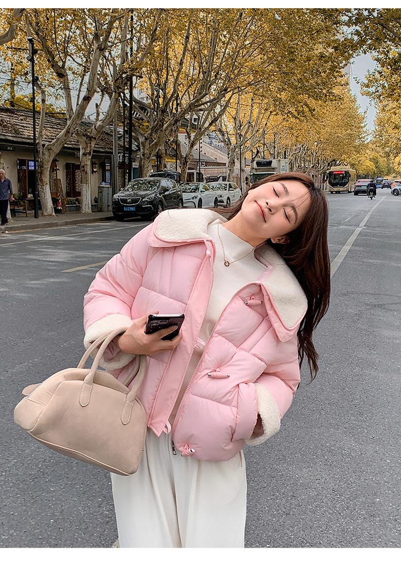 Abrigo corto de algodón para mujer estilo coreano color caramelo que reduce la edad petite 2025 invierno botón de cuerno solapa grande corto