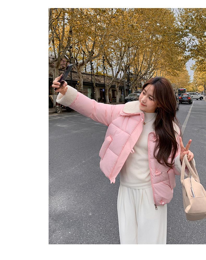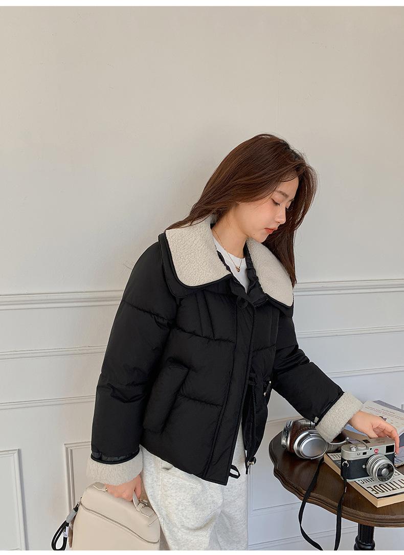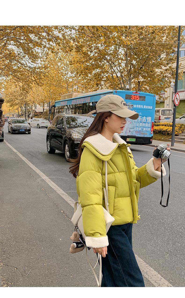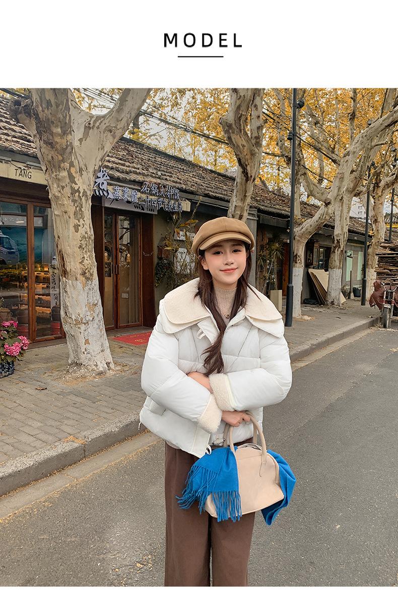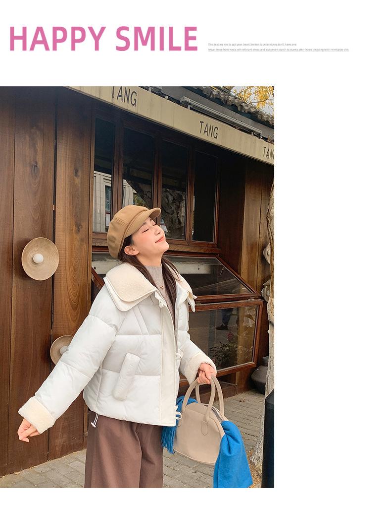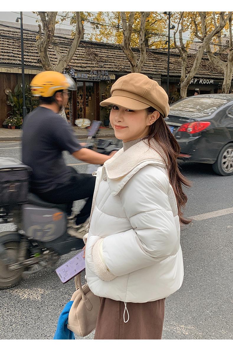 Abrigo corto de algodón para mujer estilo coreano color caramelo que reduce la edad petite 2025 invierno botón de cuerno solapa grande corto