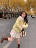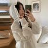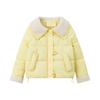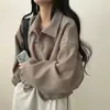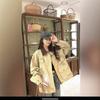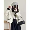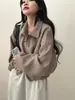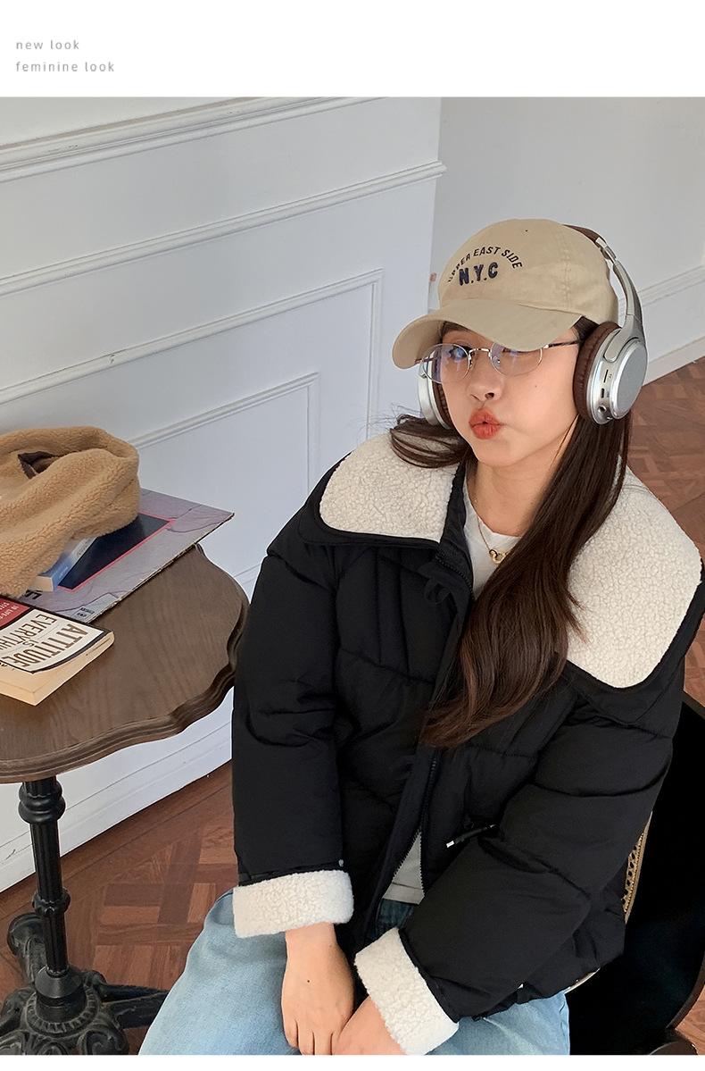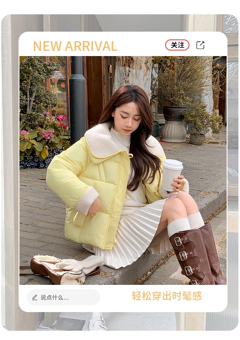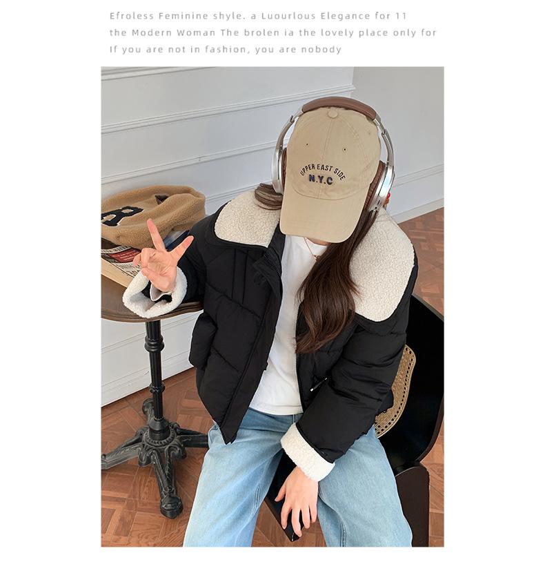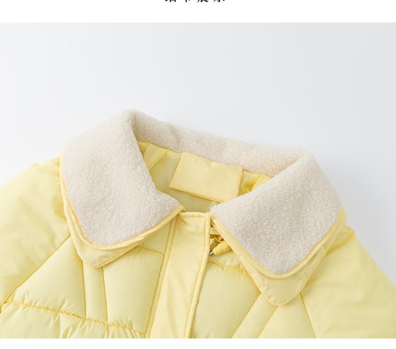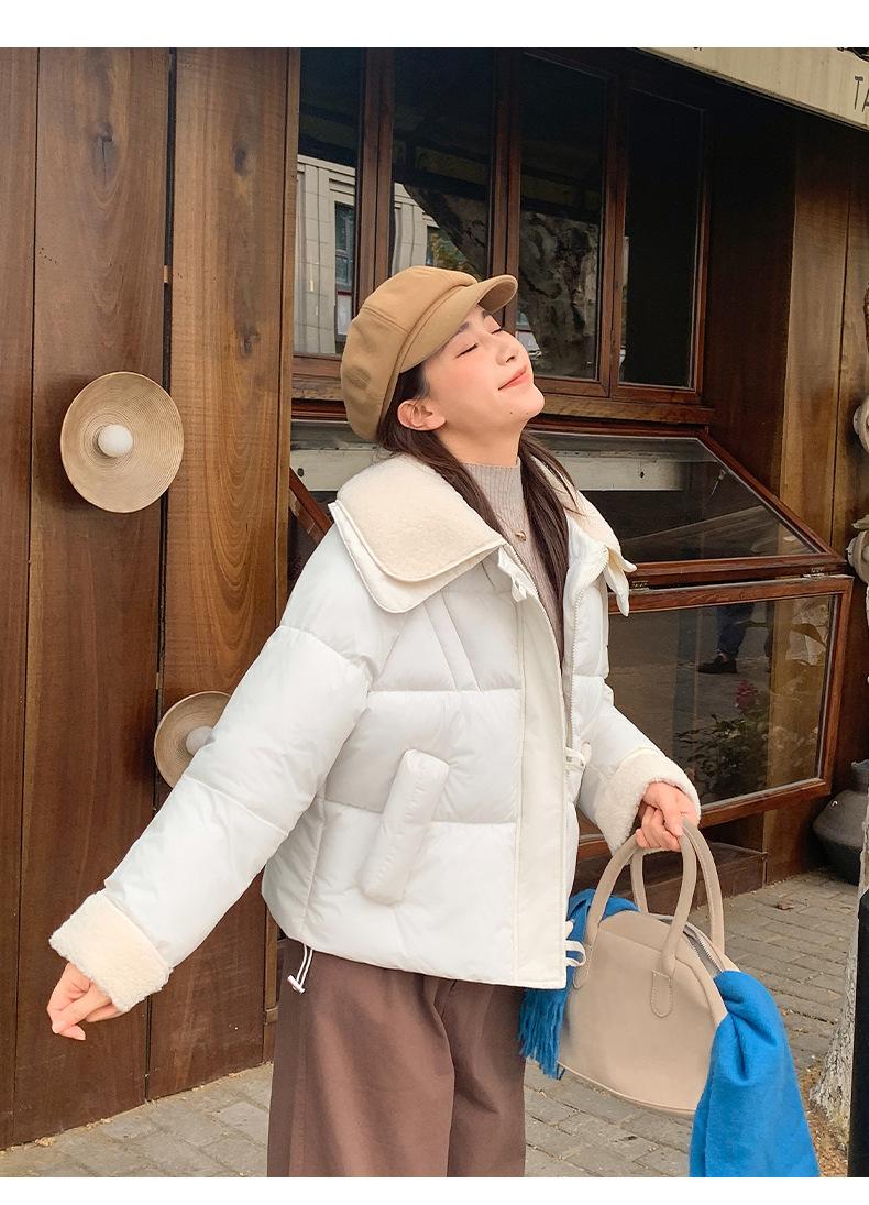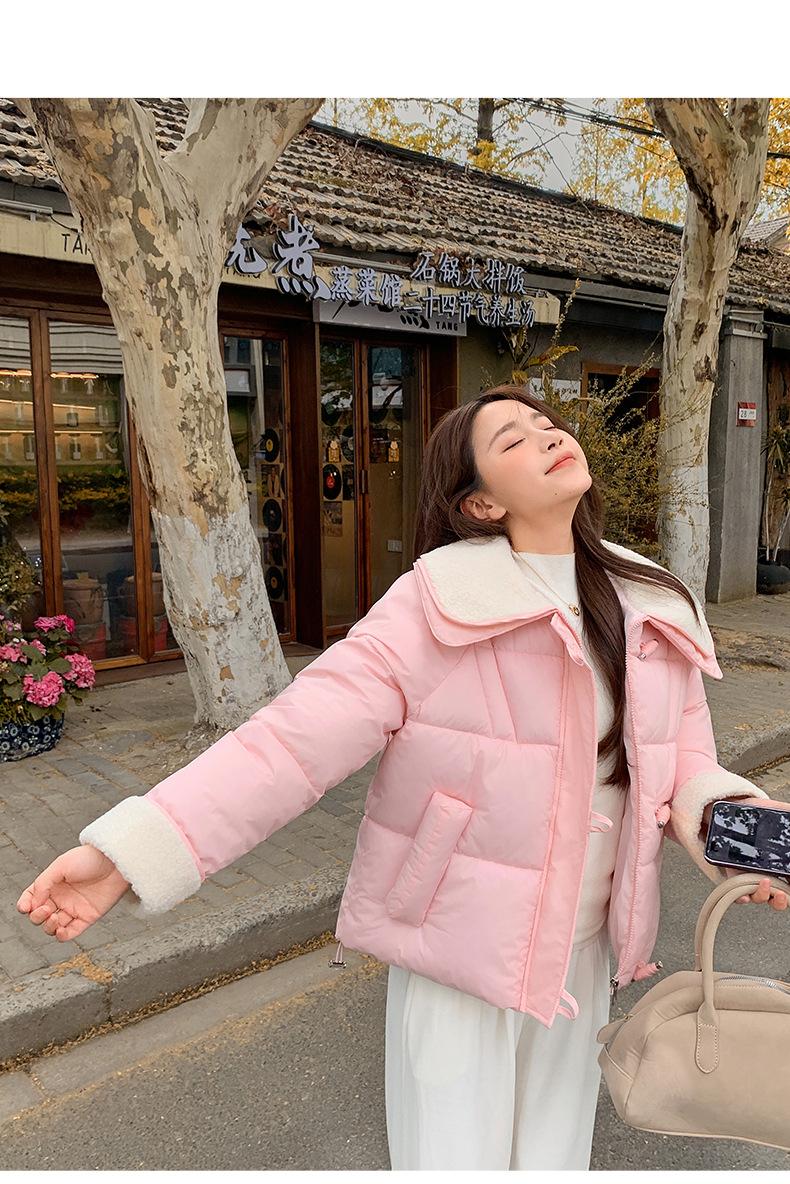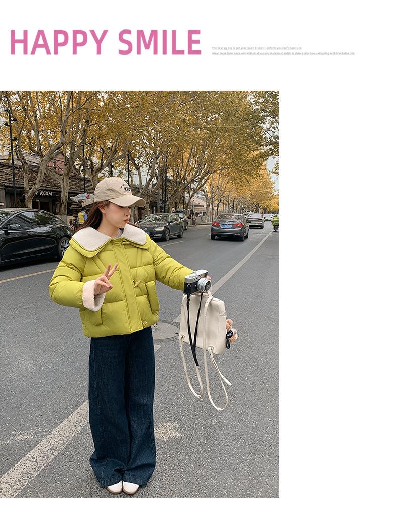 Abrigo corto de algodón para mujer estilo coreano color caramelo que reduce la edad petite 2025 invierno botón de cuerno solapa grande corto