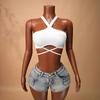 Camiseta sin mangas racerback estilo puramente sensual para chica hot, nueva camiseta corta de verano a la moda de corte ajustado con abdomen expuesto, sexy top de capa base para mujer