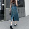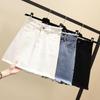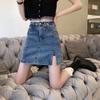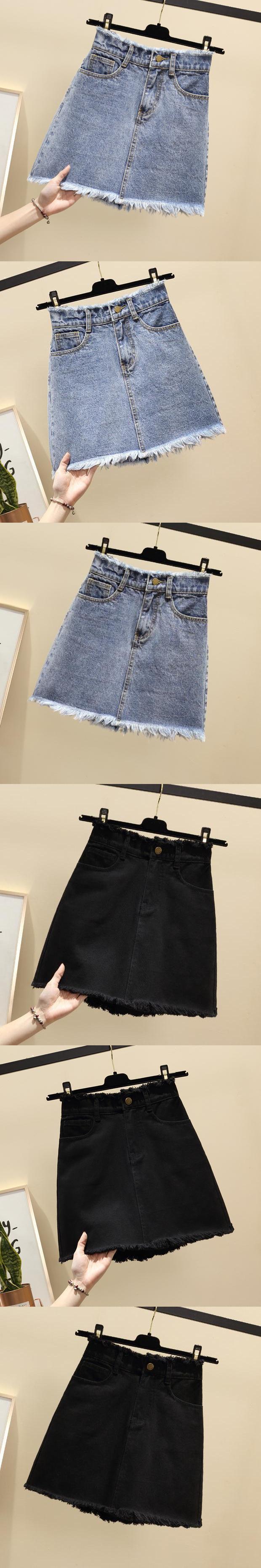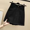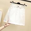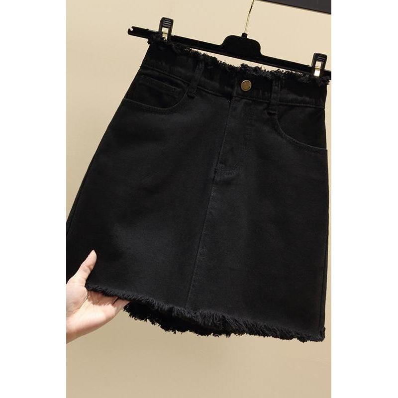 Falda de mezclilla de cintura alta para mujer Primavera y Verano 2025 Nuevo estilo coreano Falda de borde crudo Talla grande Gordo mm Cubre caderas Falda corta acampanada