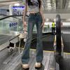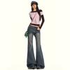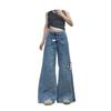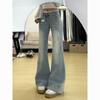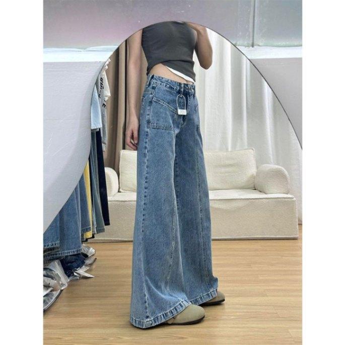 Jeans Americanos Lavados Retro Holgados para Mujeres Pequeñas en Otoño 2025 Nuevos de Cintura Alta con Aspecto Adelgazante Pantalones Acampanados hasta el Suelo