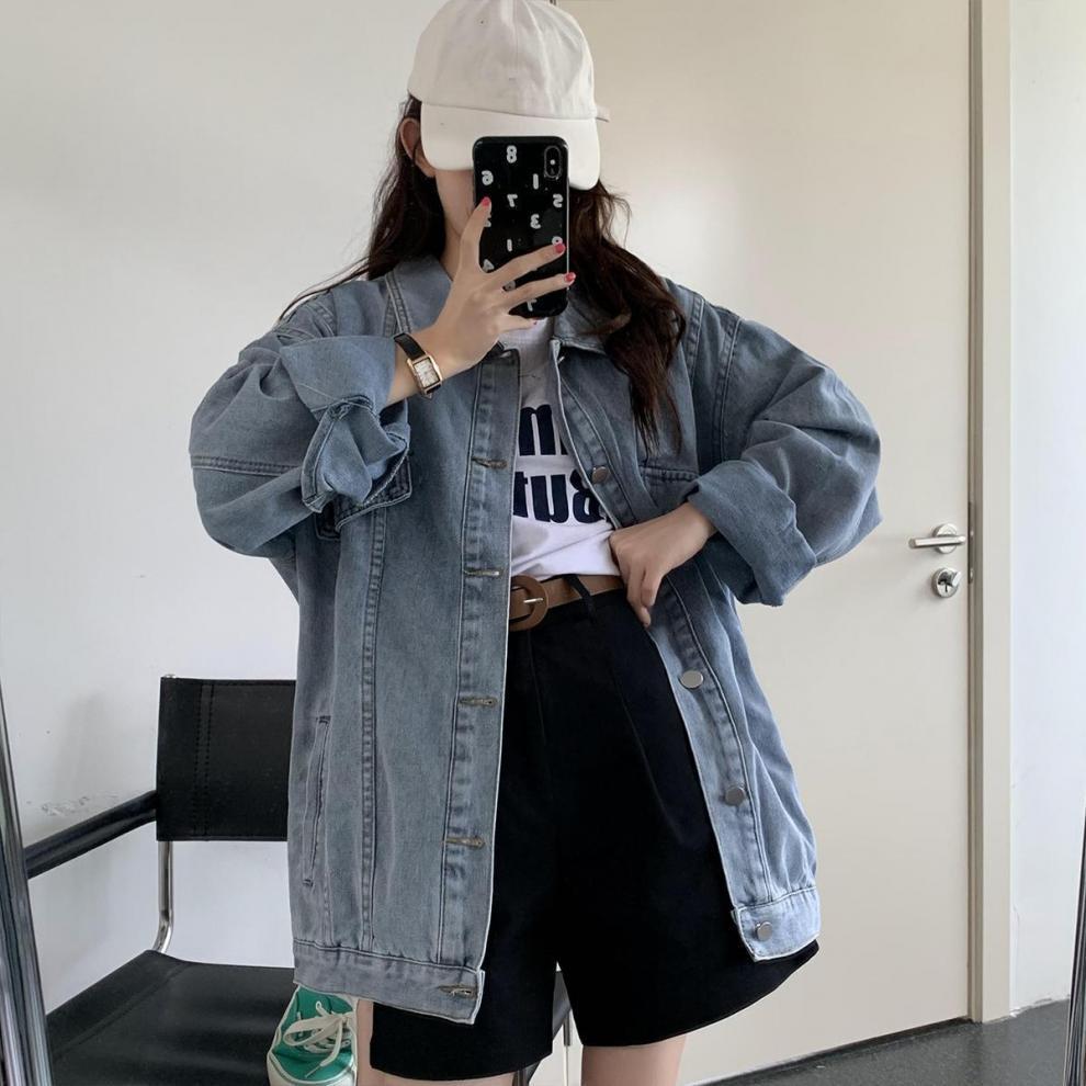Chaqueta de mezclilla Shahai Color para Mujeres Petite, Primavera y Otoño 2025 Nuevo Versátil Suelto Elegante Único Top Trendy