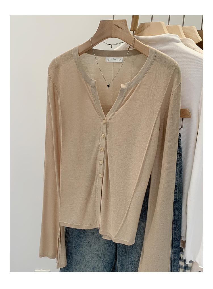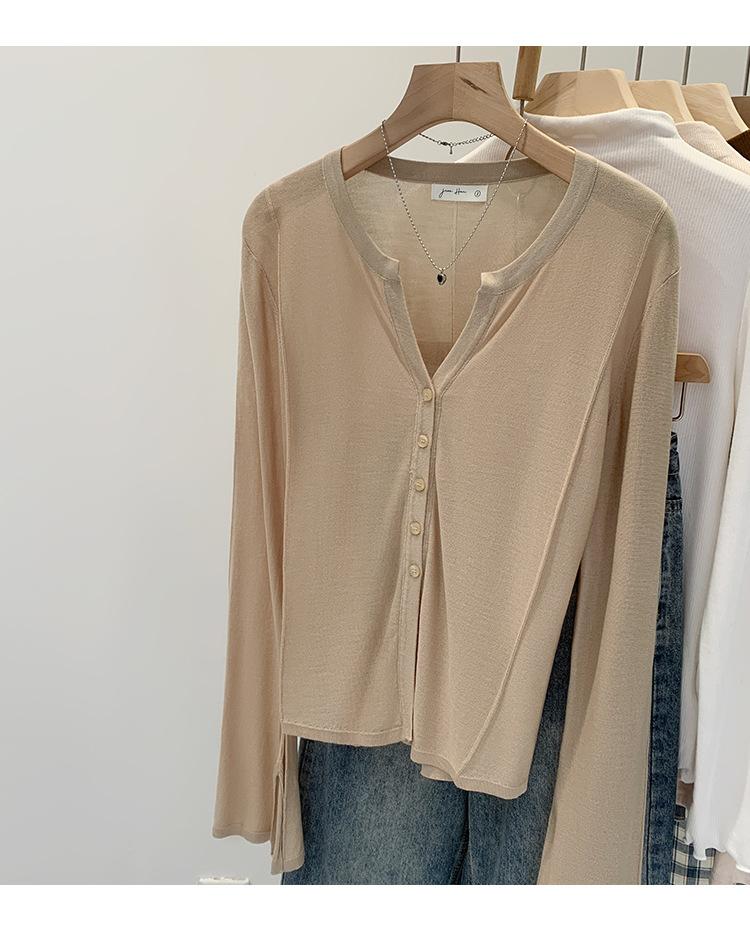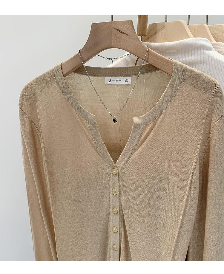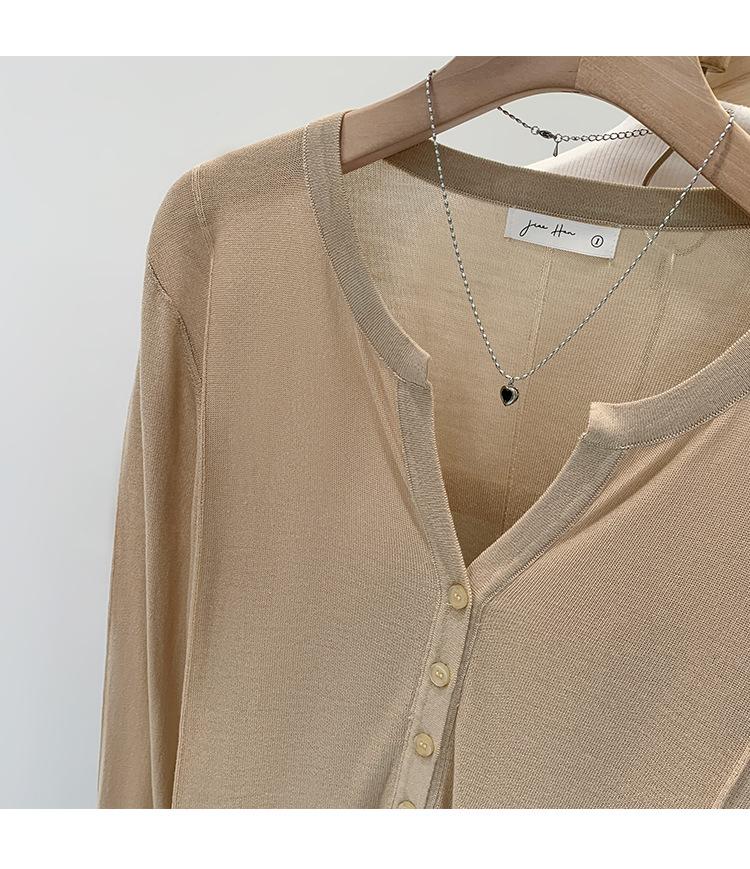 Cárdigan de punto de manga larga con cuello en V de lyocell Tencel ligero y con protección solar para mujer, moderno 2025, verano, nuevo, top con buen sombrero