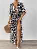 Cárdigan Kimono Transfronterizo Ropa Europea y Americana Mangas Murciélago Sueltas Tirantes Cintura Malla Estampado Leopardo Playa Bikini Cover-Up