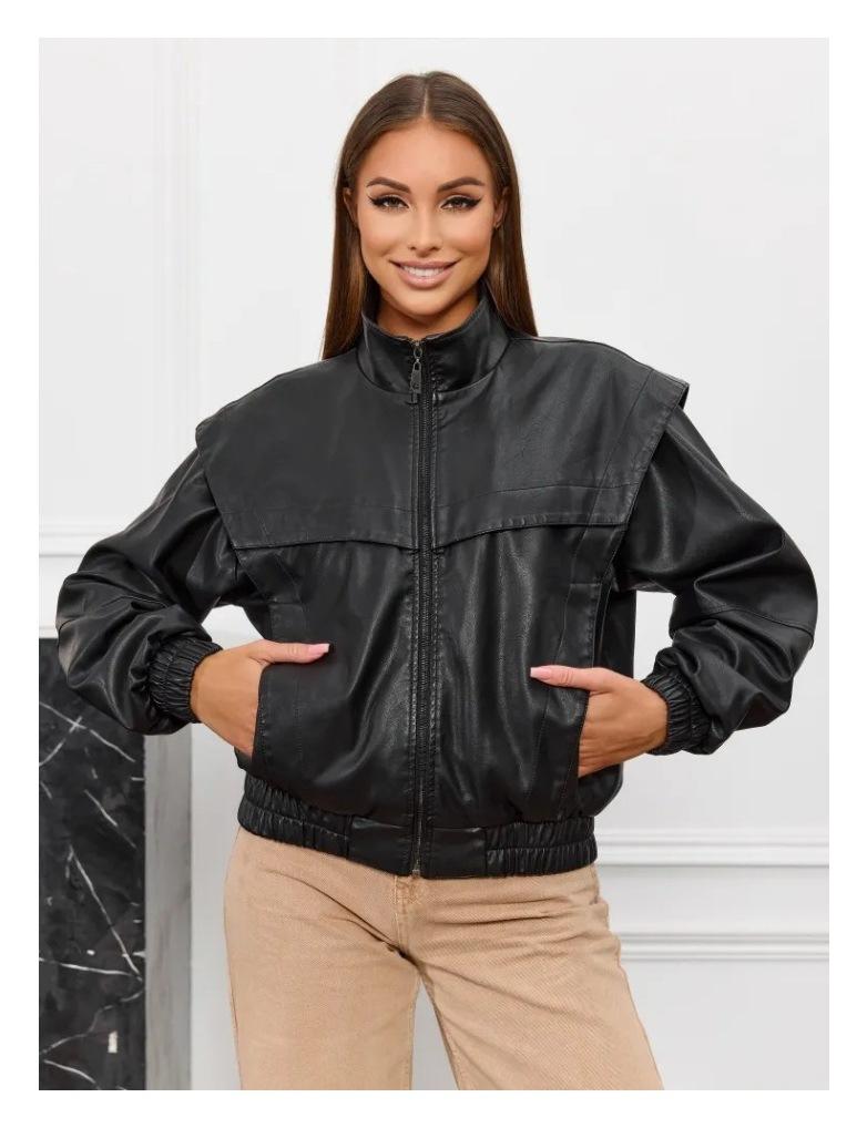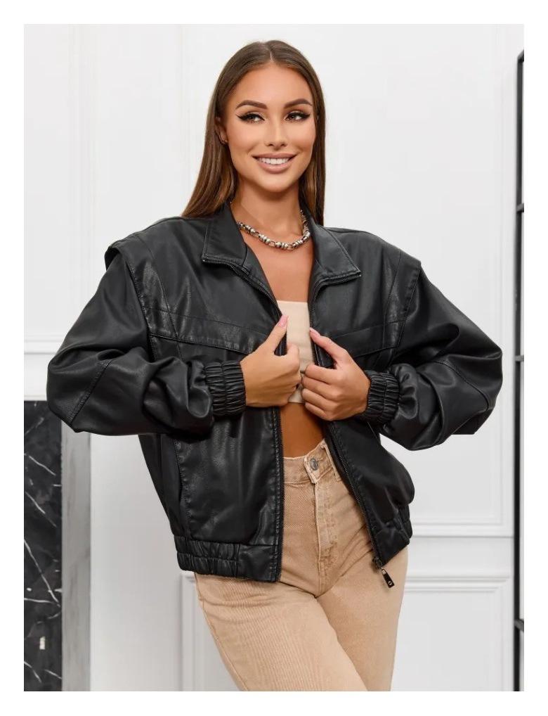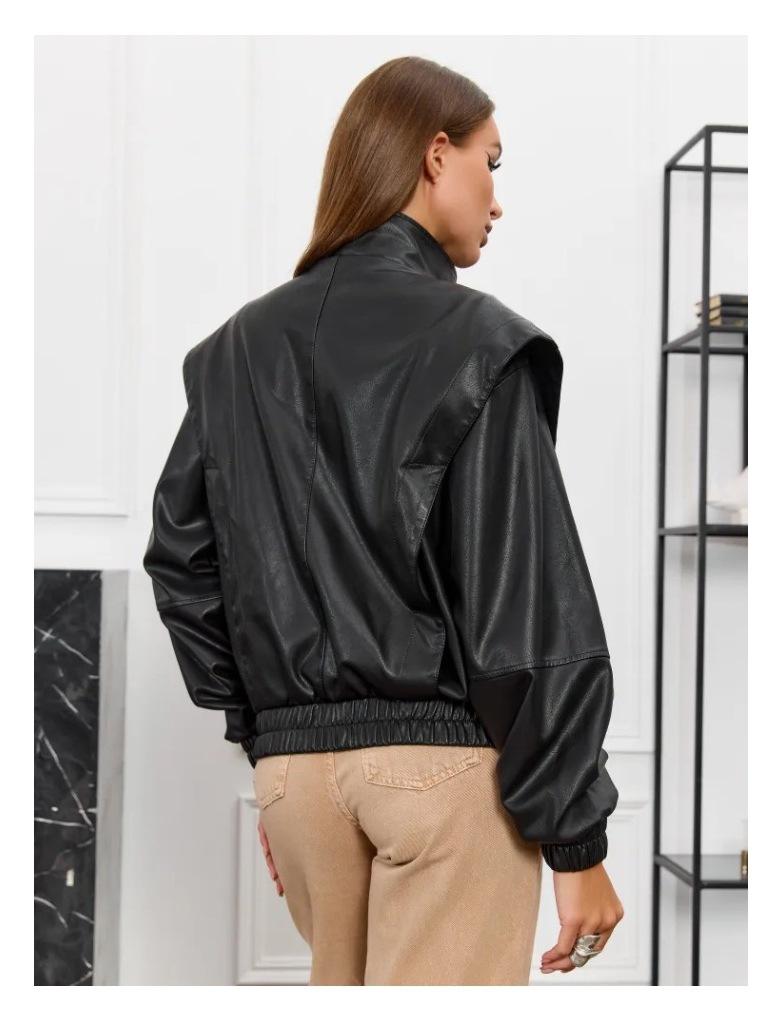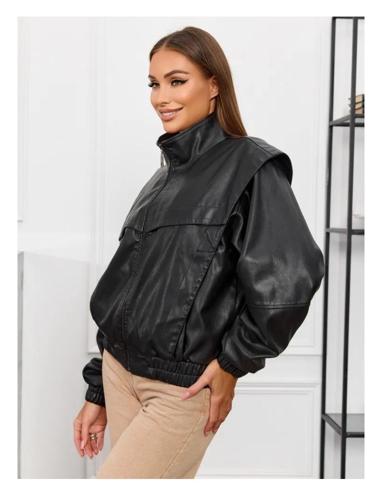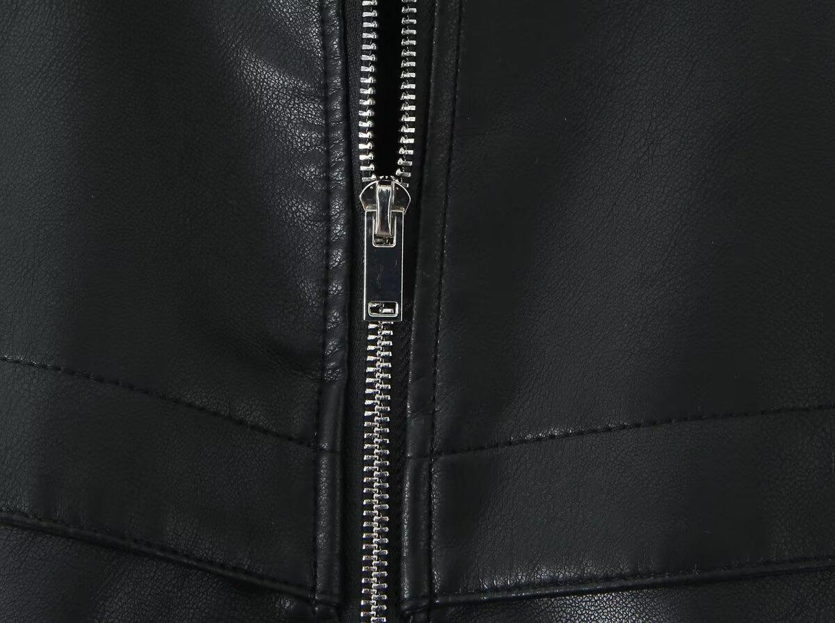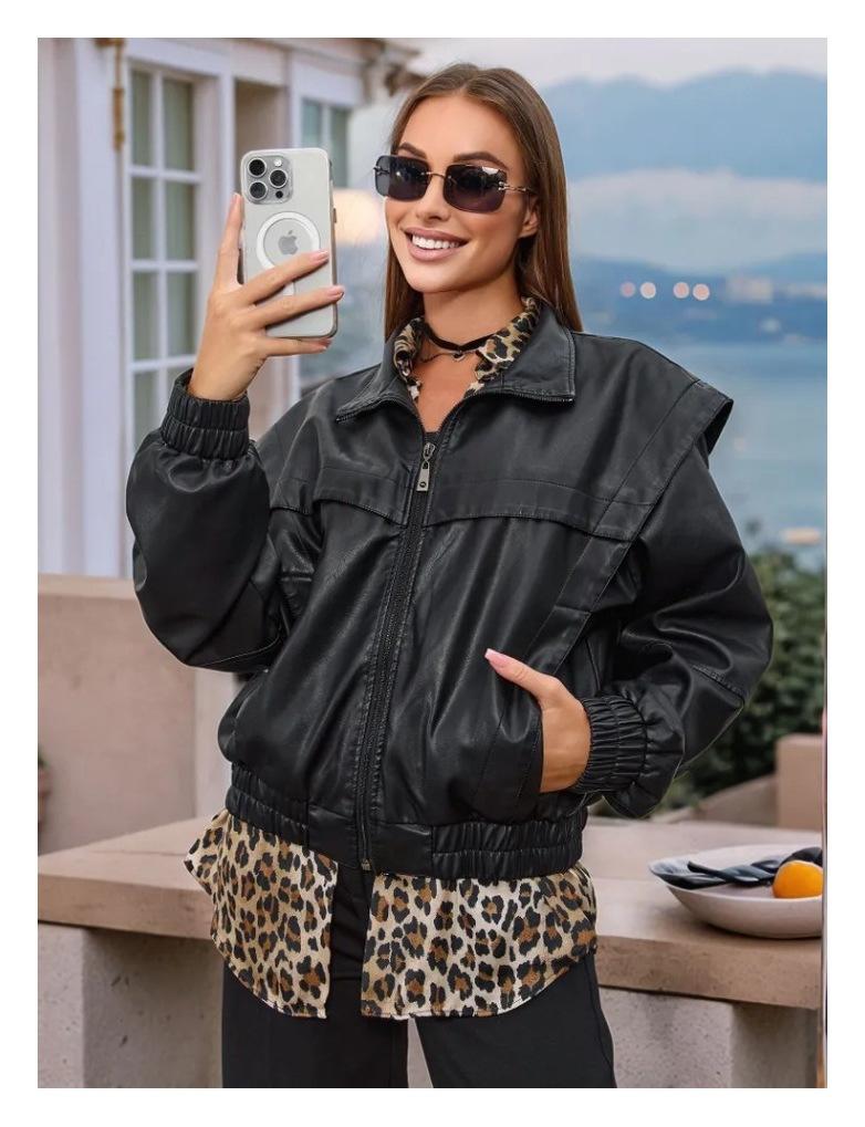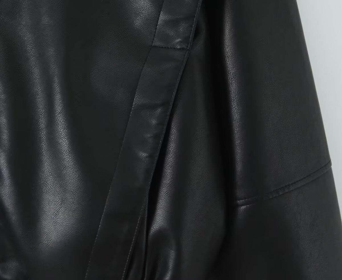 Ropa de Mujer Transfronteriza Europea y Americana 2025 Otoño Nuevo Estilo Retro Diseño de Hombro Grande Chaqueta con Cierre de Cuero PU Top