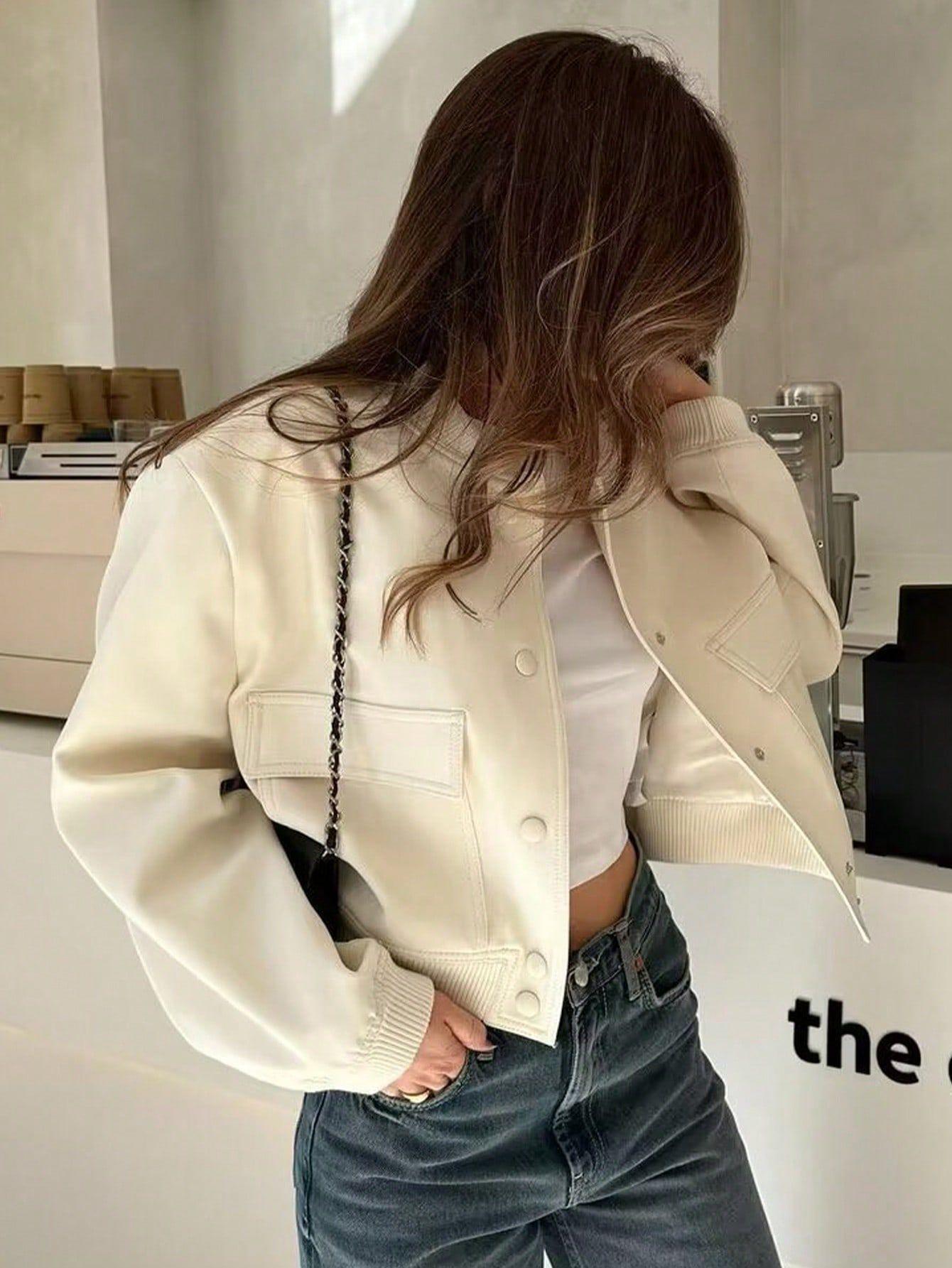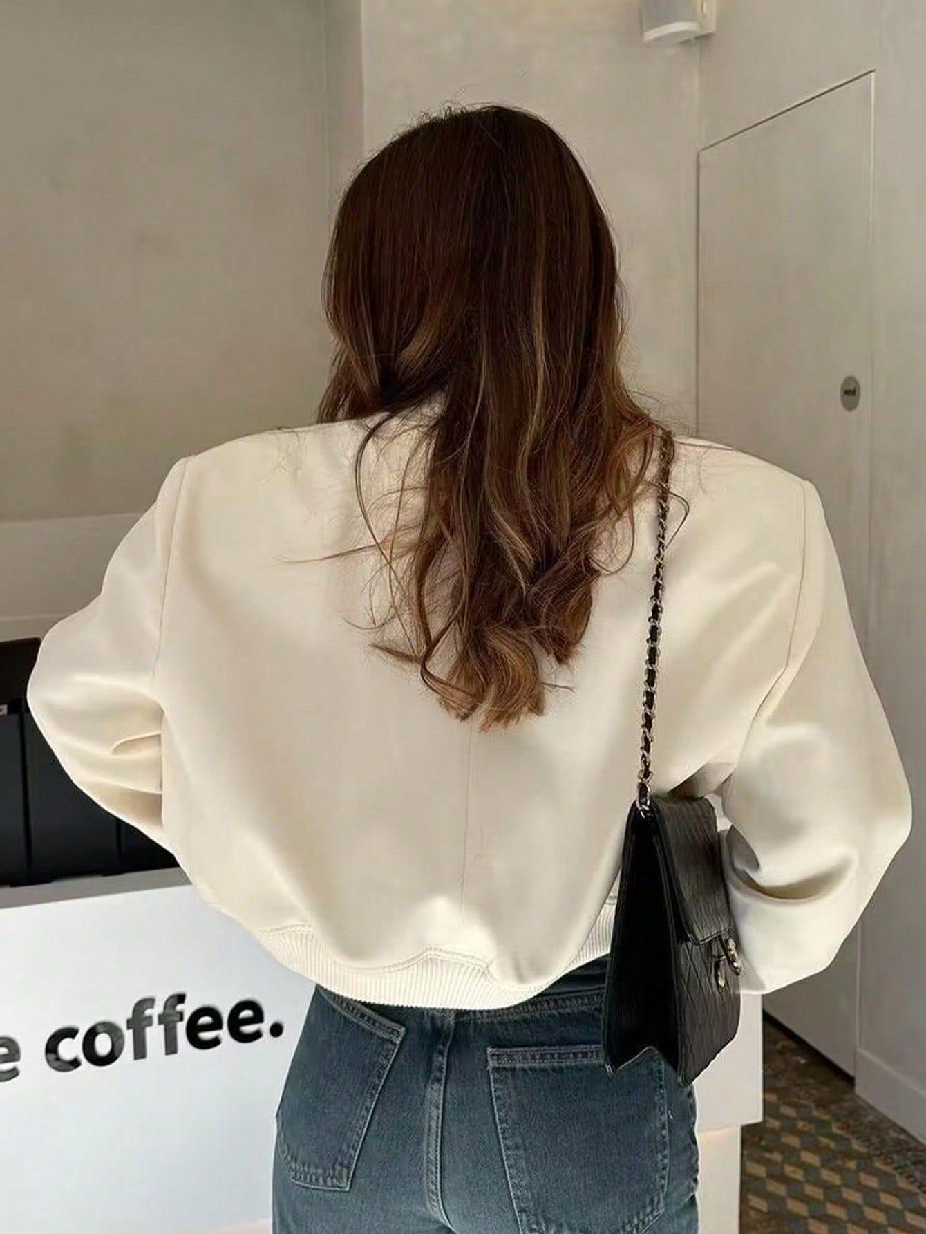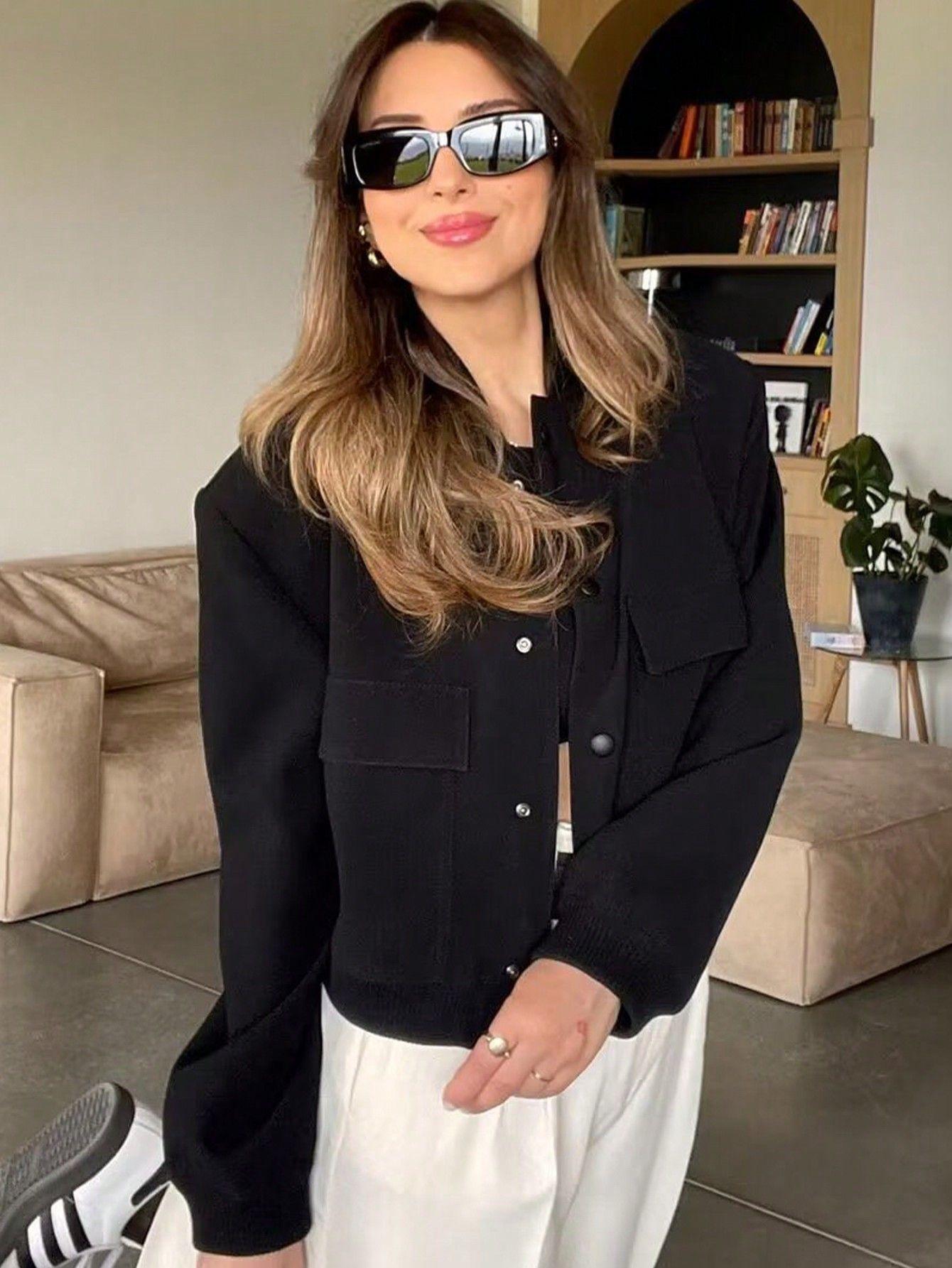 Ropa Popular de Primavera y Otoño para Mujer Transfronteriza 2 Colores Aliexpress Europea y Americana Cuello Alto Bolsillo Grande Chaqueta Abrigo de Mujer