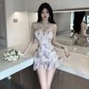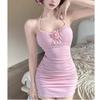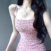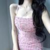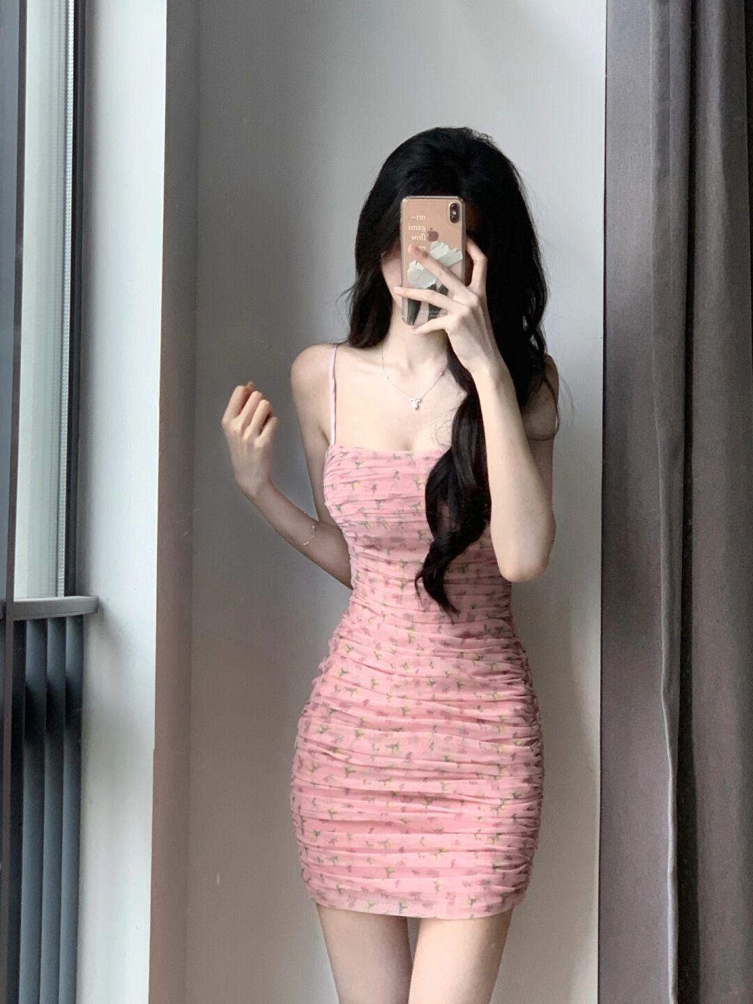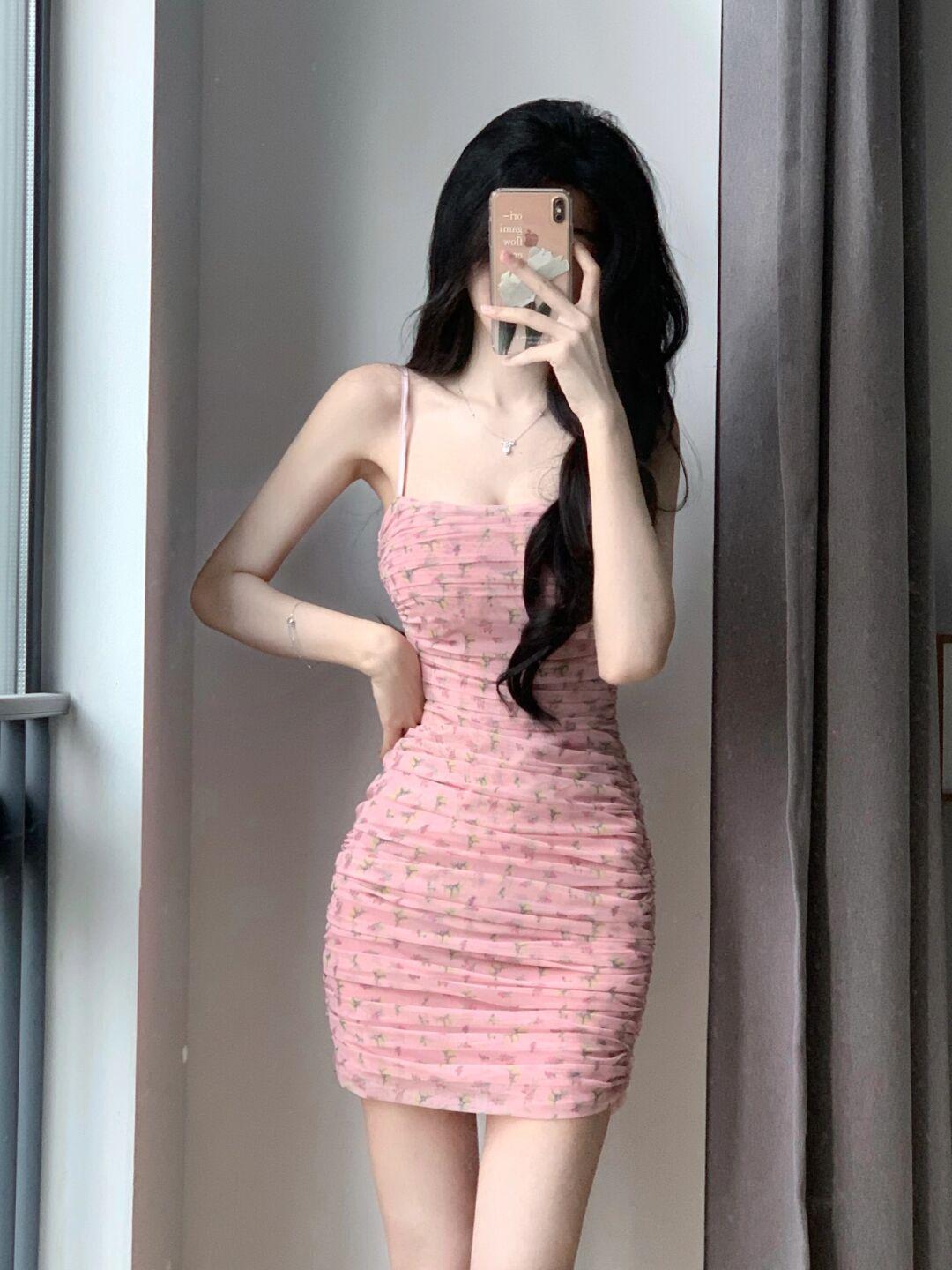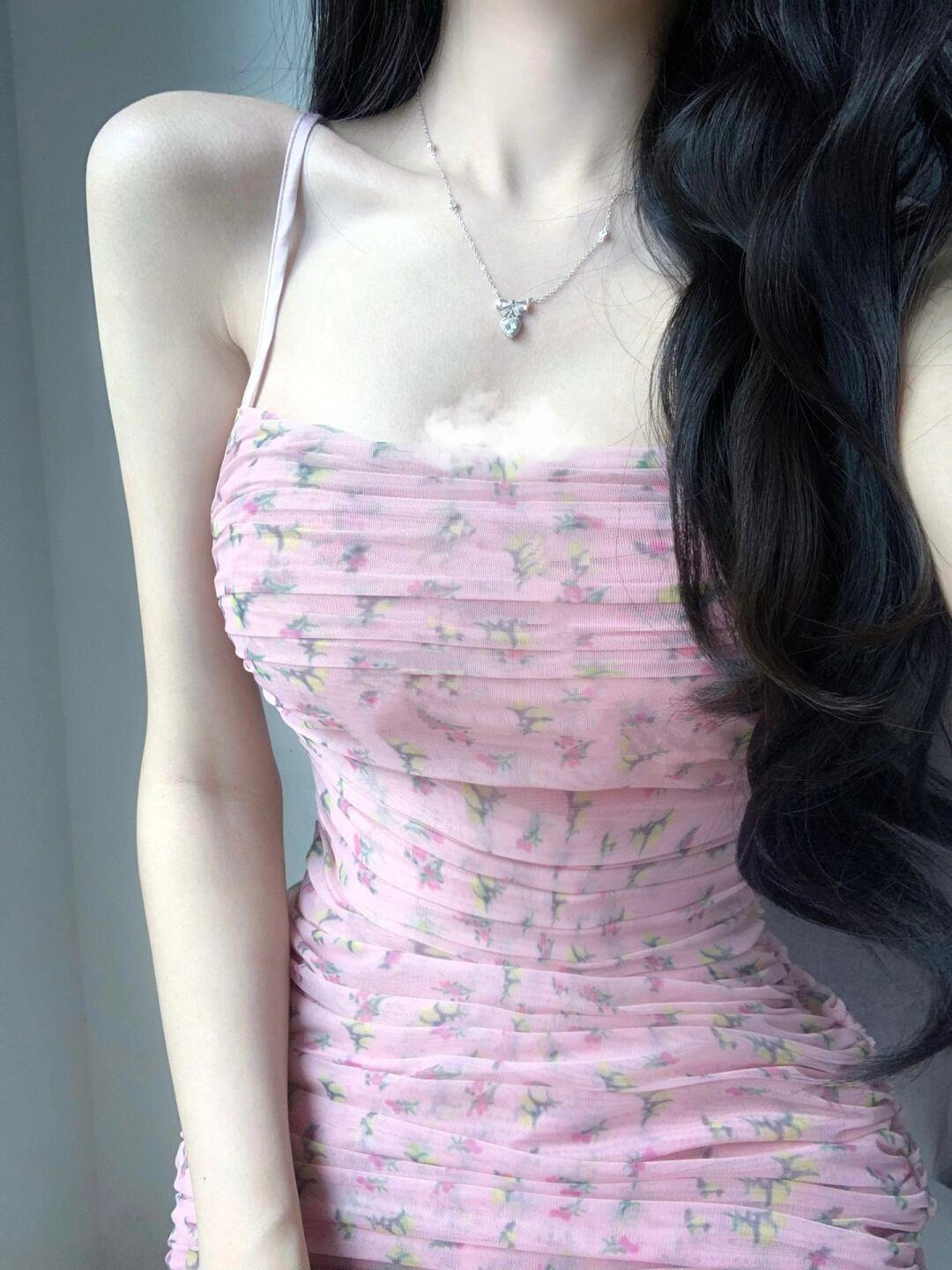 Vestido Floral de Tirantes de Deseo Puro para Mujer Verano Petite Rosa Cintura Sexy Ajustado Chica Caliente Sin Mangas Falda de Cadera