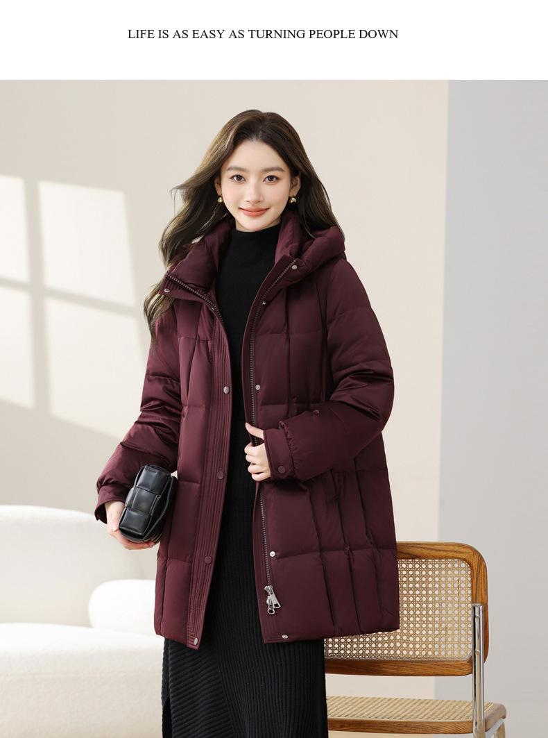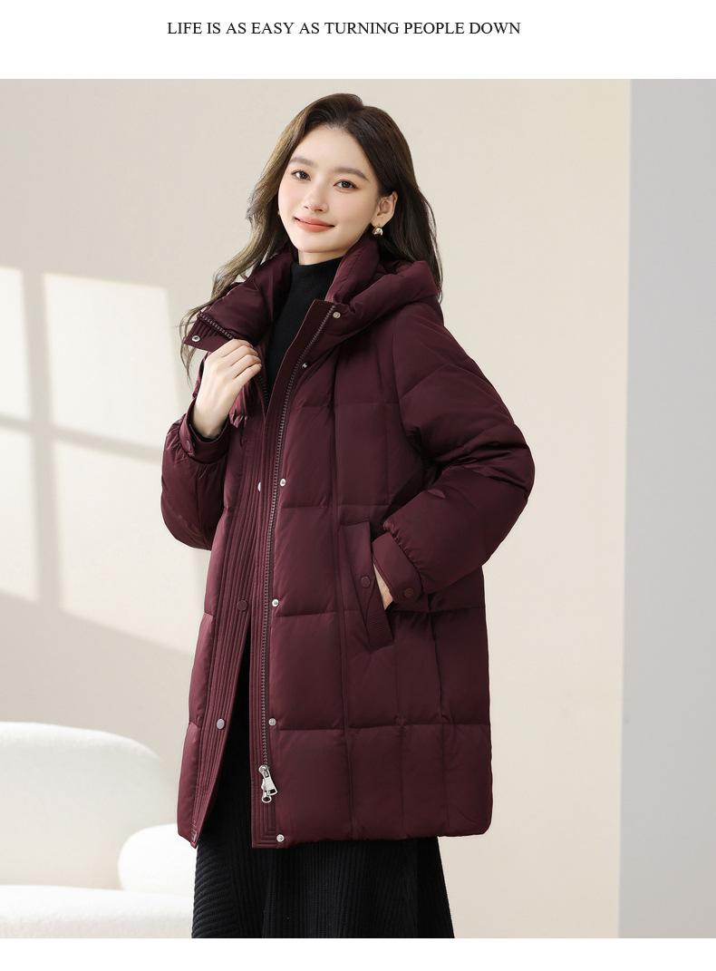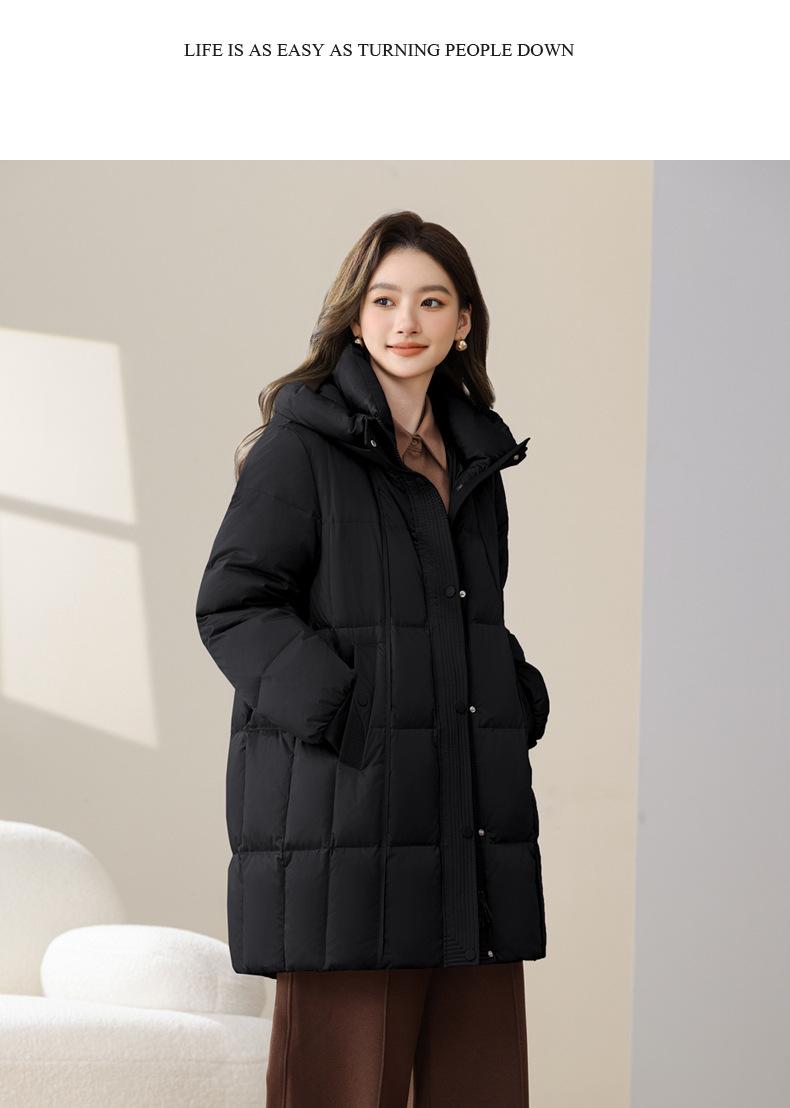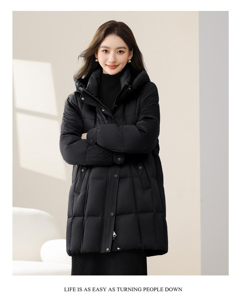 Chaqueta de Nieve Cayendo para Mujer de Largo Medio con Capucha a Prueba de Frío Invierno Nuevo Engrosado Talla Grande Chaqueta de Plumón de Pato para Mujer