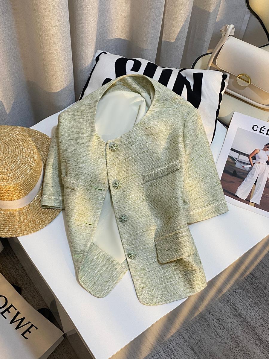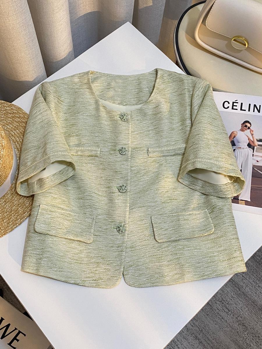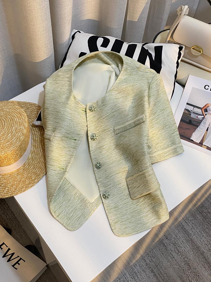 Chaqueta Corta de Estilo Fresco y Moderno en Verde Claro para Mujer 2025 Verano Nuevo Top Versátil Casual de Alta Gama