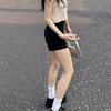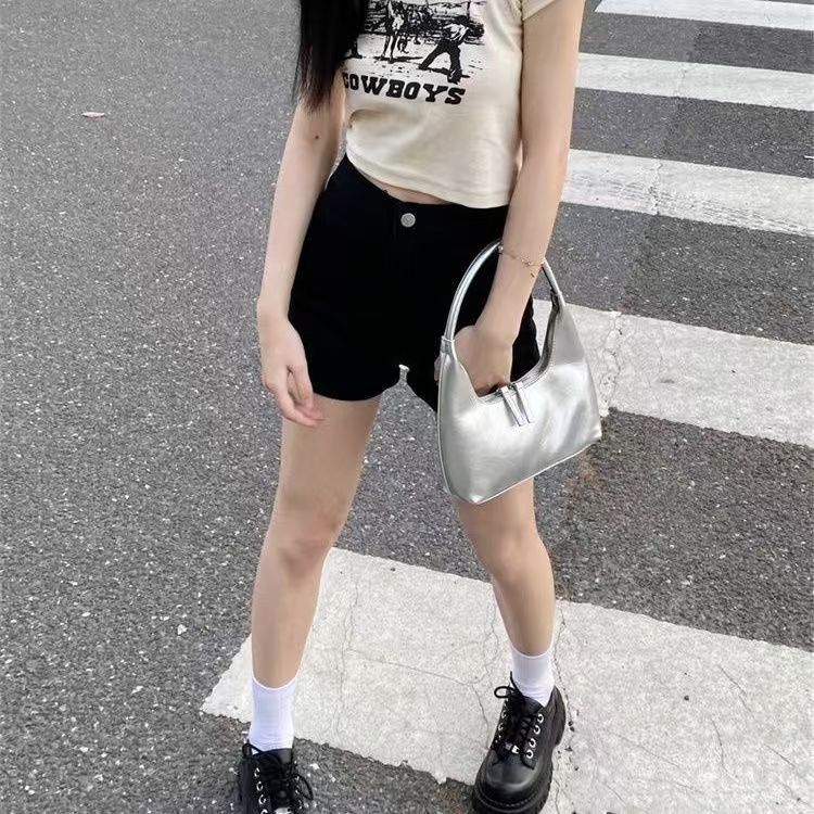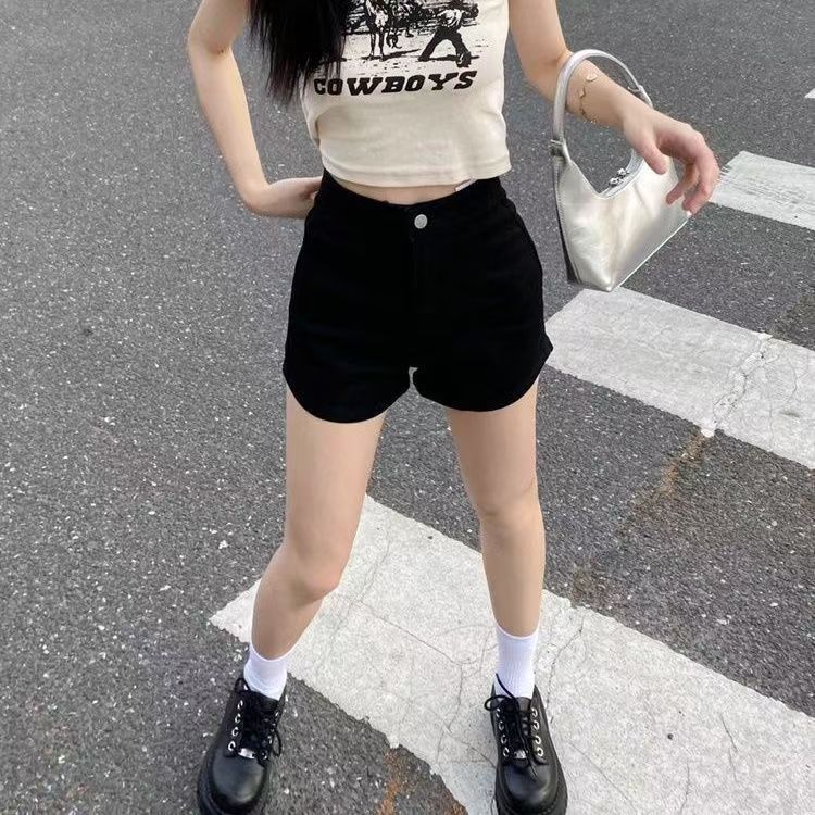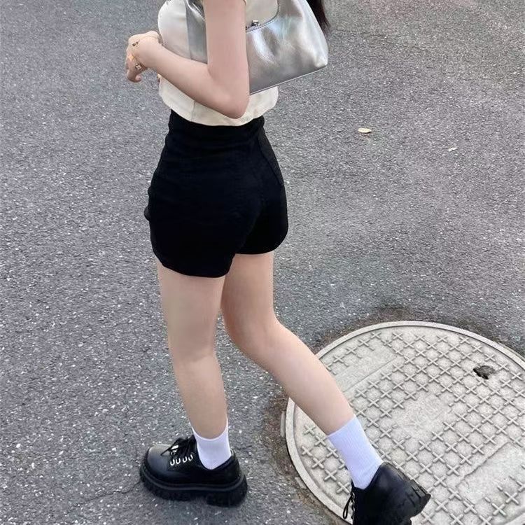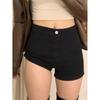2025 Verano Nuevo Shorts de Mezclilla Elásticos para Mujer Estilo Americano Chica Sexy Negro Desgastado Adelgazantes Petite Versátiles Pantalones Cortos