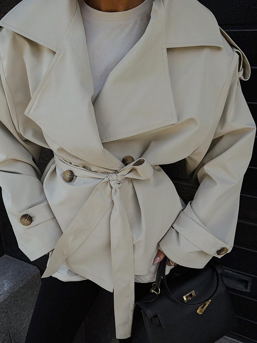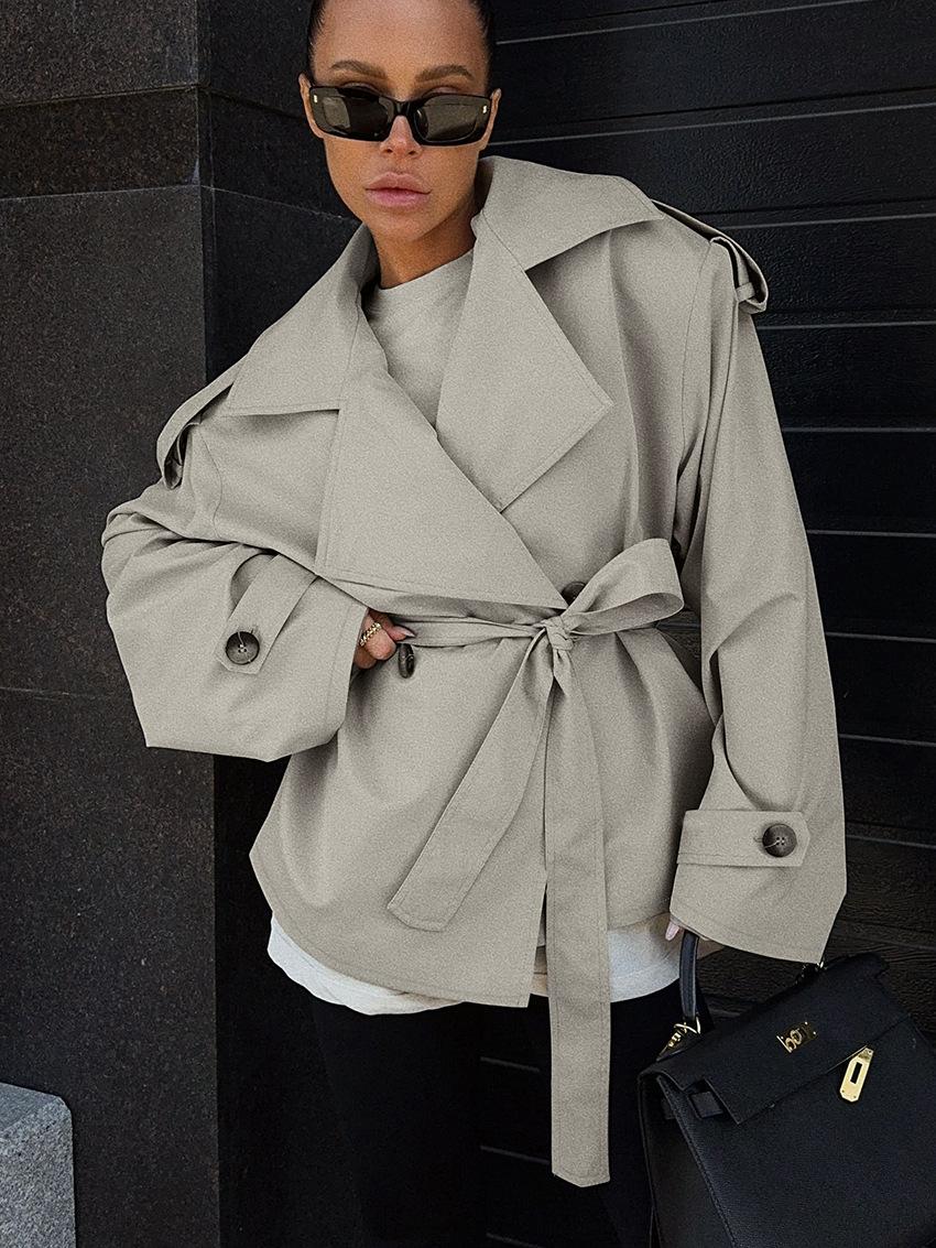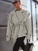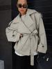 2025 Nuevo Otoño Chaqueta Cortavientos de Manga Larga con Cinturón Suelto para Mujer con Diseño, Elegante, Moda y Casual para Desplazamiento Transfronterizo
