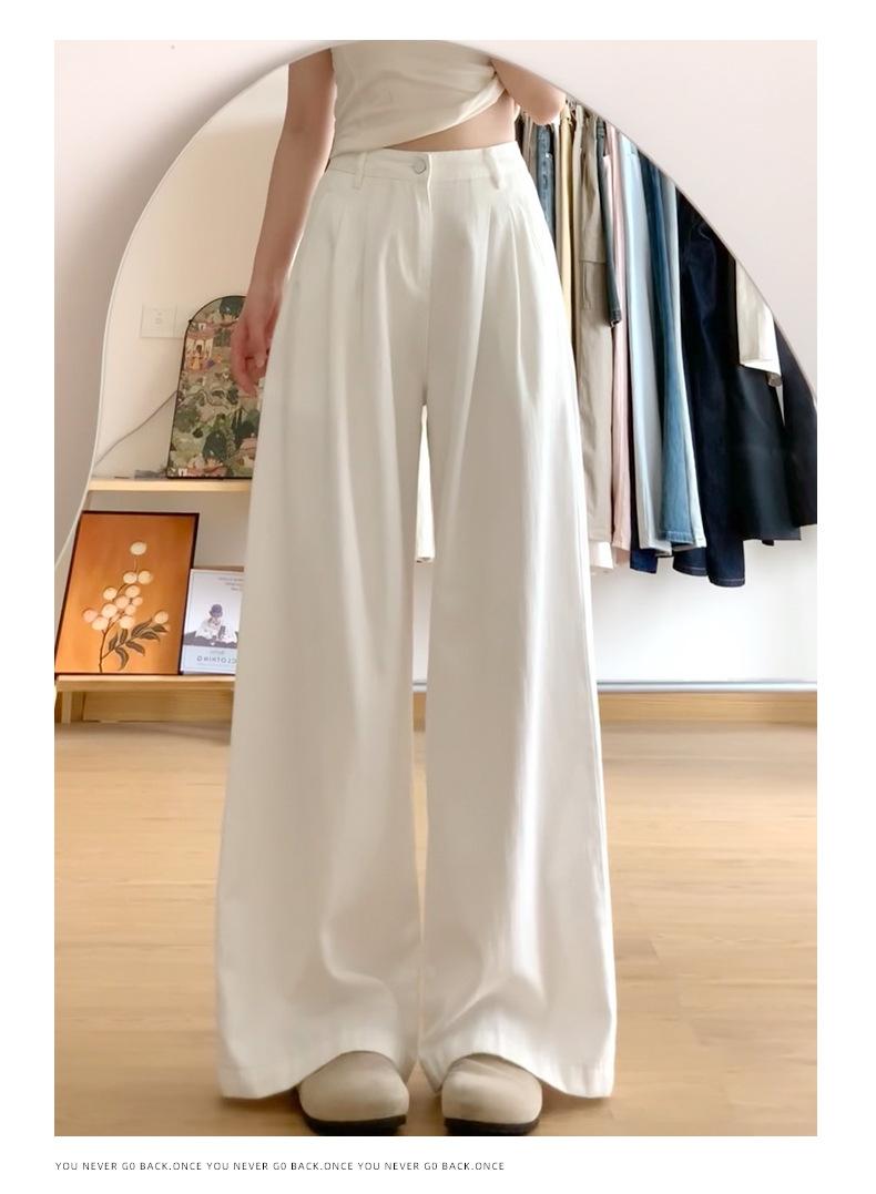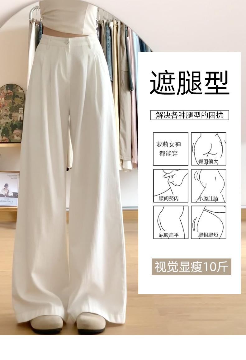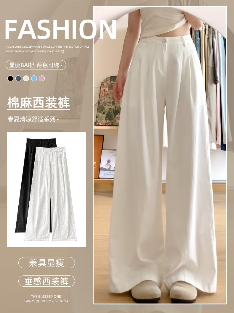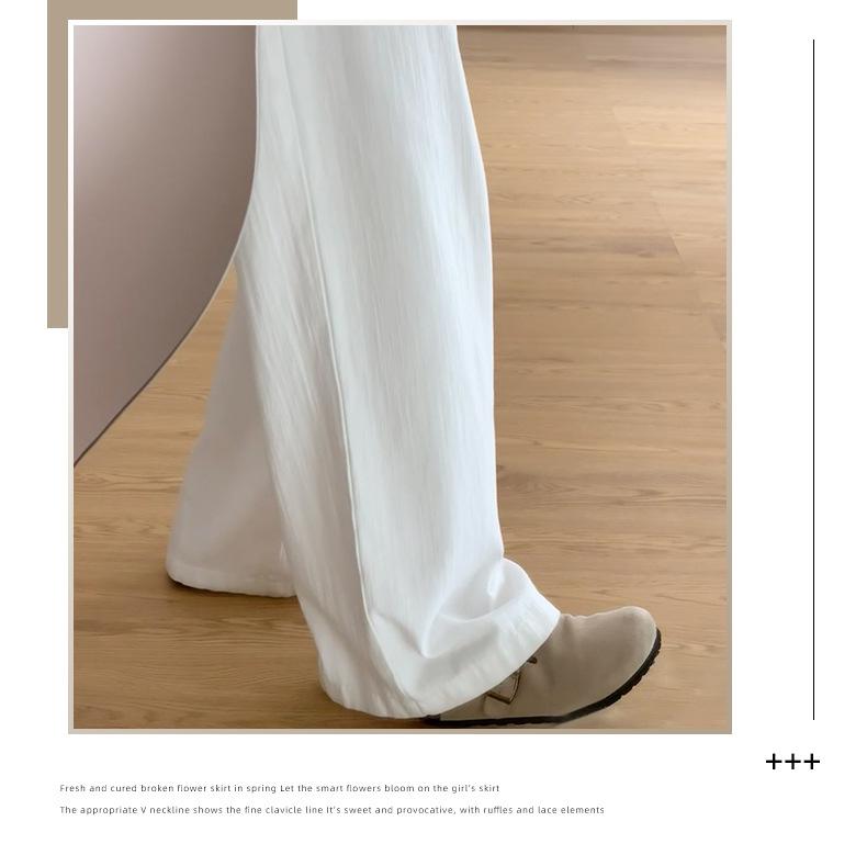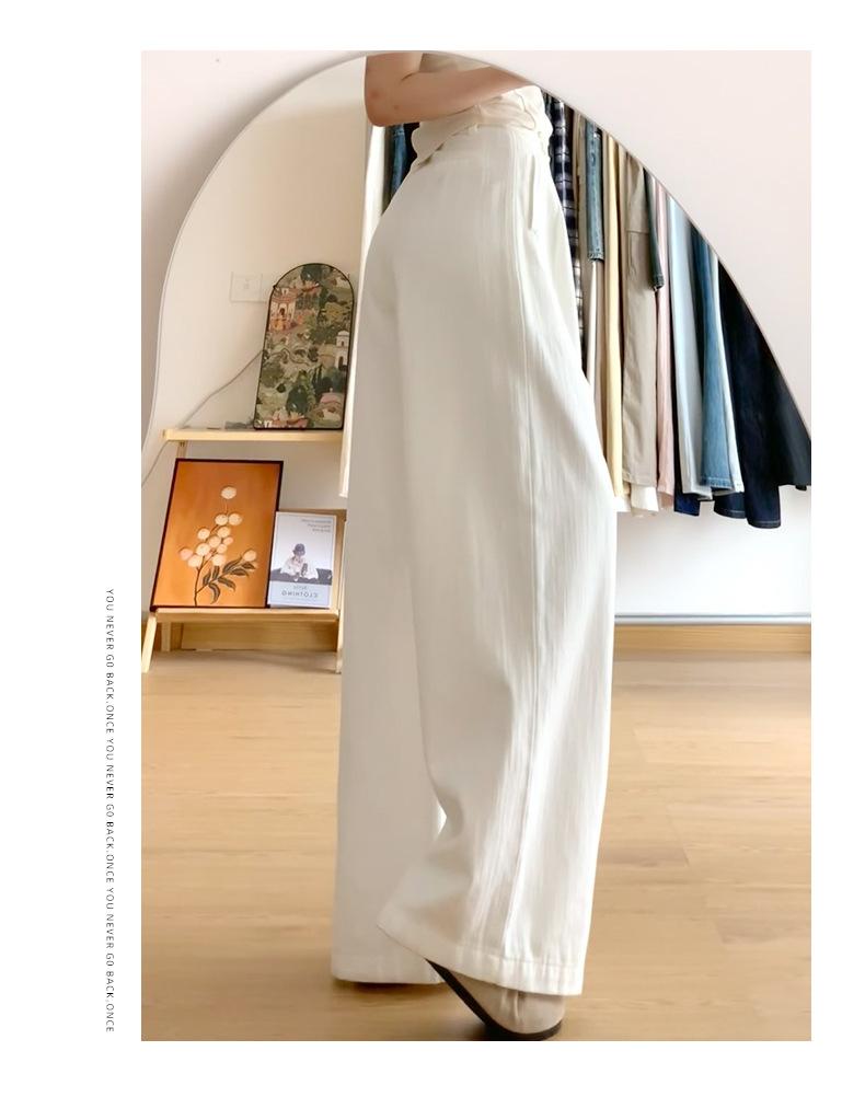 Traje de Lino Blanco Pantalones de Pierna Ancha Verano 2025 para Mujer Delgados de Pierna Recta Cintura Alta Drapeados Sueltos Adelgazantes Pantalones Casuales