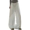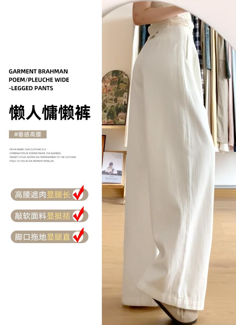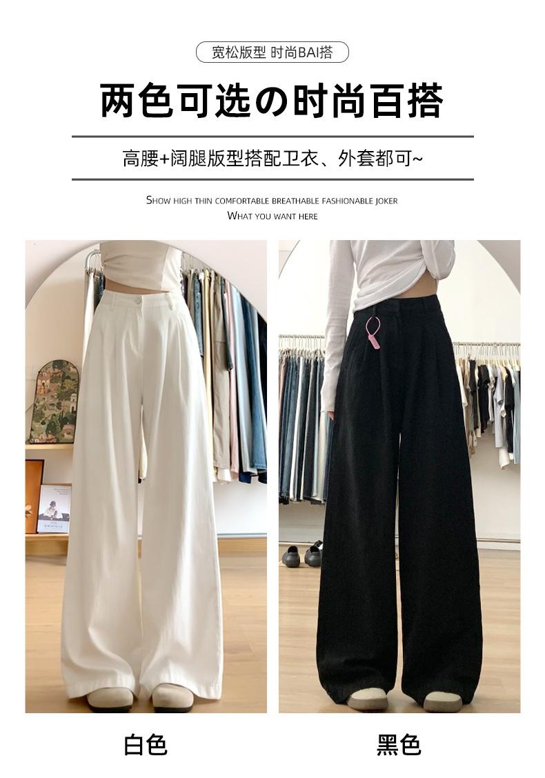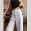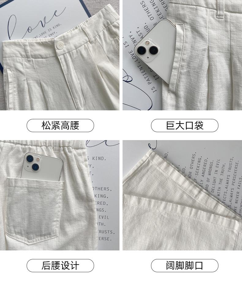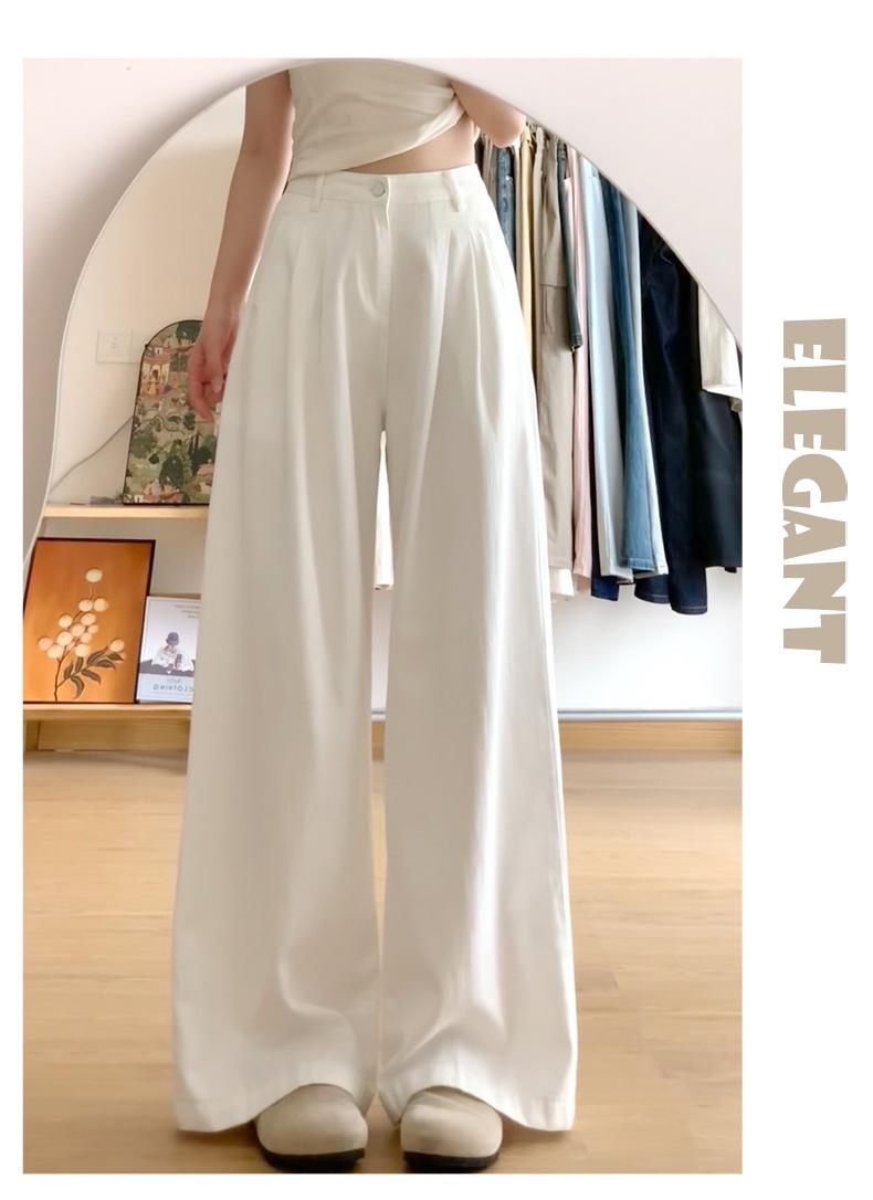 Traje de Lino Blanco Pantalones de Pierna Ancha Verano 2025 para Mujer Delgados de Pierna Recta Cintura Alta Drapeados Sueltos Adelgazantes Pantalones Casuales