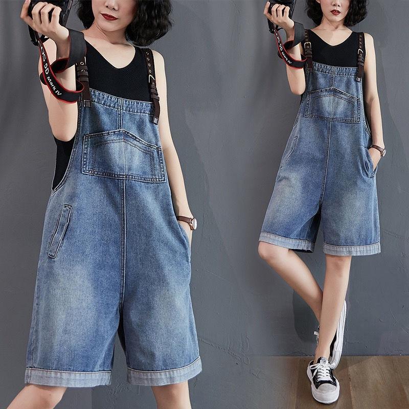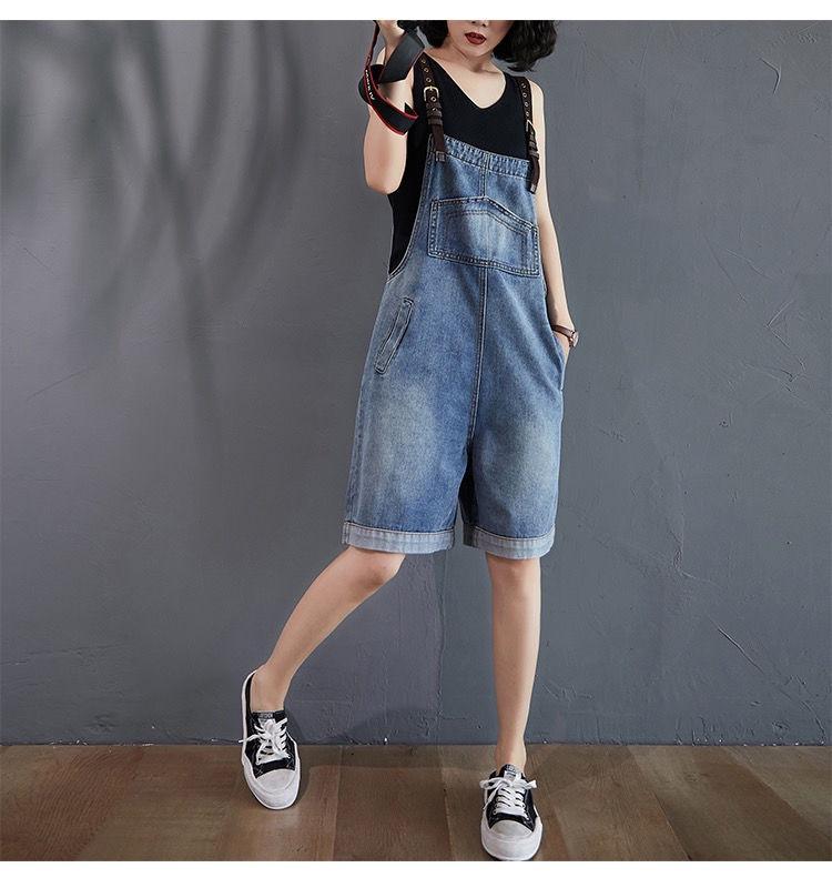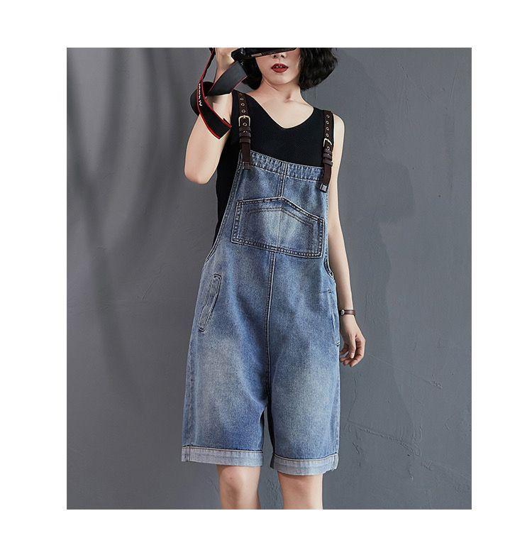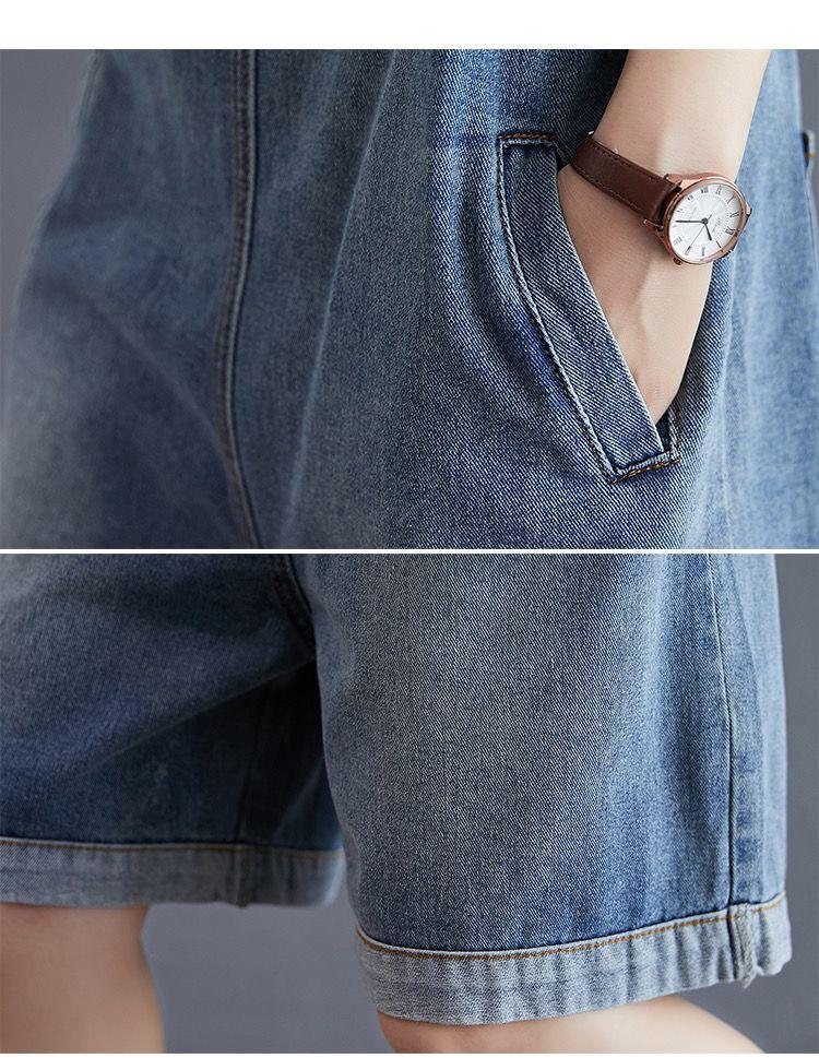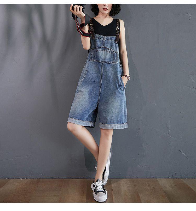 Overoles de mezclilla para mujer 2025 Verano Nuevo estilo Estudiante Estilo coreano Suelto Reductor de edad Look adelgazante Pierna ancha Una pieza Shorts con tirantes