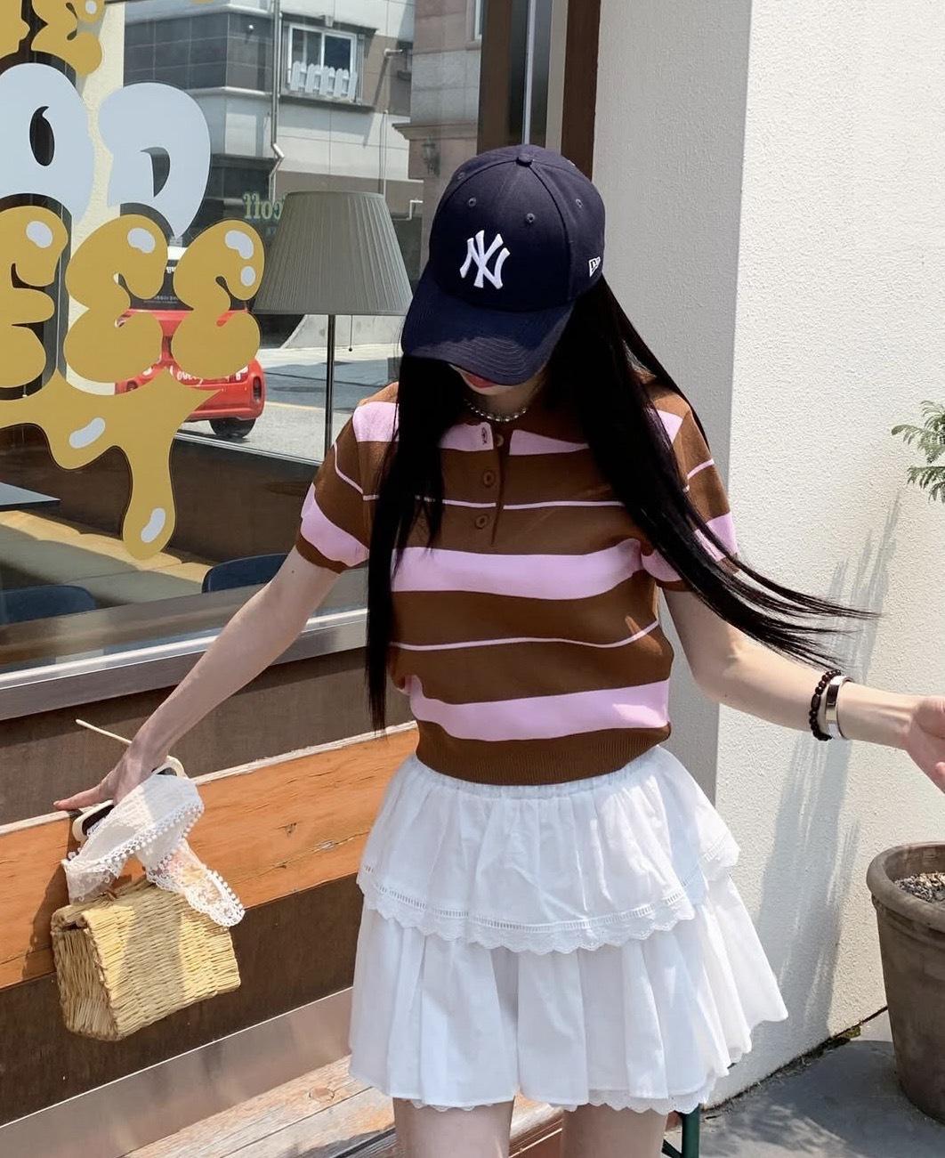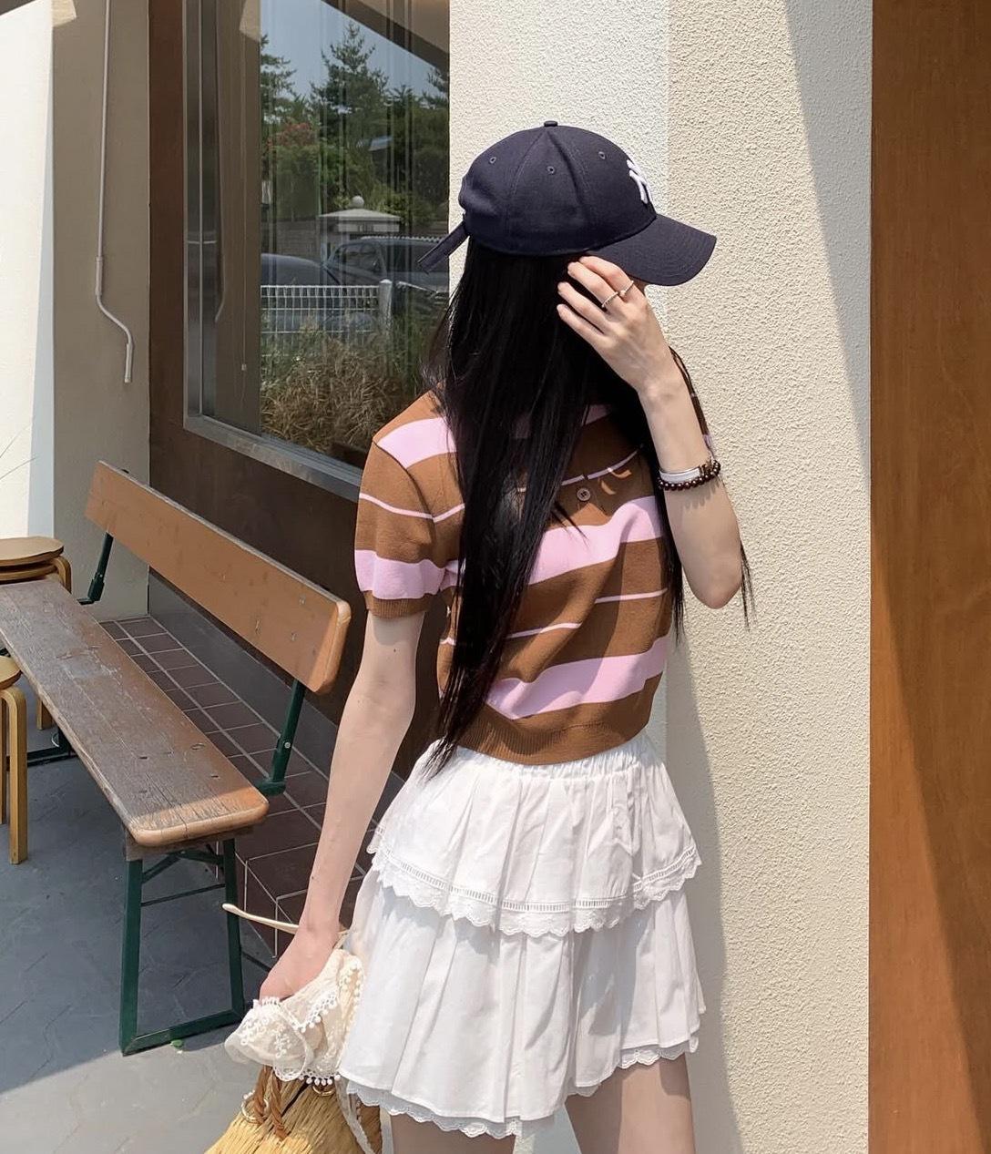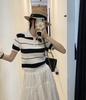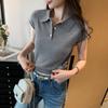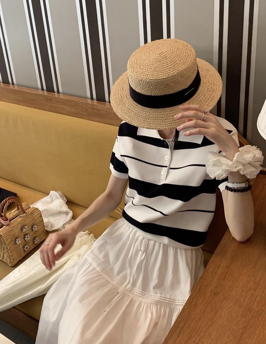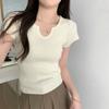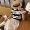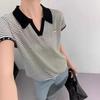 Chic Coreano 2025 Verano Nuevo Retro Francés Solapa Rayado Versátil Punto Manga Corta Top de Mujer