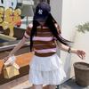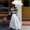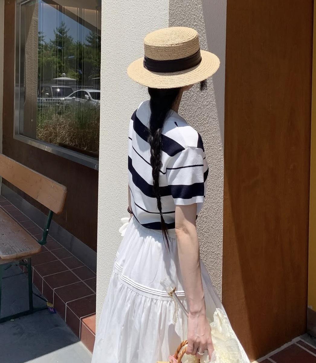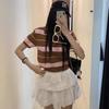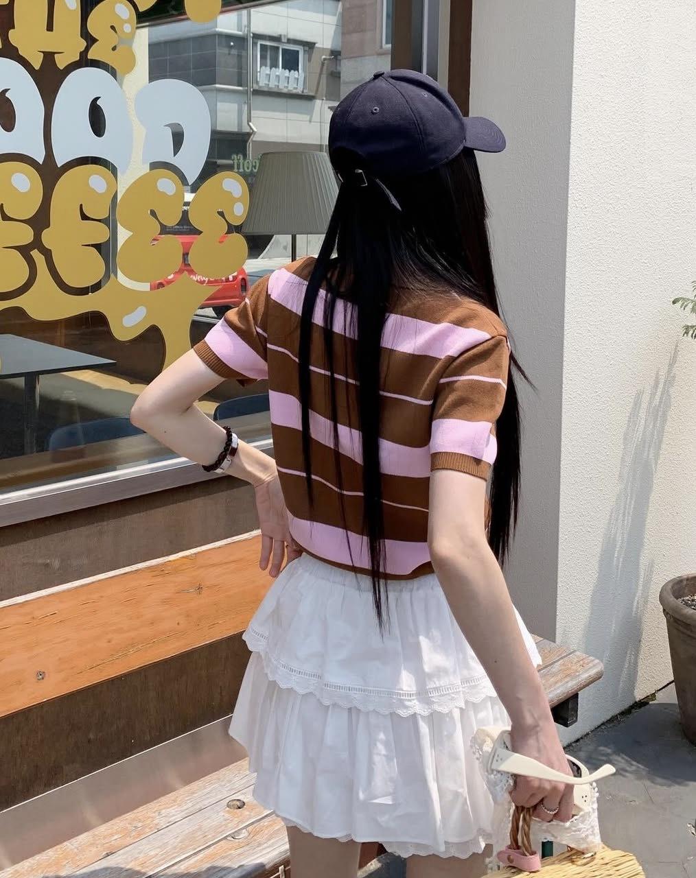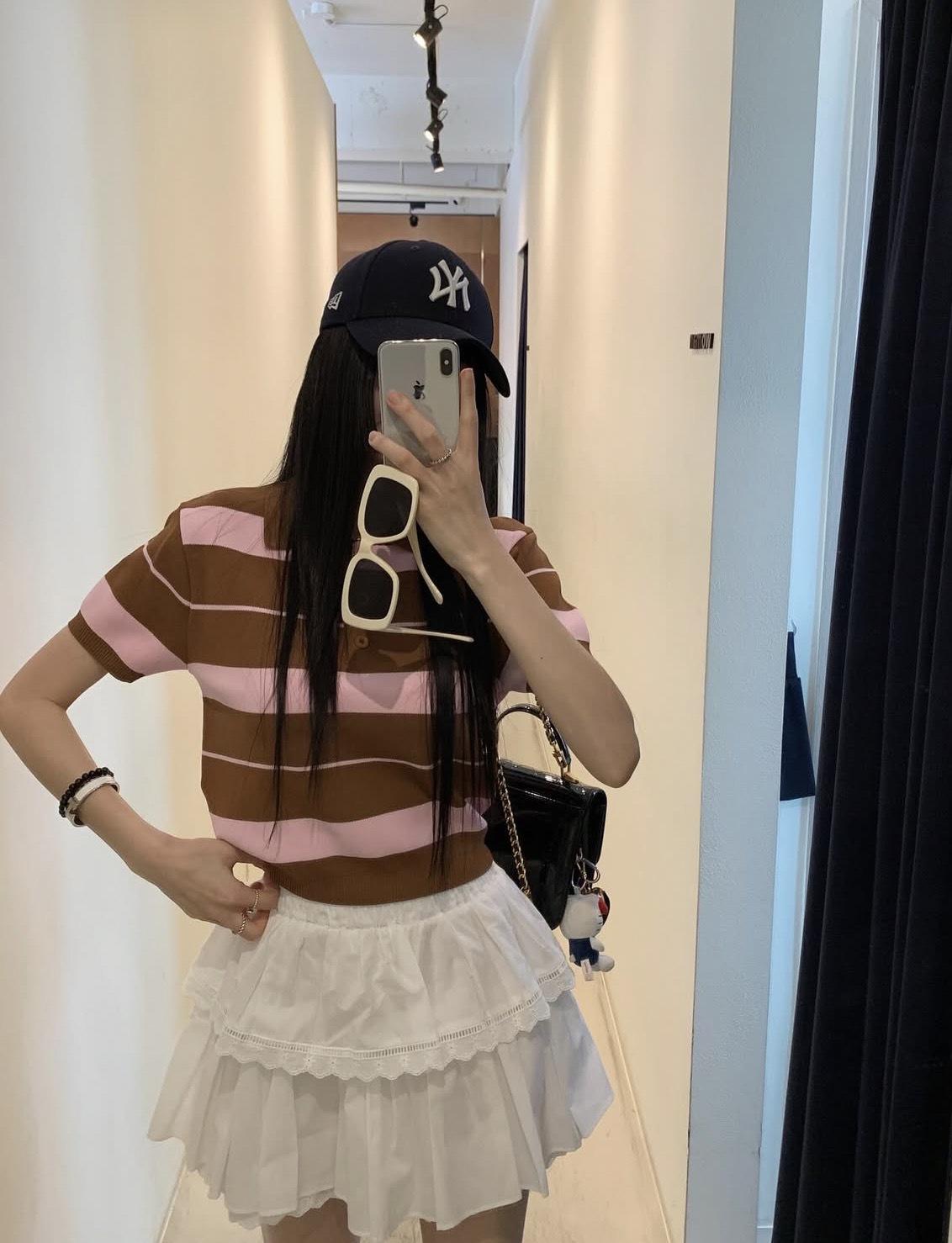 Chic Coreano 2025 Verano Nuevo Retro Francés Solapa Rayado Versátil Punto Manga Corta Top de Mujer