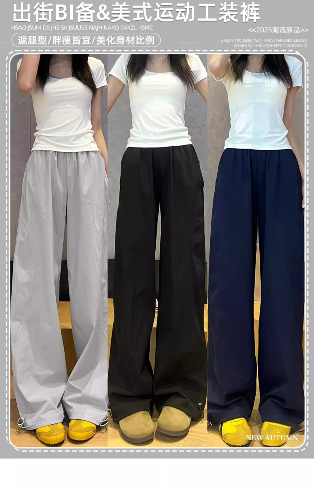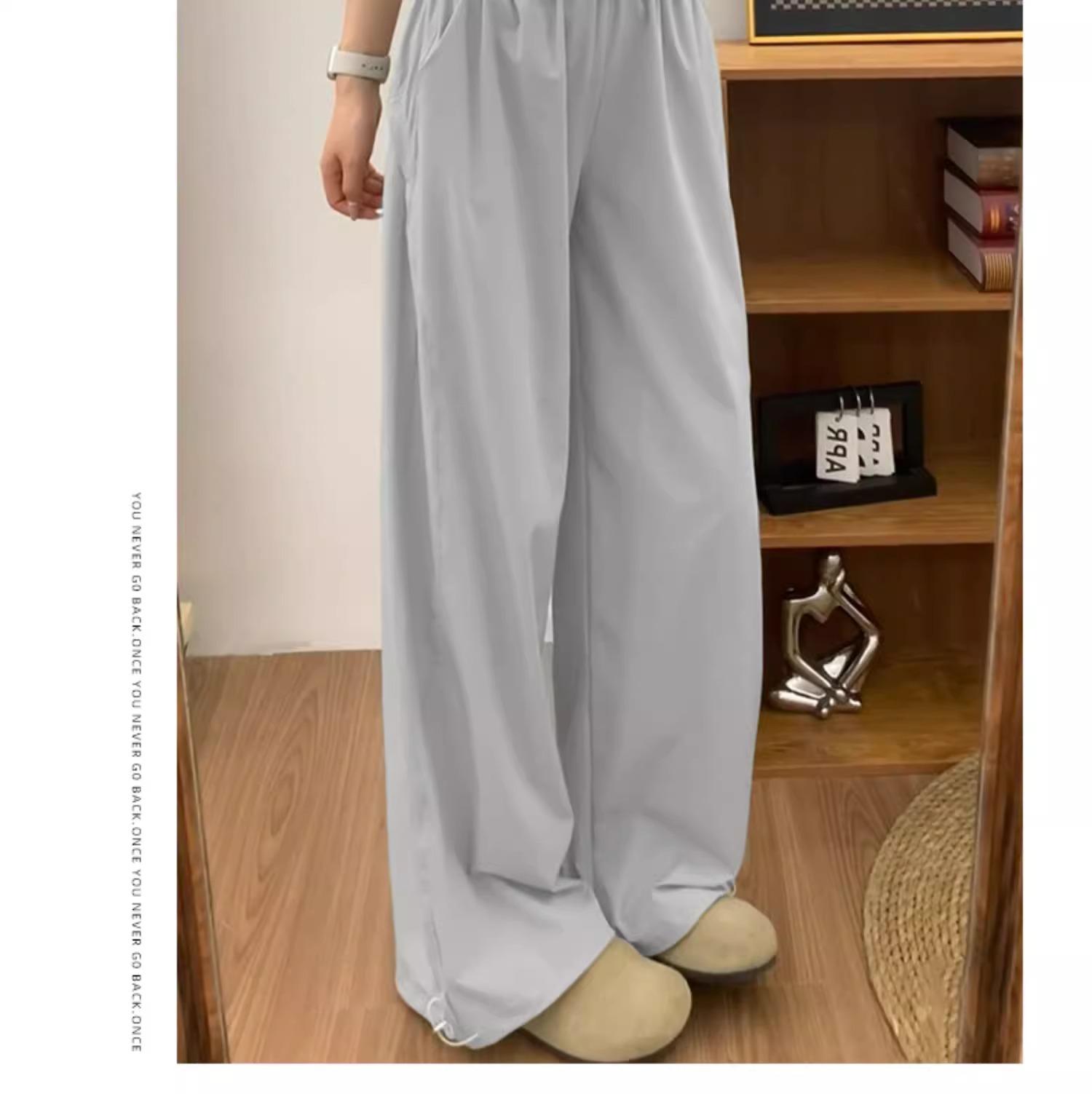 Pantalones casuales de trabajo de moda para mujer 2025 verano nuevo tiro alto holgados drapeados adelgazantes de secado rápido pantalones deportivos