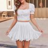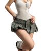 Verano Europeo y Americano Cintura Alta Estilo Americano Chica Caliente Adelgazante Casual Ropa de Mujer Sexy Ajustado Falda de Burbujas con Flores Traje Corto Falda Corta