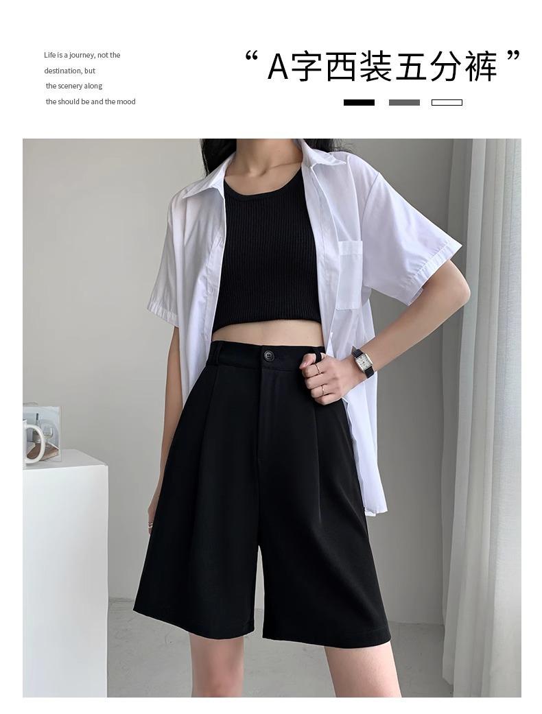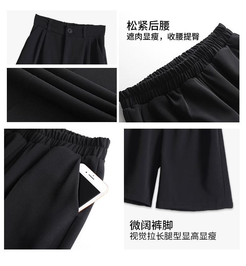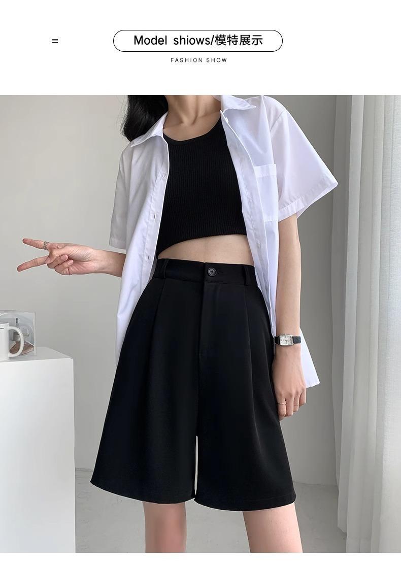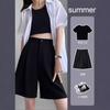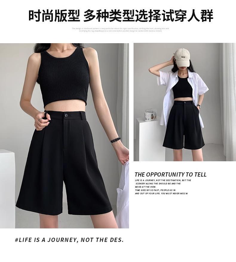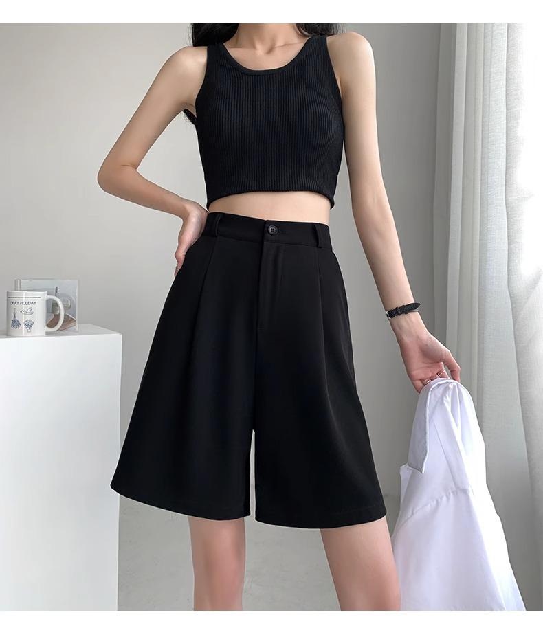 Shorts de Traje Negros para Mujer, Verano Delgados Sueltos Casuales de Pierna Ancha de Cintura Alta Rectos Línea A Adelgazantes de Largo Medio