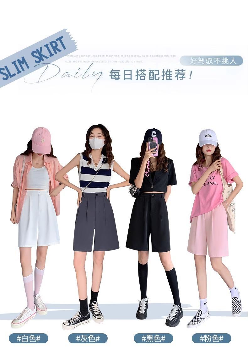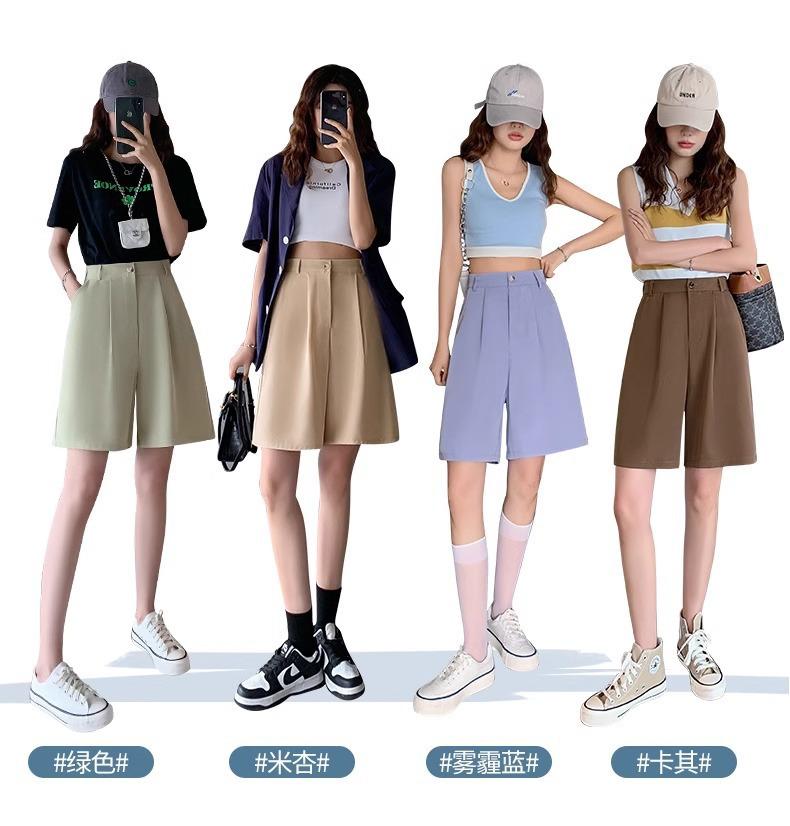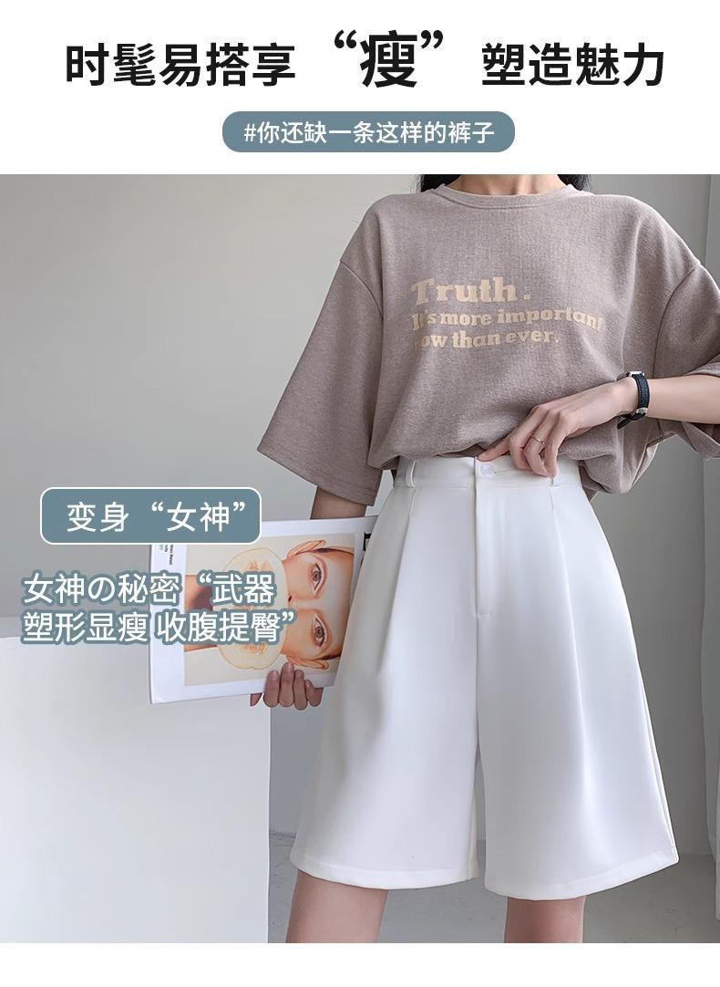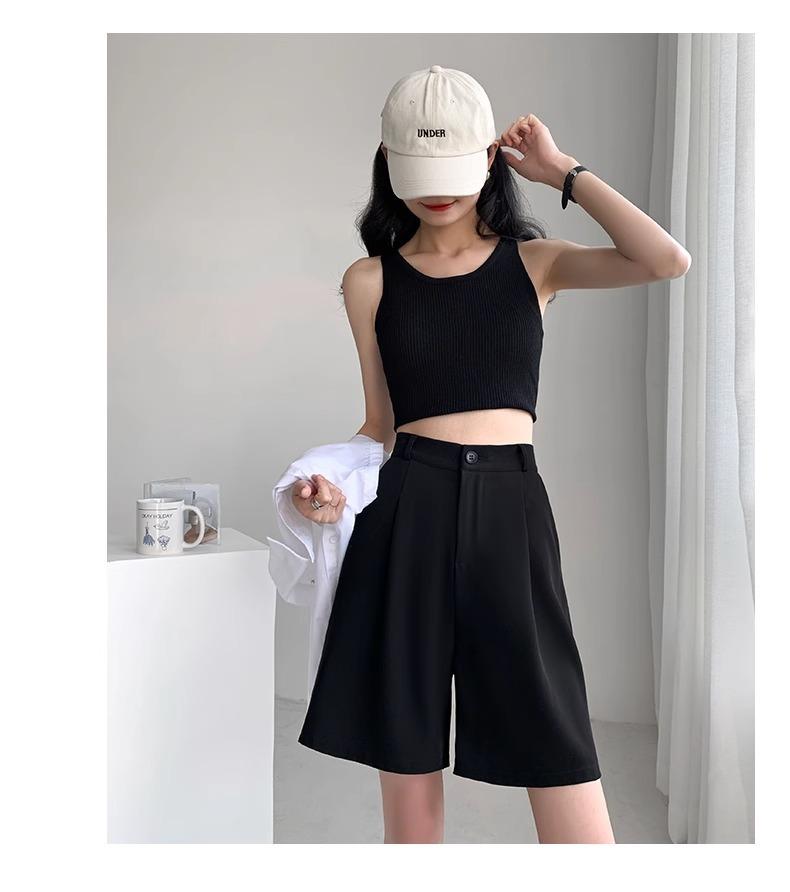 Shorts de Traje Negros para Mujer, Verano Delgados Sueltos Casuales de Pierna Ancha de Cintura Alta Rectos Línea A Adelgazantes de Largo Medio