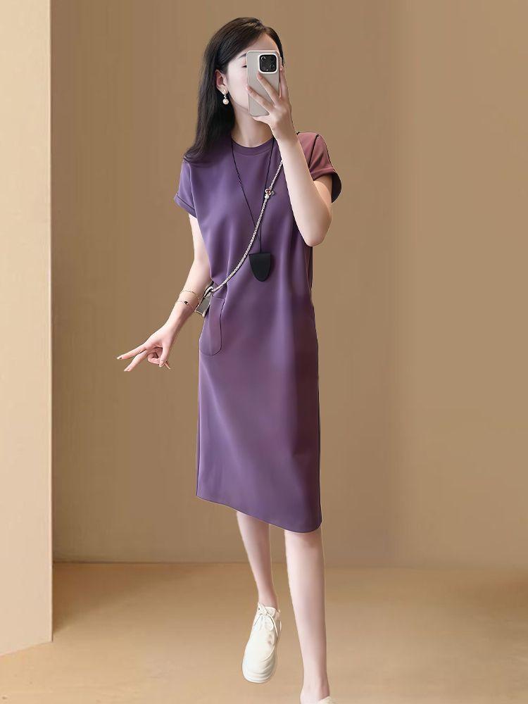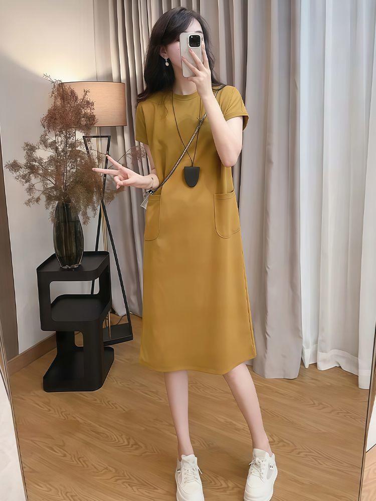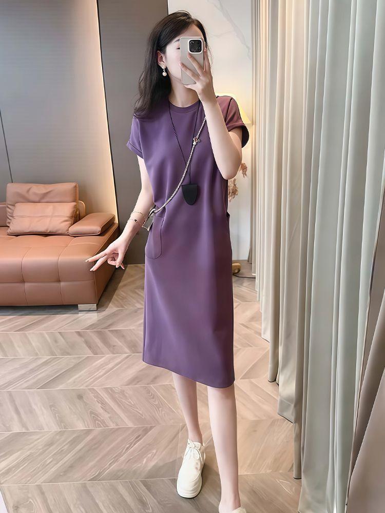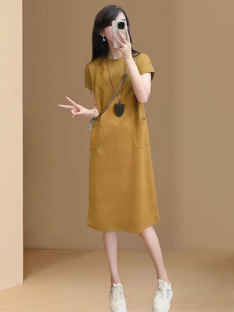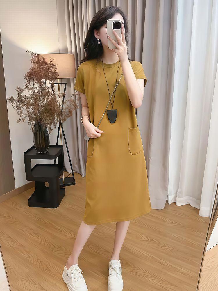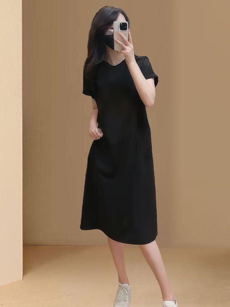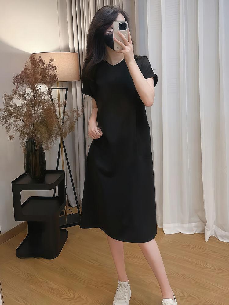 Vestido de Moda Simple Elegante Casual con Abertura Estilo Coreano para Mujer 2025 Verano Vestido Versátil Holgado de Largo Medio