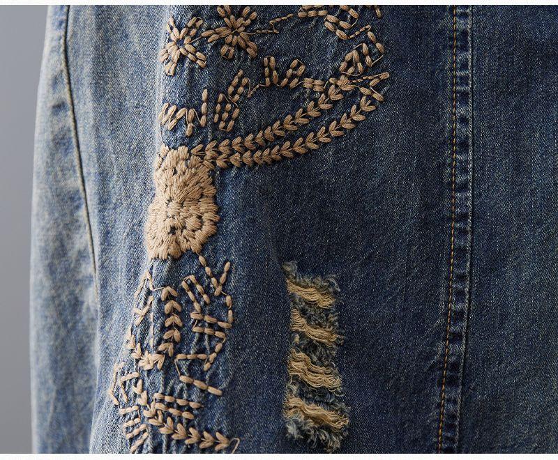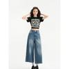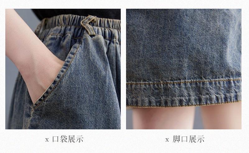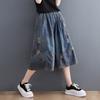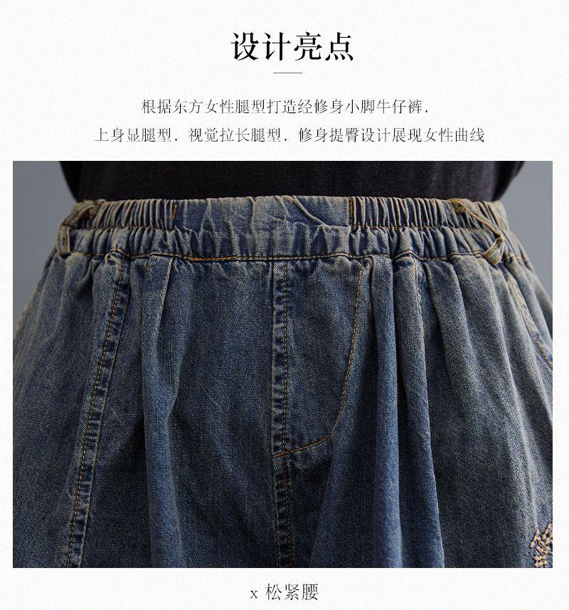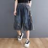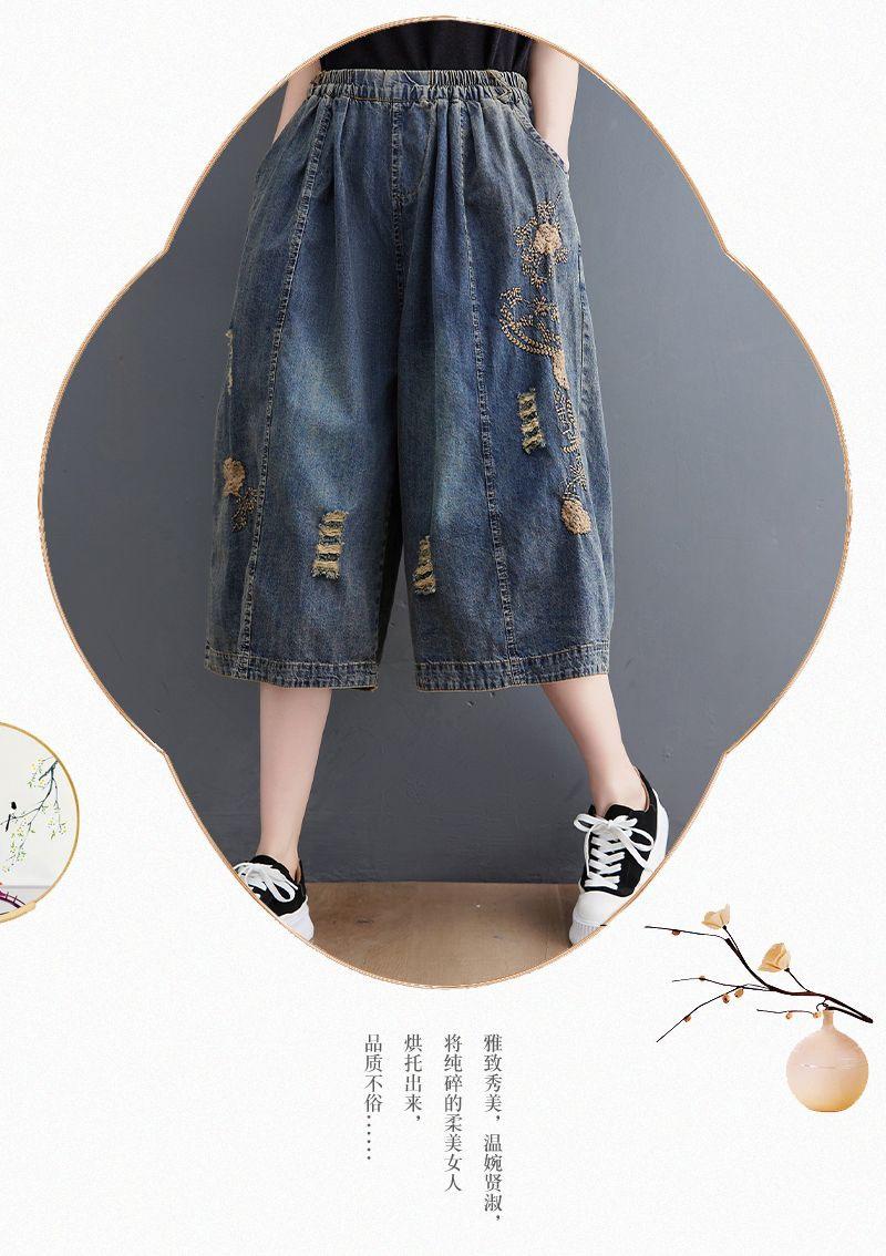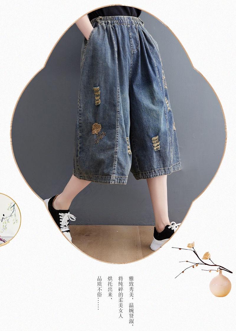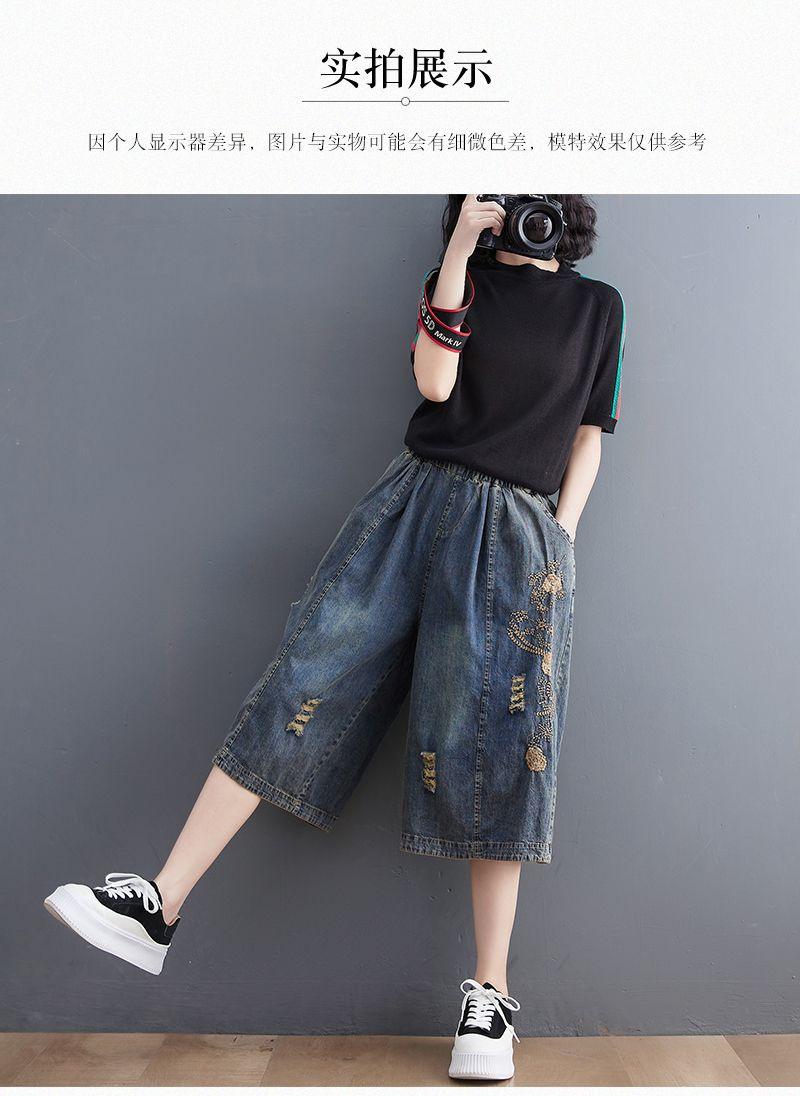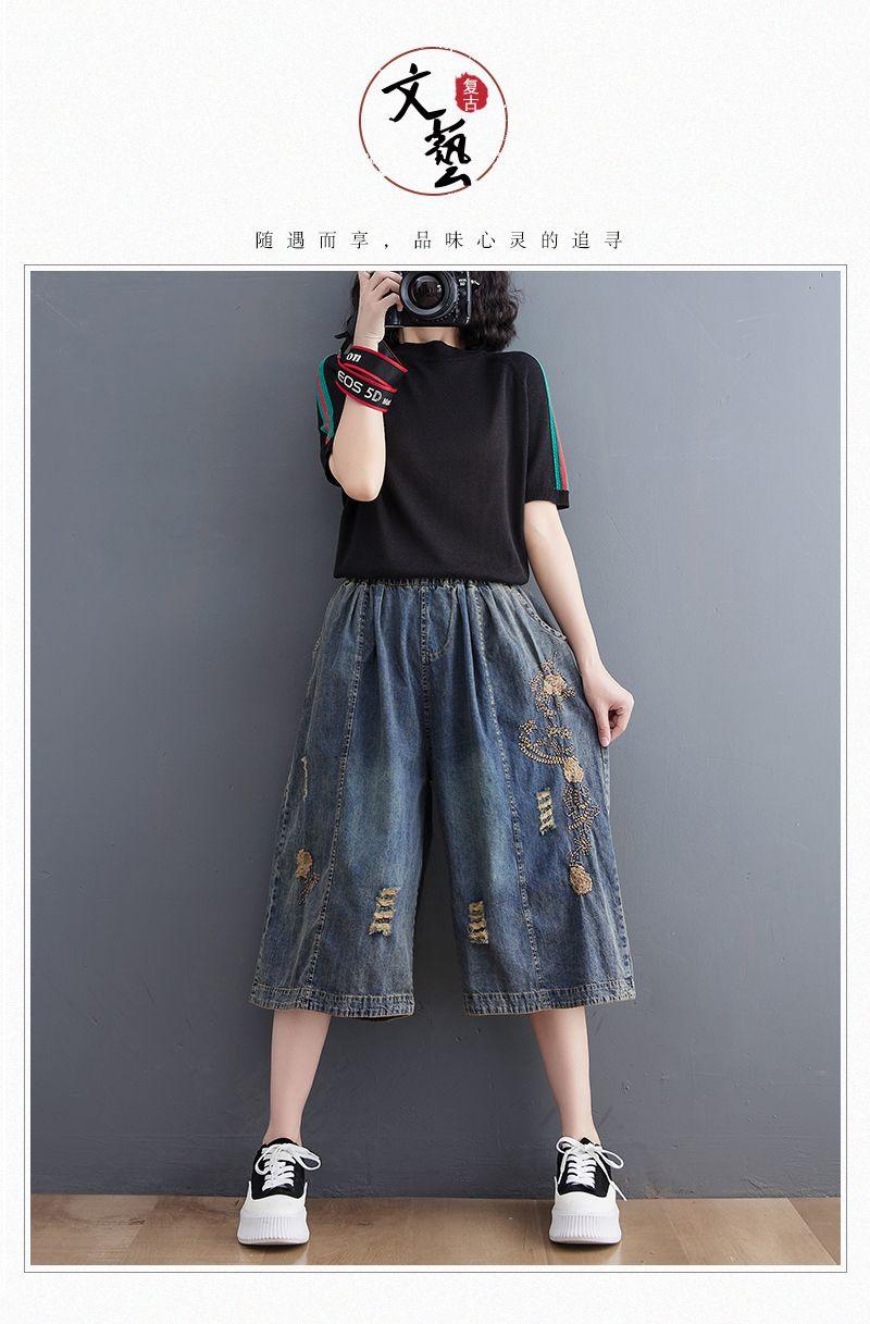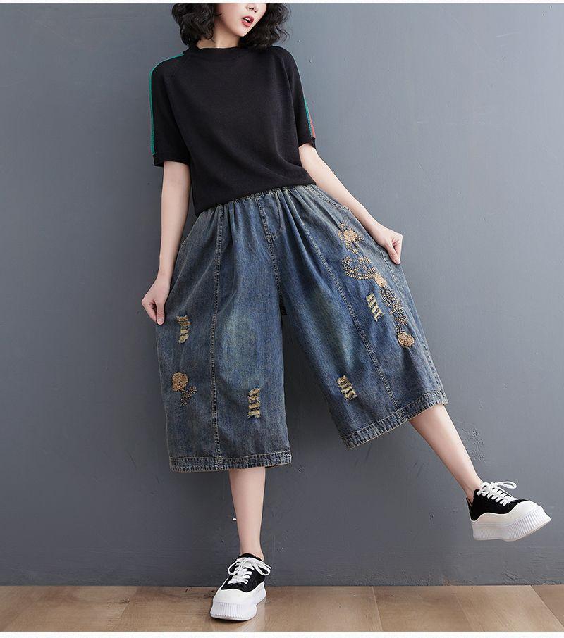 Pantalones vaqueros de pierna ancha de talla grande para mujer 2025 verano nueva llegada holgados de corte slim cintura elastoelástica agujeros bordados pantalones capri para mujer