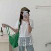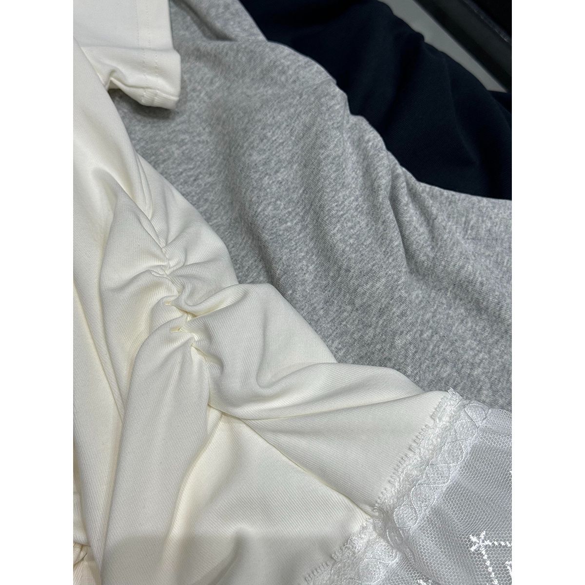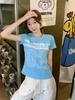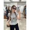 Camiseta de Diseño Estilo Coreano con Costuras de Encaje Plisado para Mujer 2025 Verano Nueva Ajustada Adelgazante Manga Corta