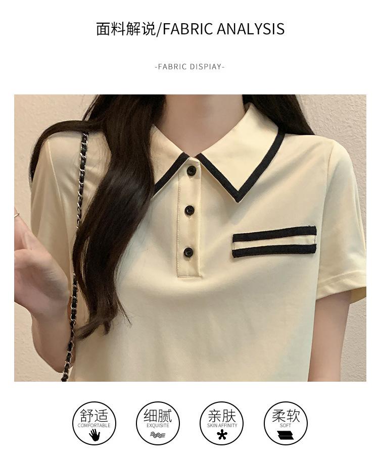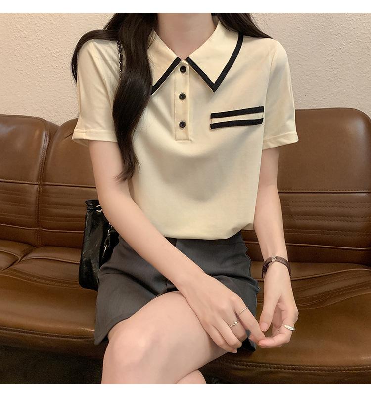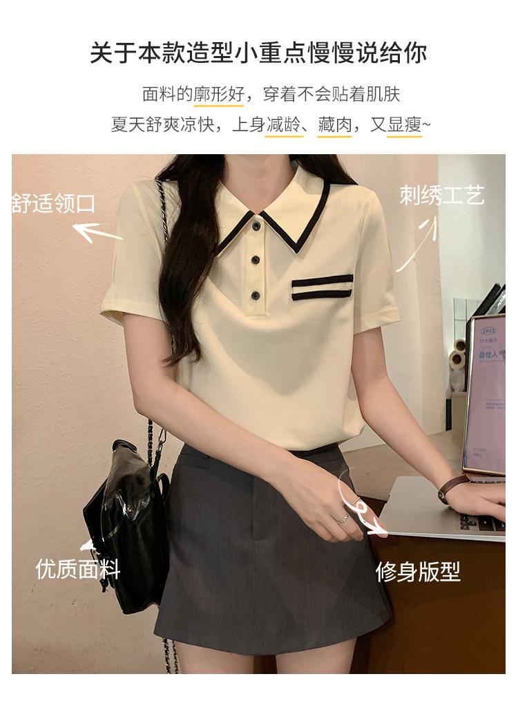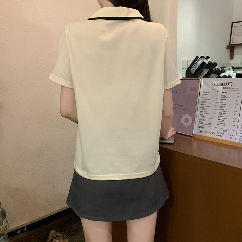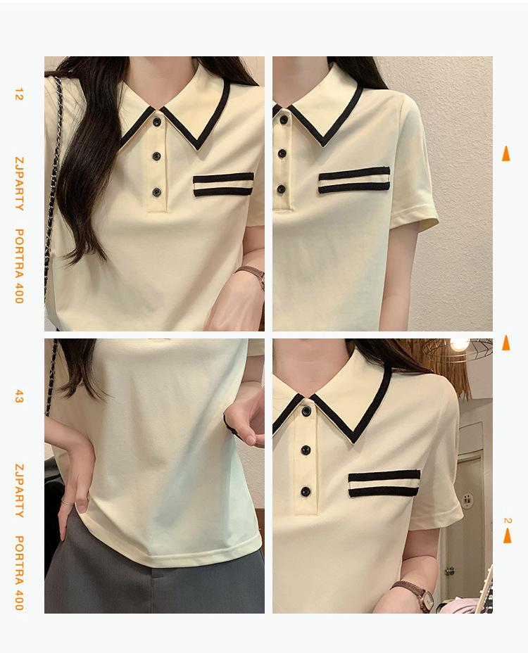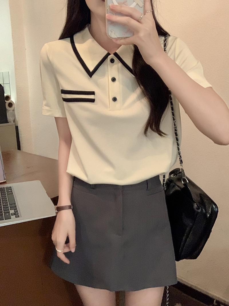 Camiseta de Manga Corta con Cuello Polo para Mujer en Verano, Holgada y Ajustada, Camiseta con Diseño de Nicho en el Hombro Derecho, Top de Media Manga Estilo Occidental