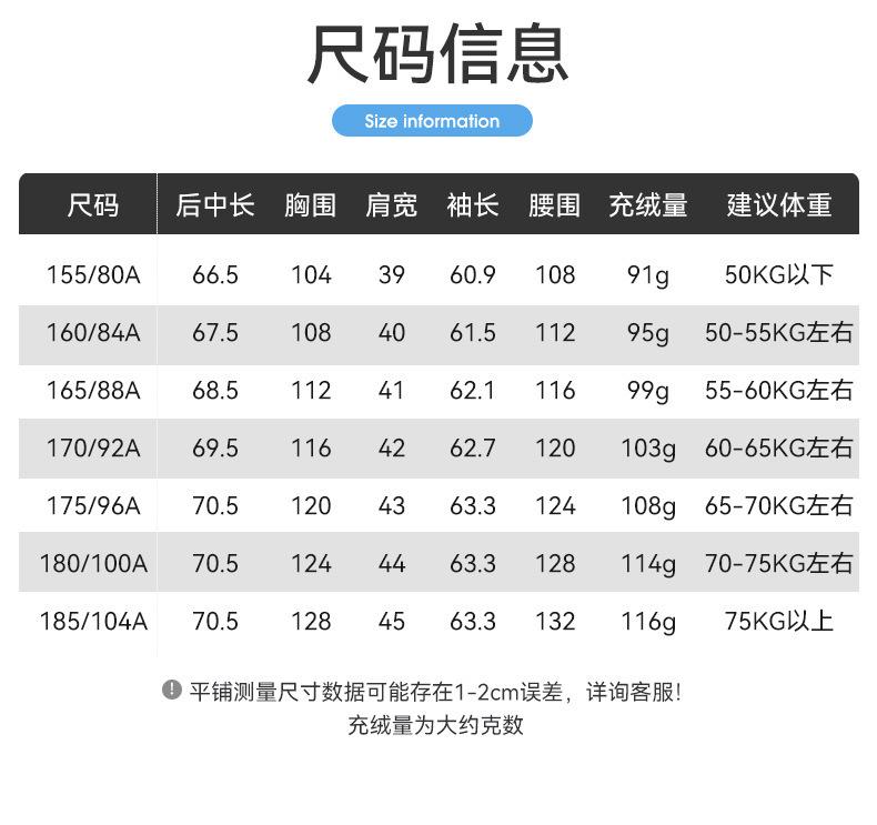 160/84A, 165/88A, 170/92A, 175/96A, 180/100A, 185/104A