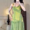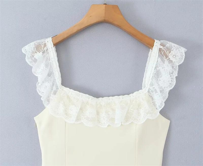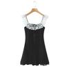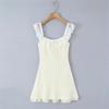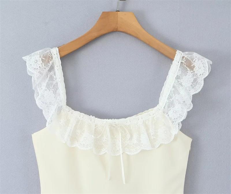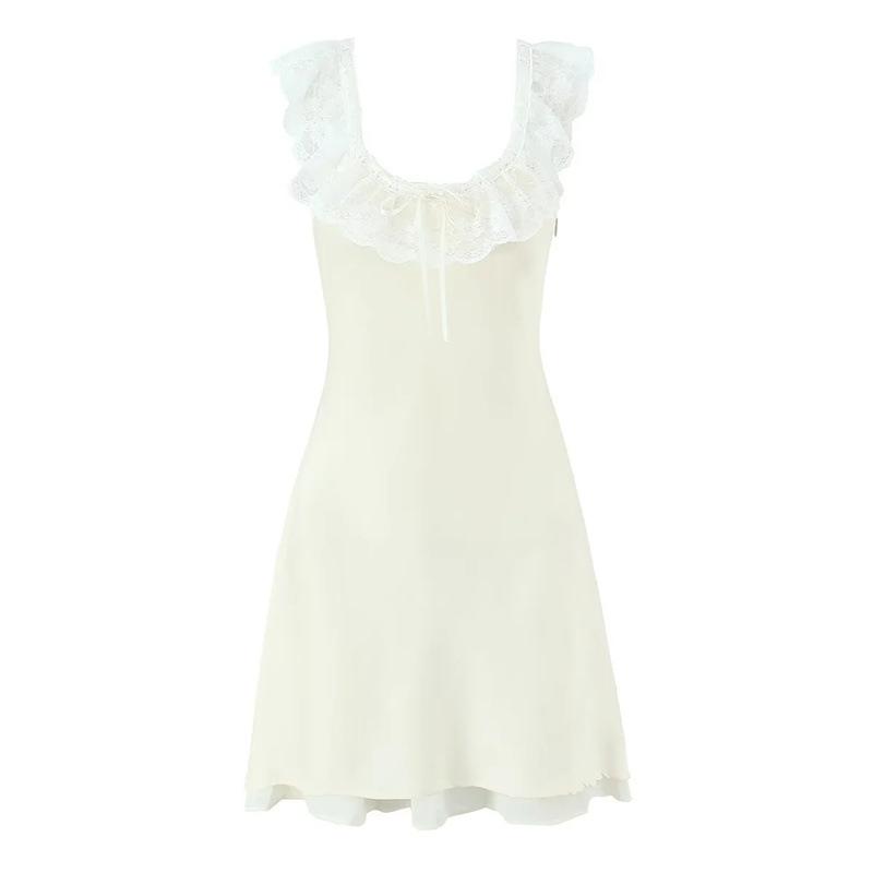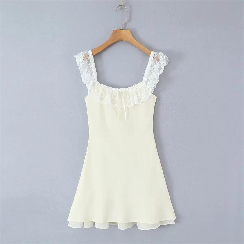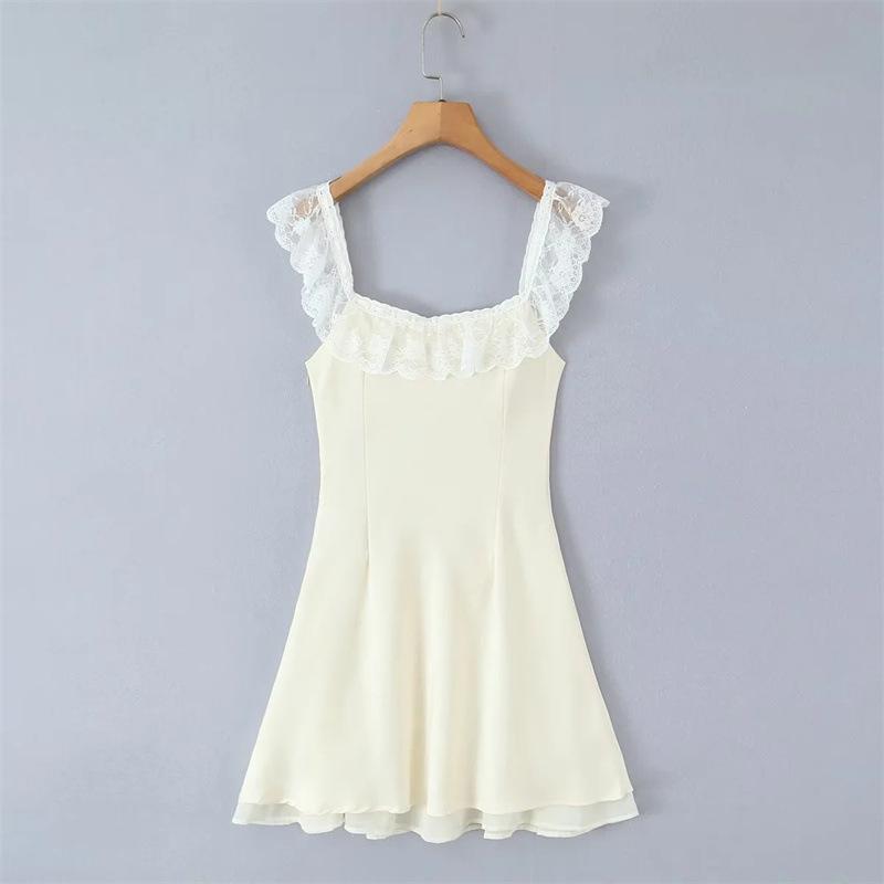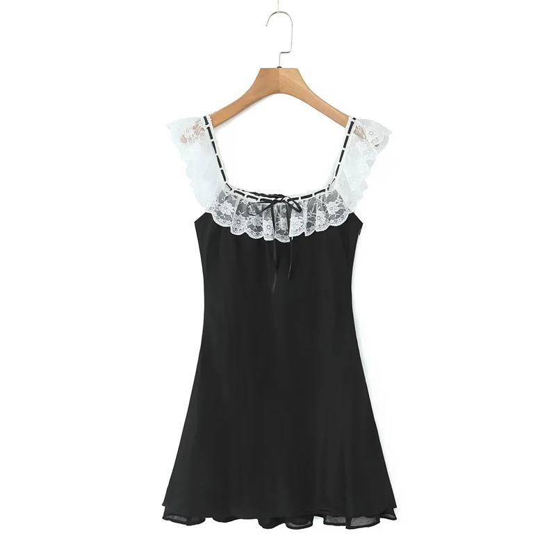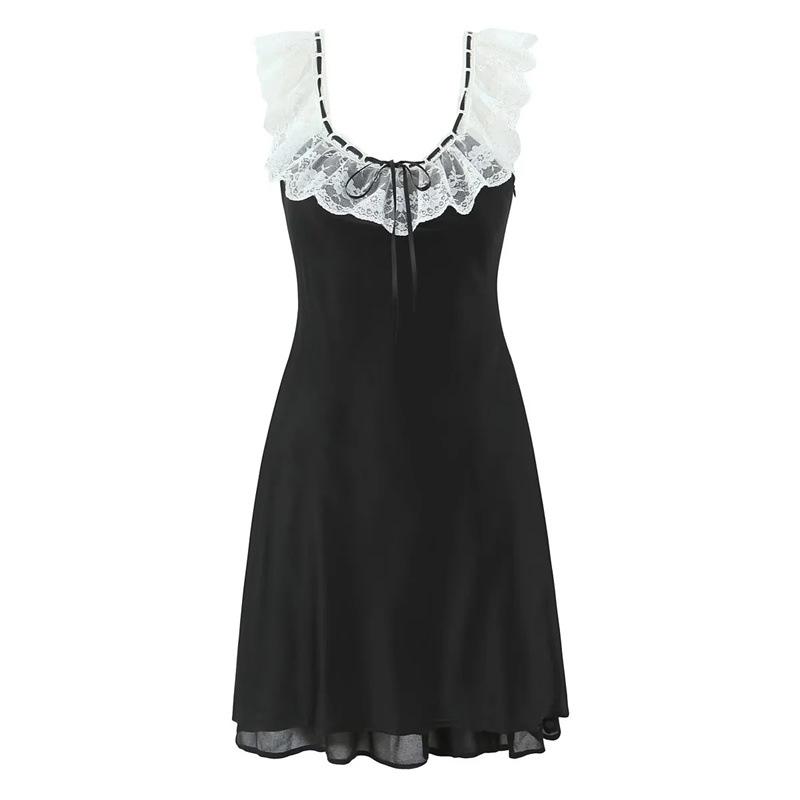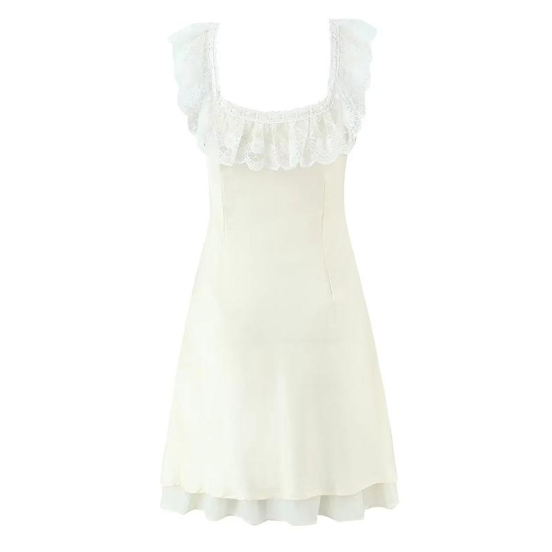 Lujuria Pura Sexy Sexy Vestido de Cintura con Encaje Fruncido Patchwork 2025 Verano Nuevo Falda de Tirantes Falda Corta para Mujer