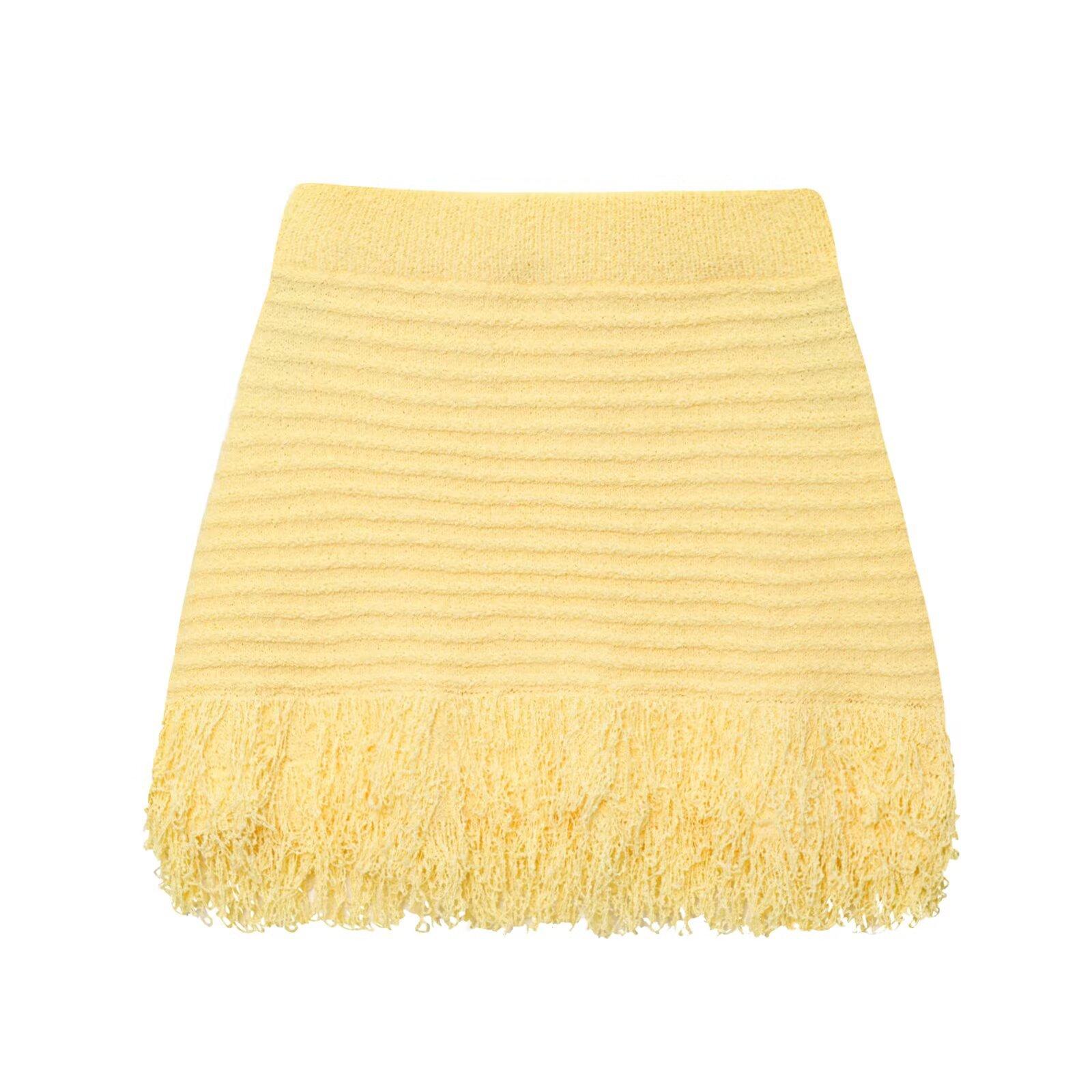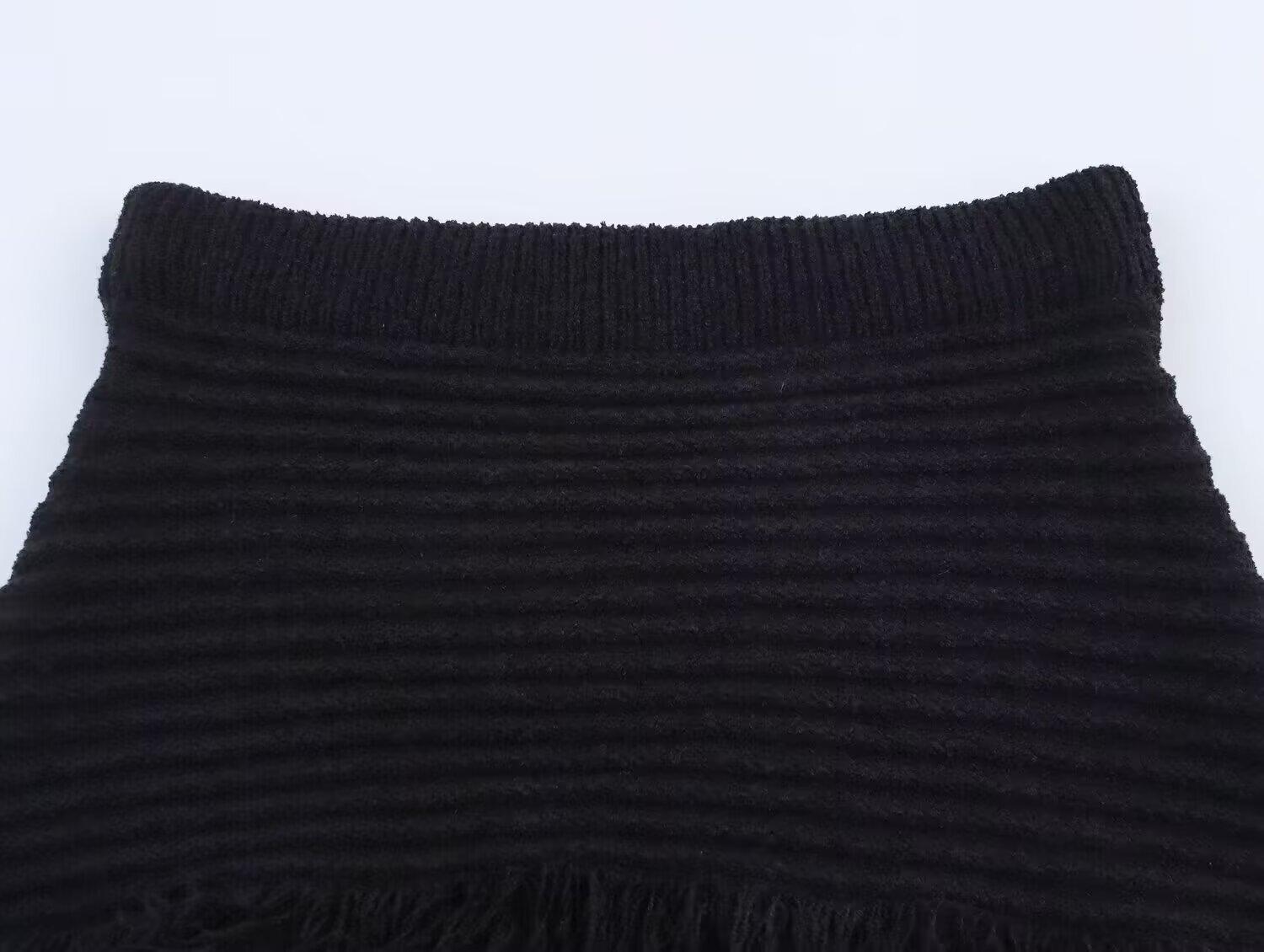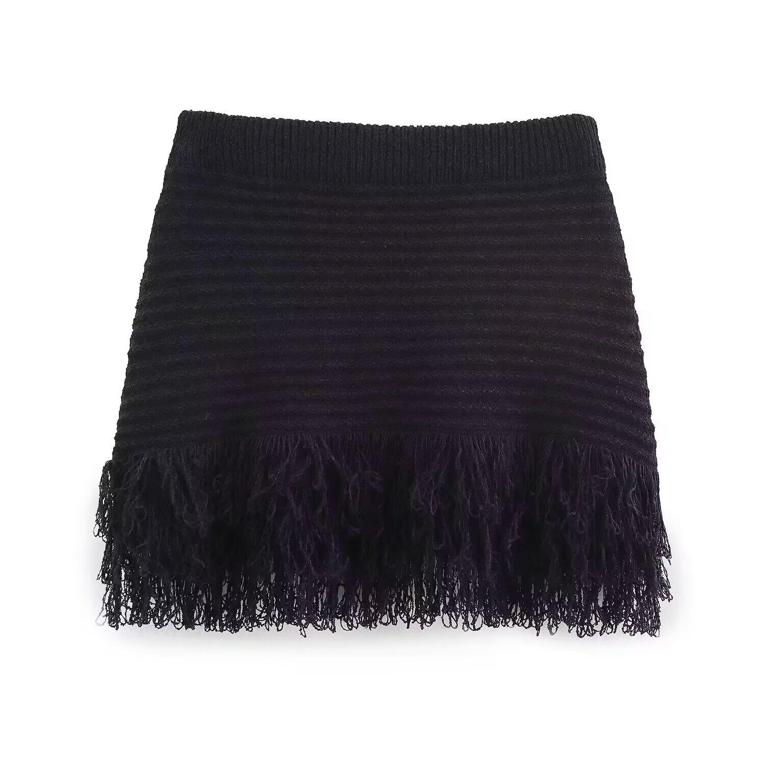 Exclusivo Transfronterizo Moda Europea y Americana Aliexpress Ins Popular Top y Falda de Punto a Cuadros con Flecos