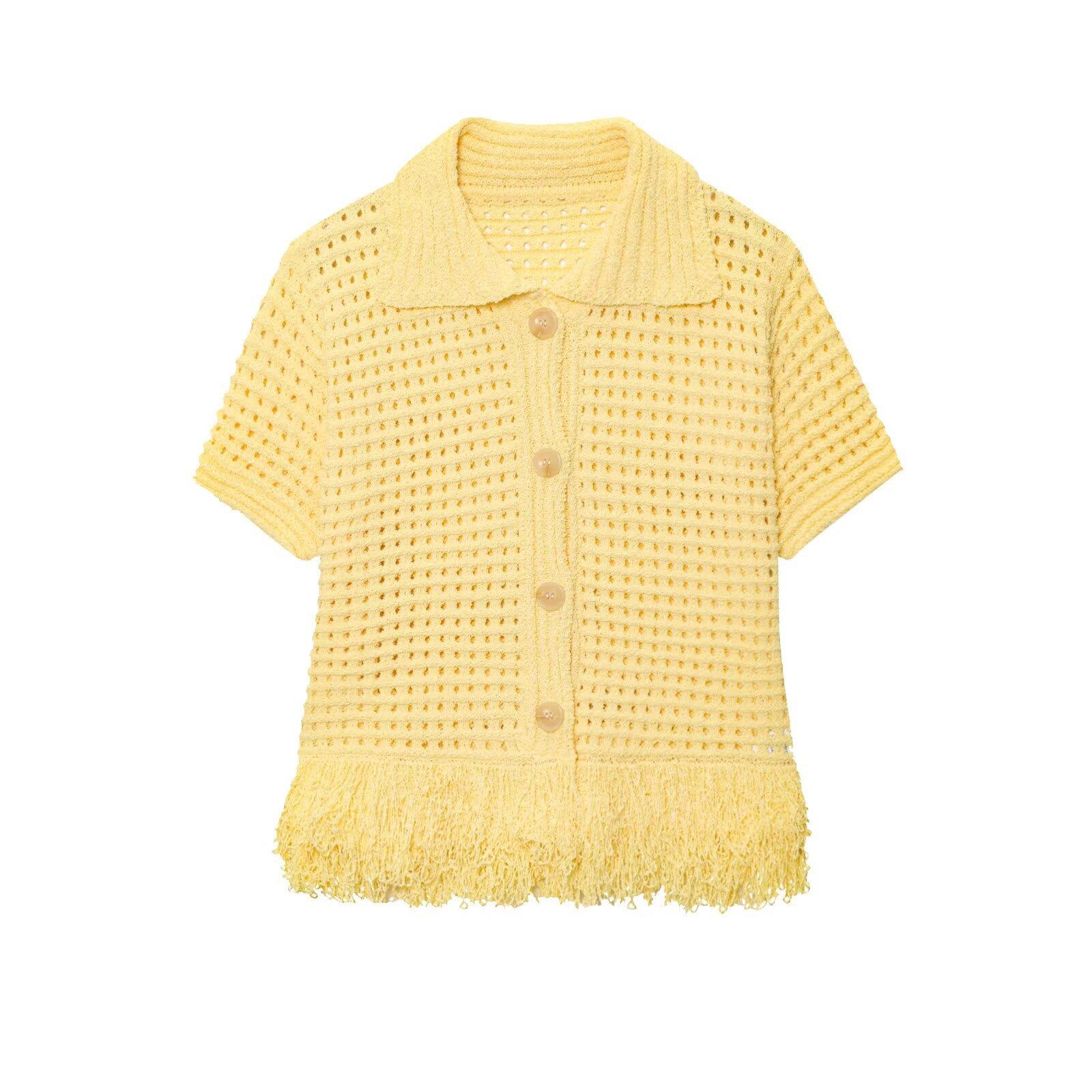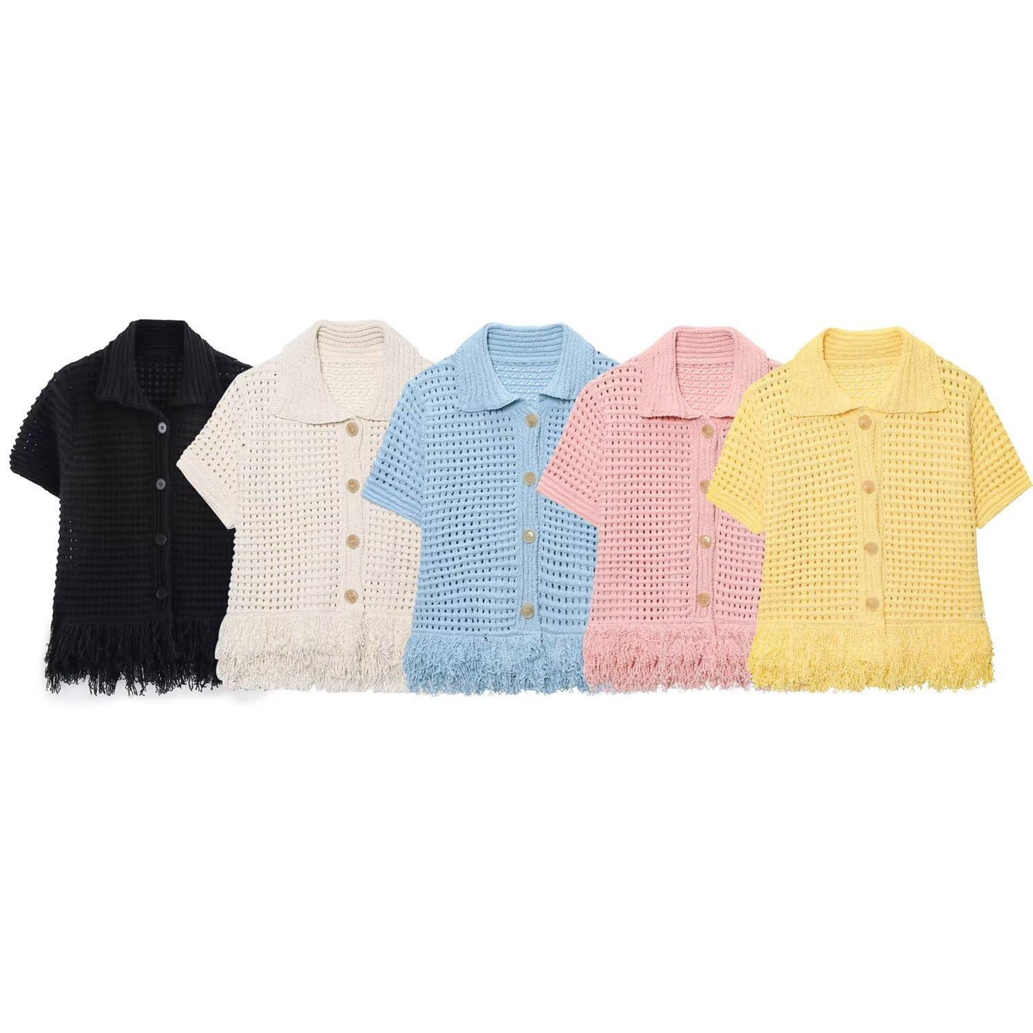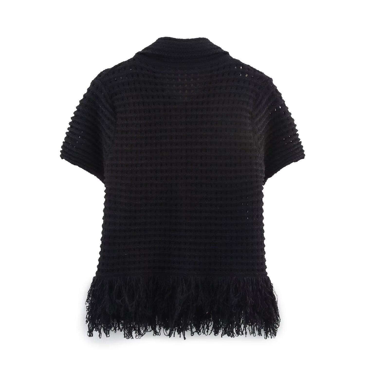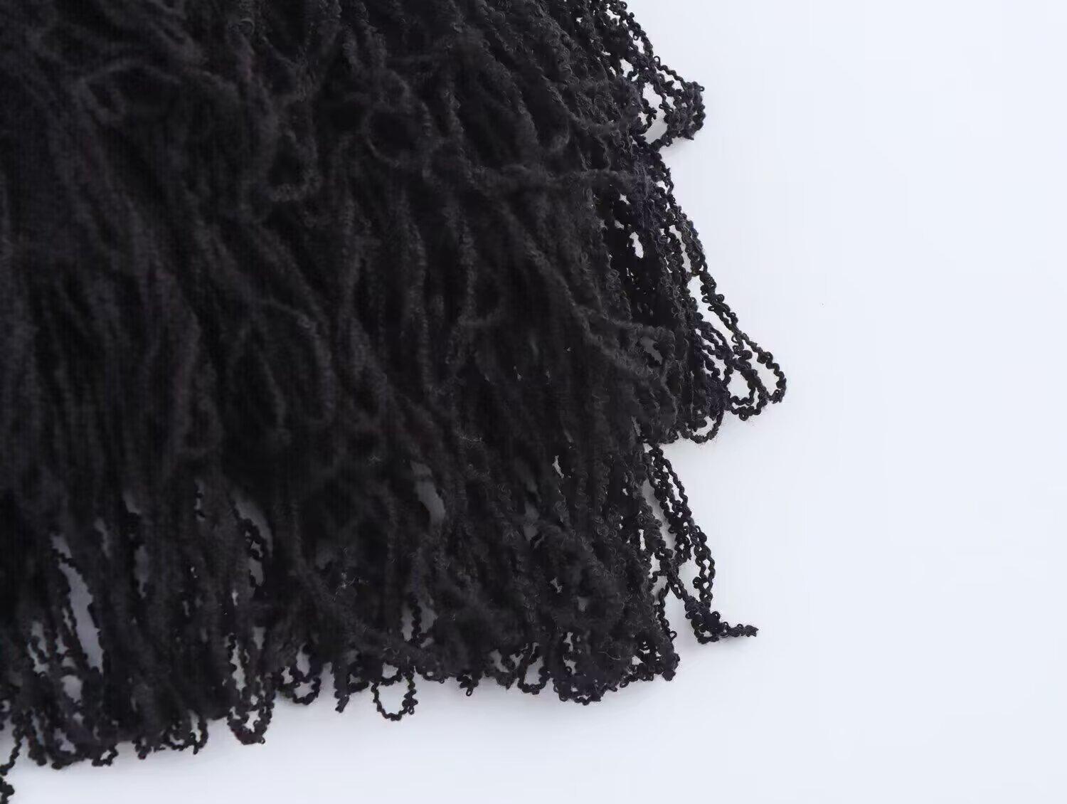 Exclusivo Transfronterizo Moda Europea y Americana Aliexpress Ins Popular Top y Falda de Punto a Cuadros con Flecos