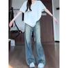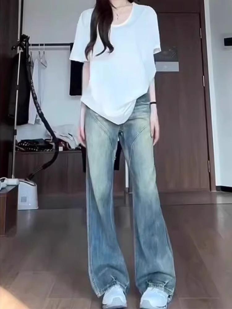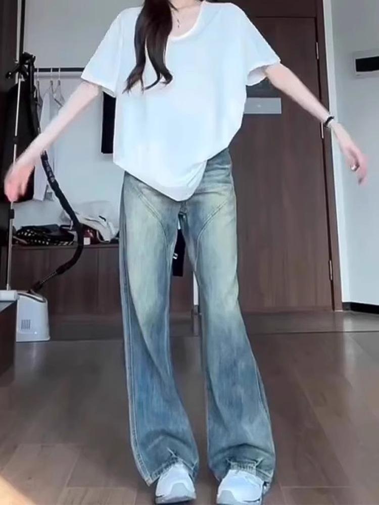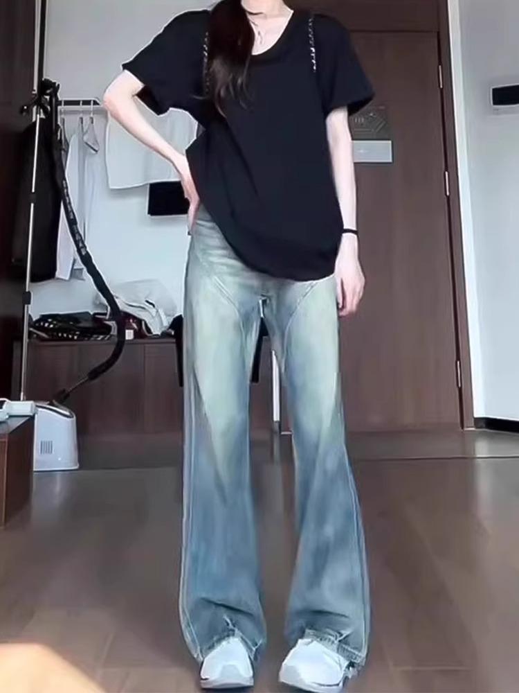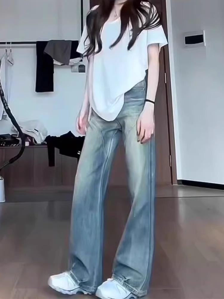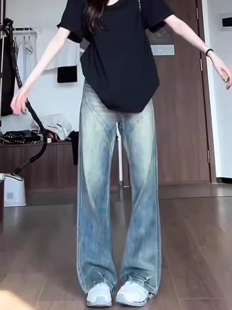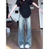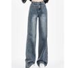 Jeans Retro de Pierna Ancha Estilo Americano Moda para Mujer Combinable Nuevo Cintura Alta Holgado Adelgazante Recto Pantalones Largos