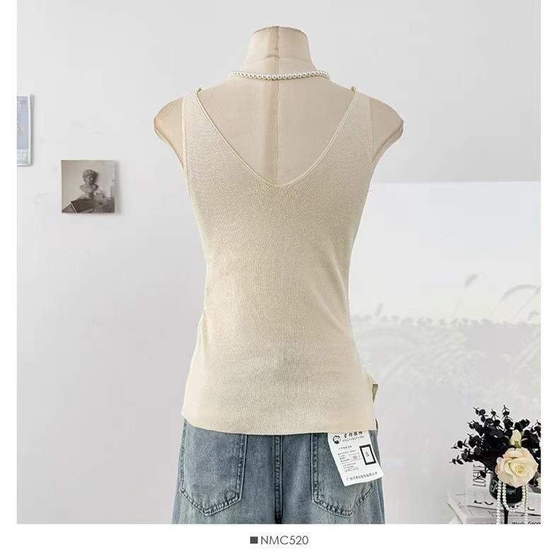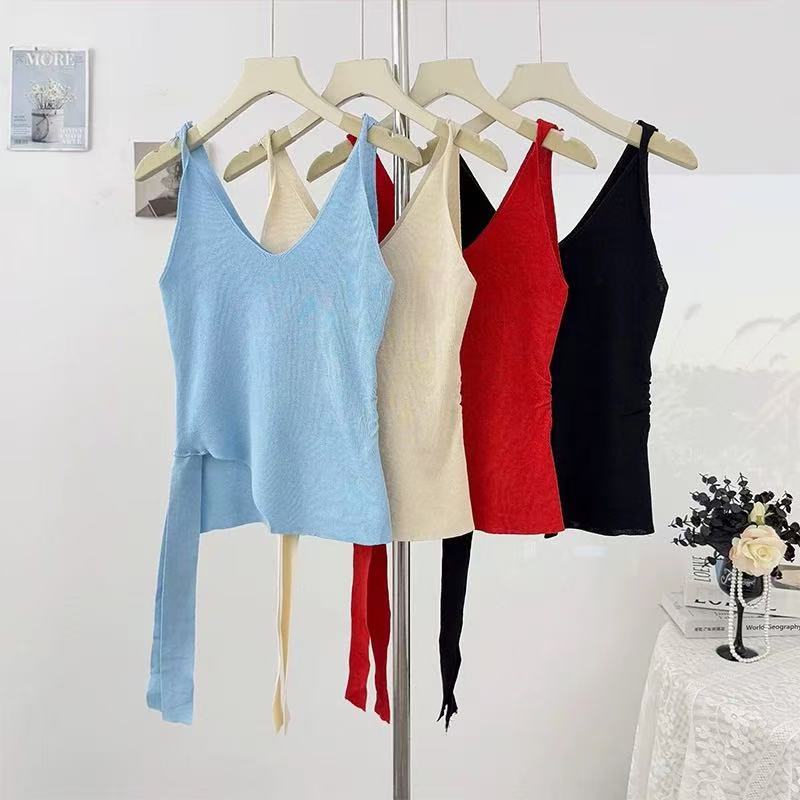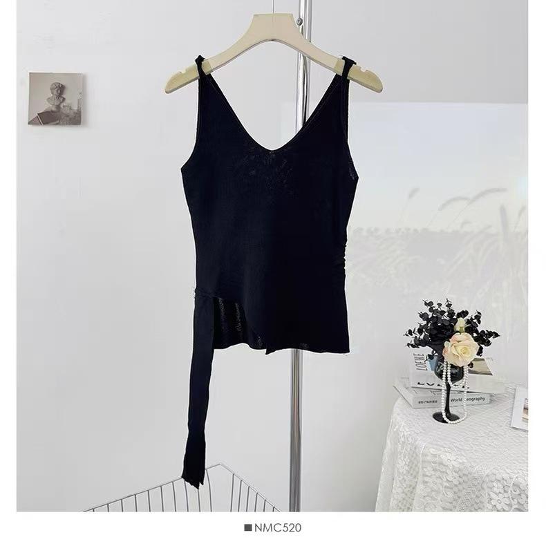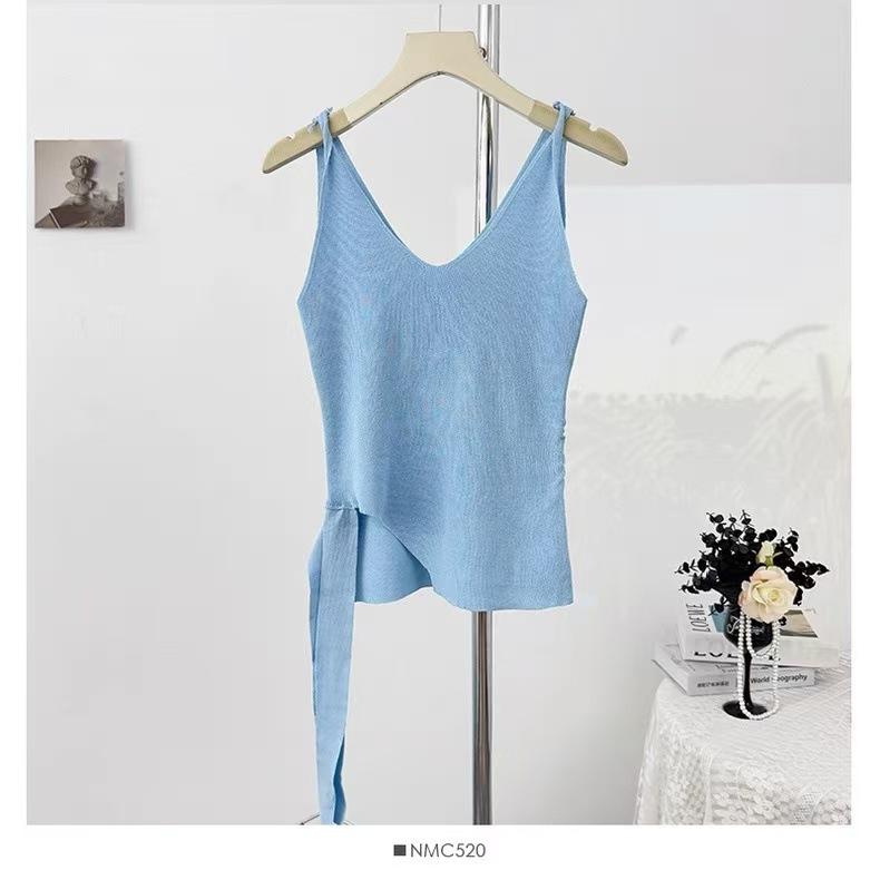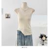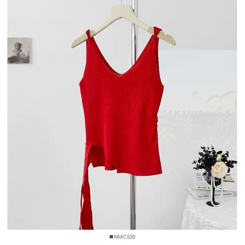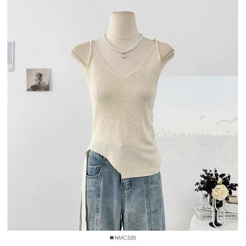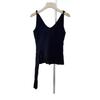 Francés Color Puro Cuello en V Tirante Asimétrico Sexy Tirantes Chaleco Corto de Punto sin Mangas para Verano para Mujer