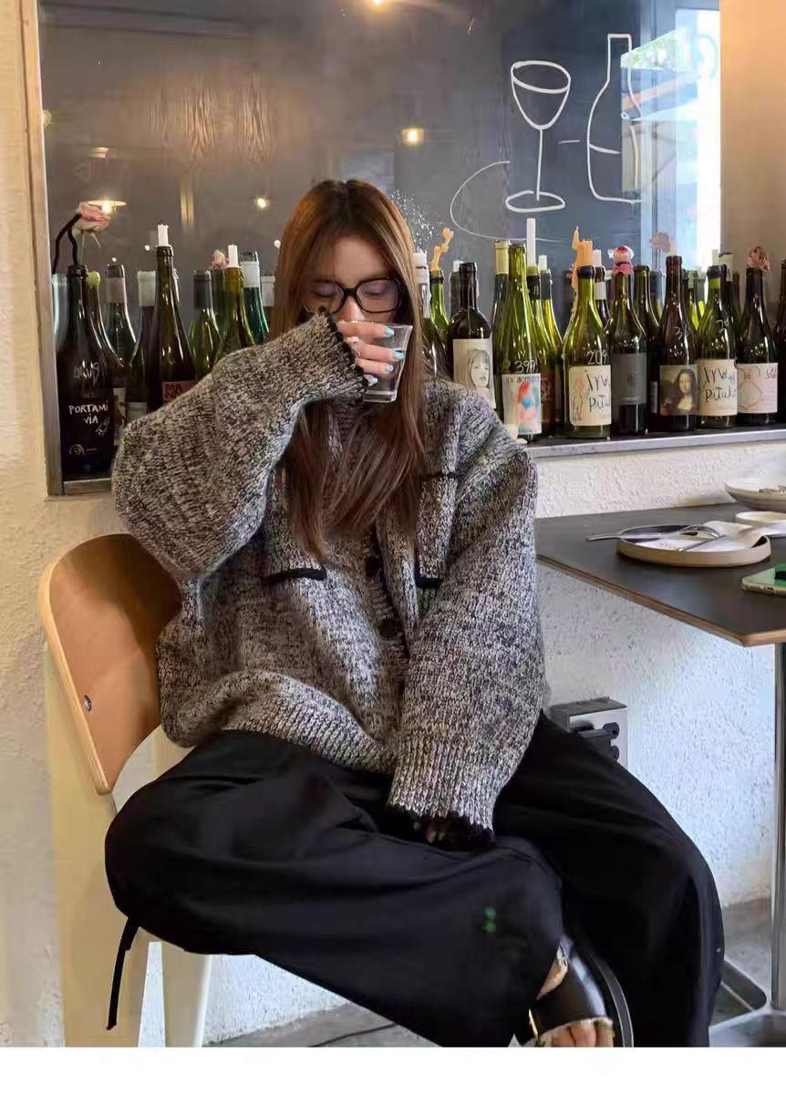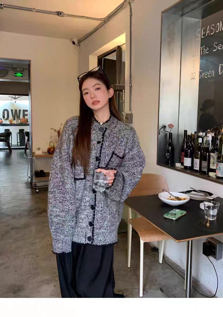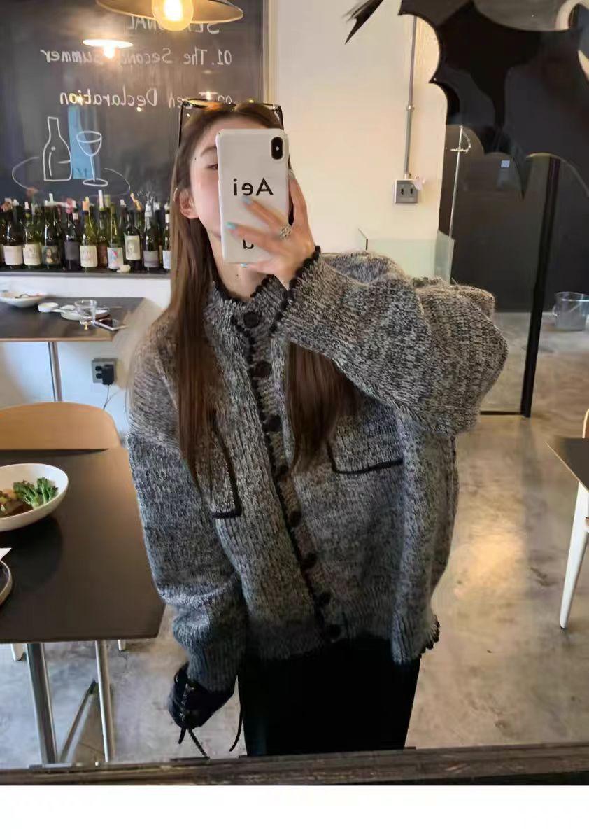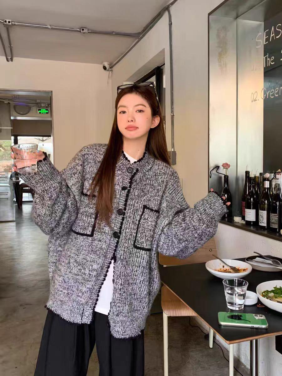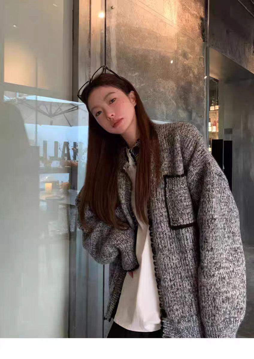 Cárdigan Suéter Nuevo Estilo Coreano para Mujer Cuello Redondo Estilo Perezoso Sentido del Diseño Suelto Suelto Casual Tejido Top