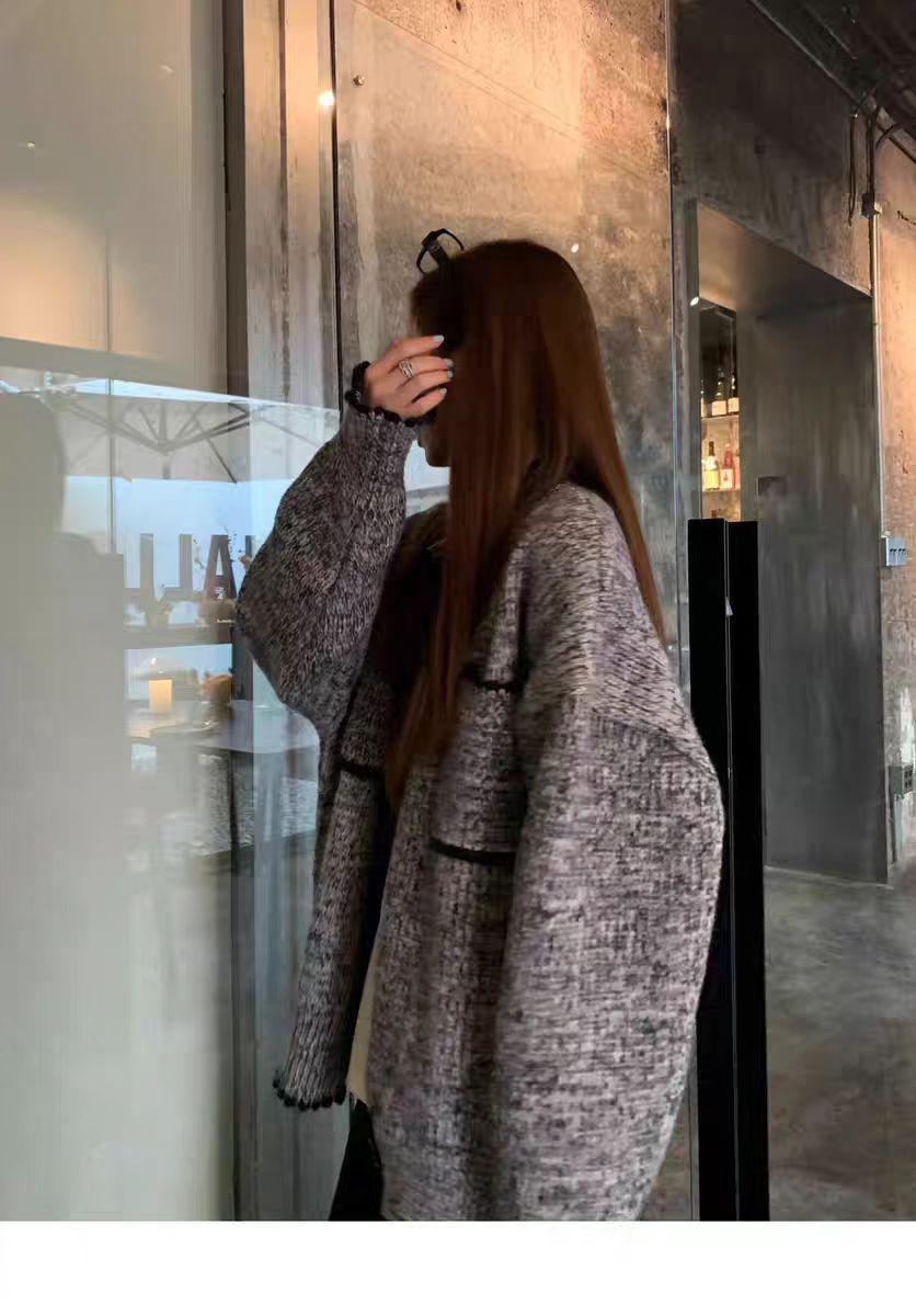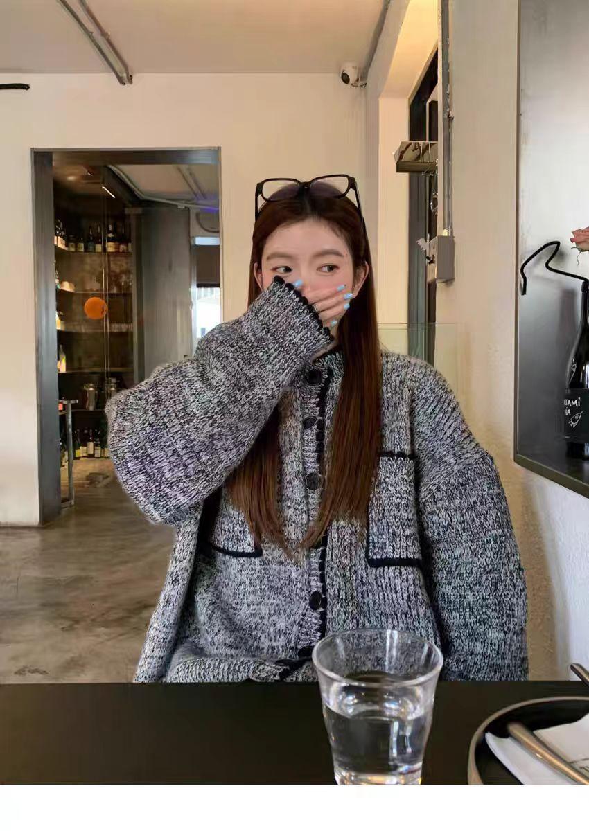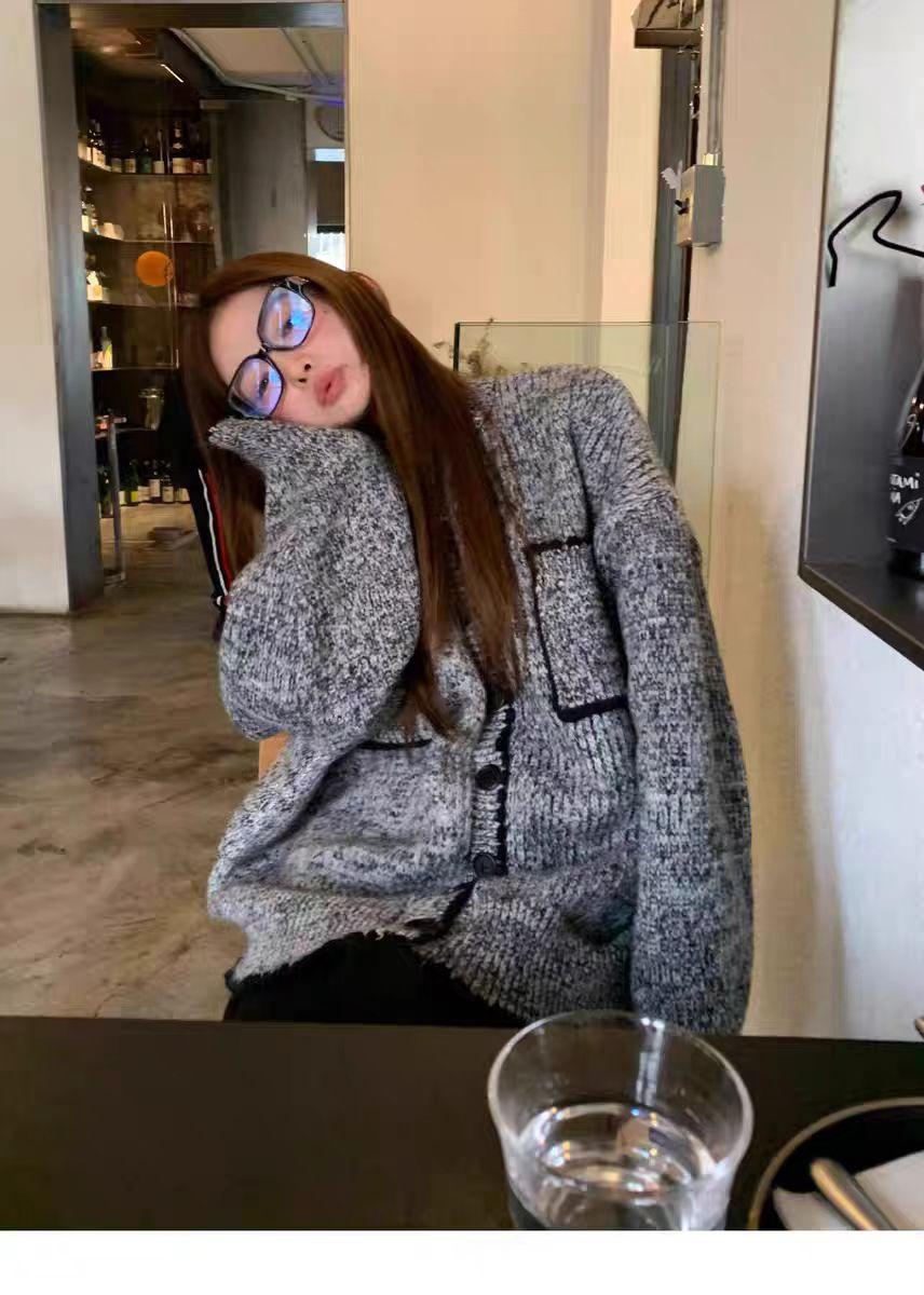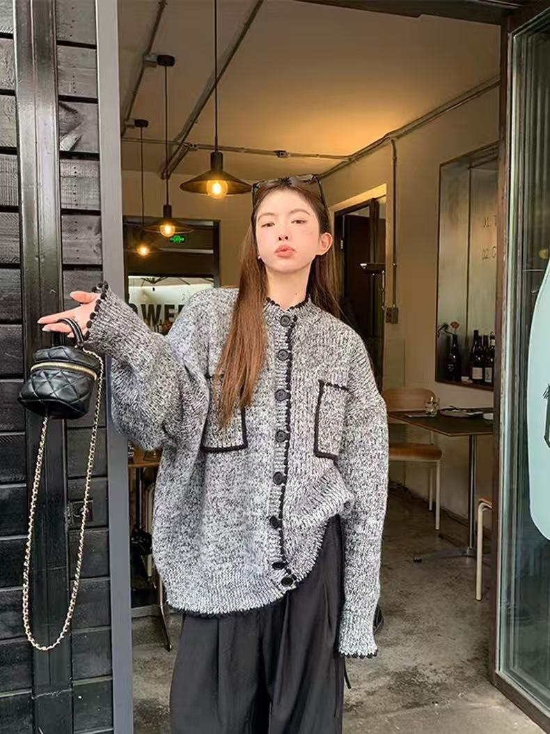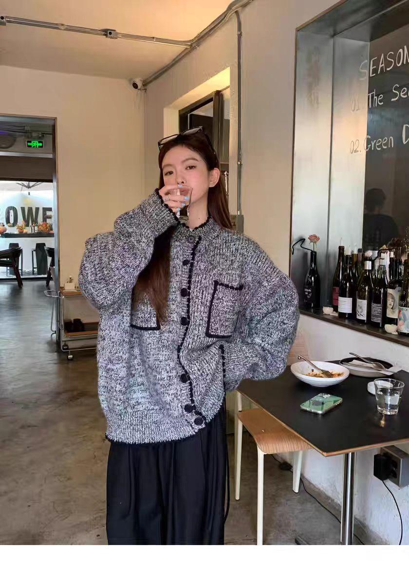Cárdigan Suéter Nuevo Estilo Coreano para Mujer Cuello Redondo Estilo Perezoso Sentido del Diseño Suelto Suelto Casual Tejido Top