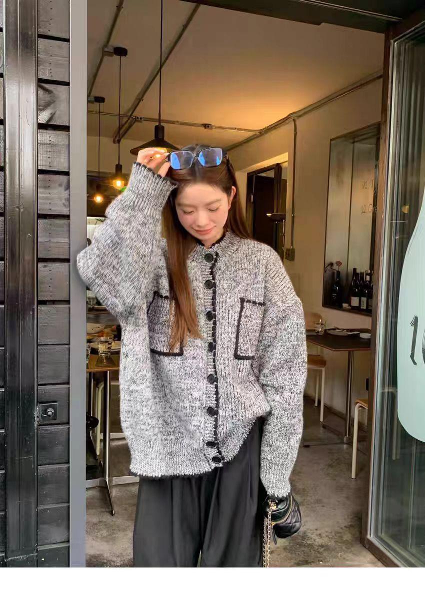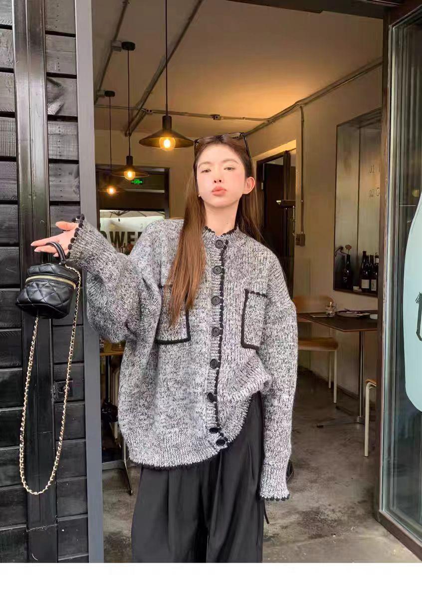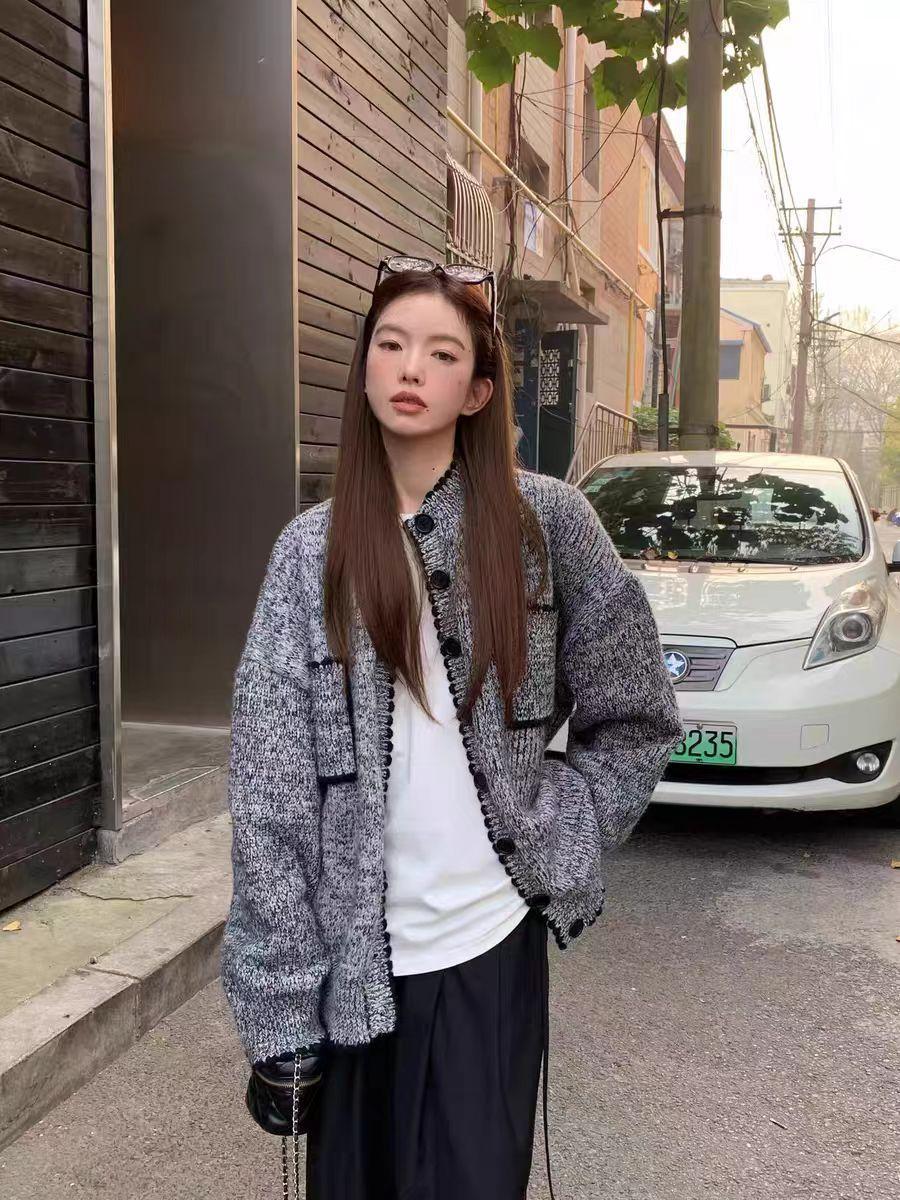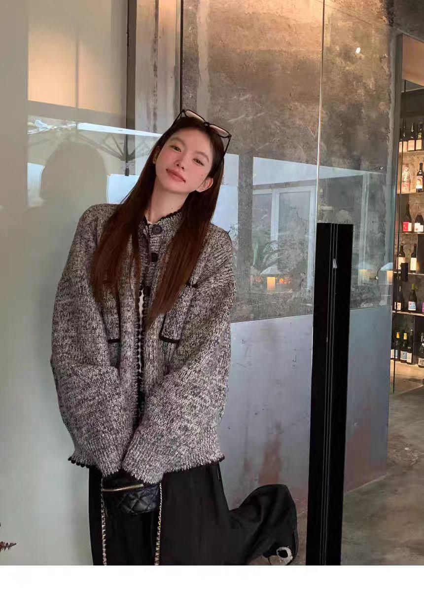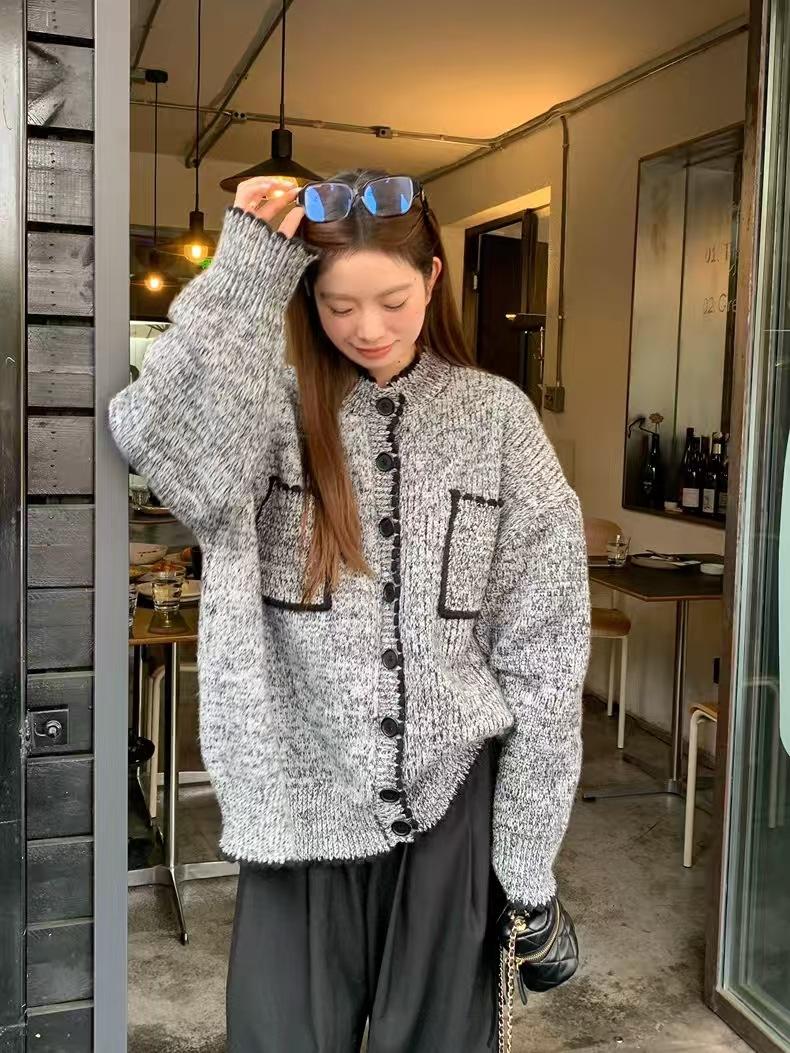 Cárdigan Suéter Nuevo Estilo Coreano para Mujer Cuello Redondo Estilo Perezoso Sentido del Diseño Suelto Suelto Casual Tejido Top