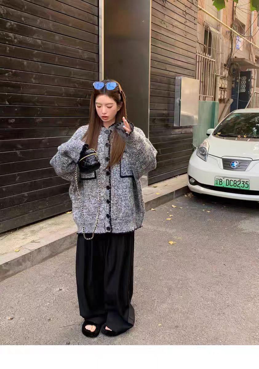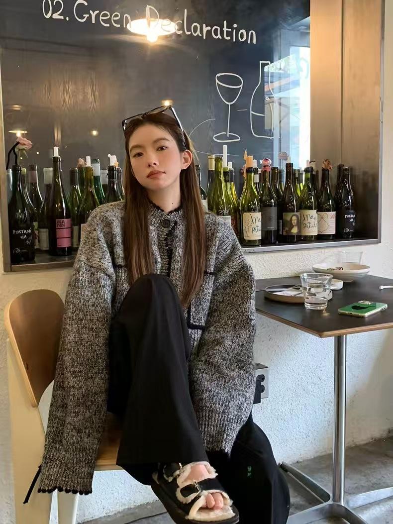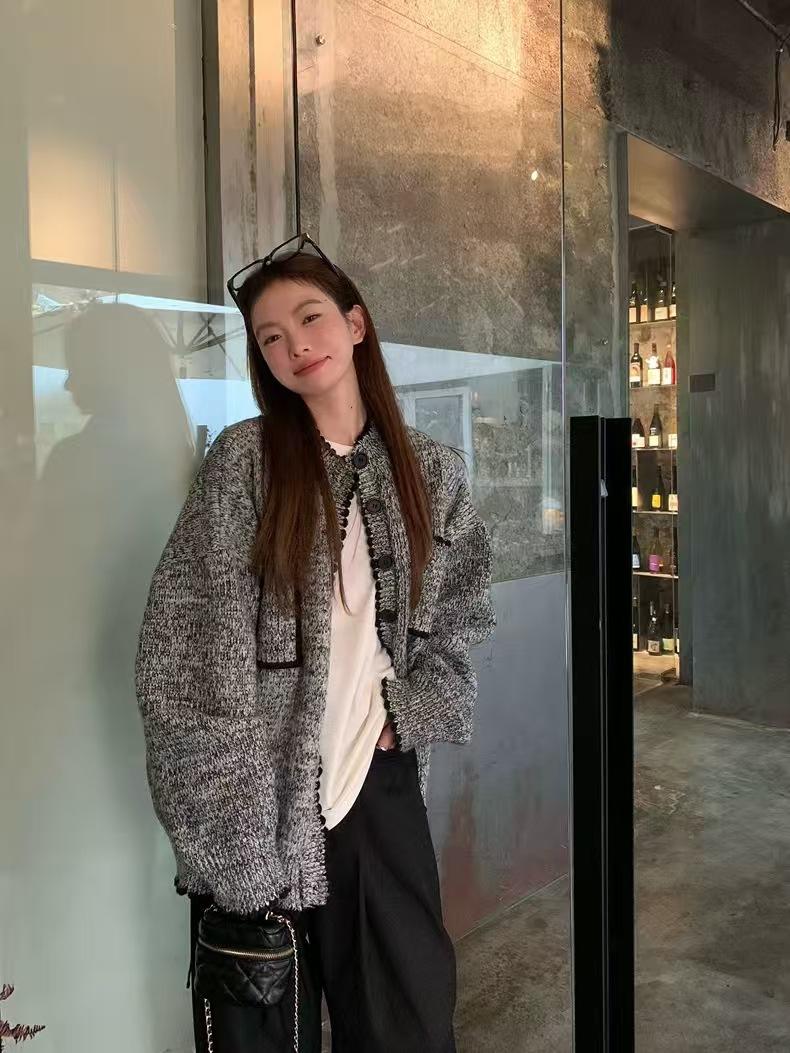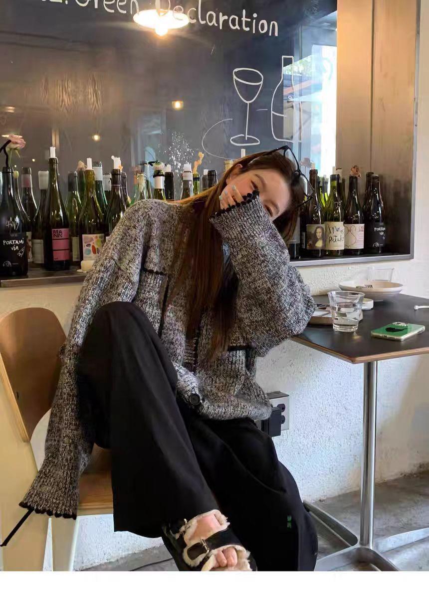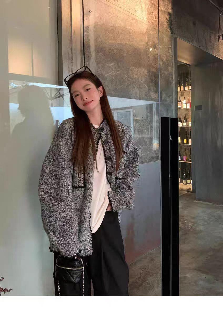 Cárdigan Suéter Nuevo Estilo Coreano para Mujer Cuello Redondo Estilo Perezoso Sentido del Diseño Suelto Suelto Casual Tejido Top