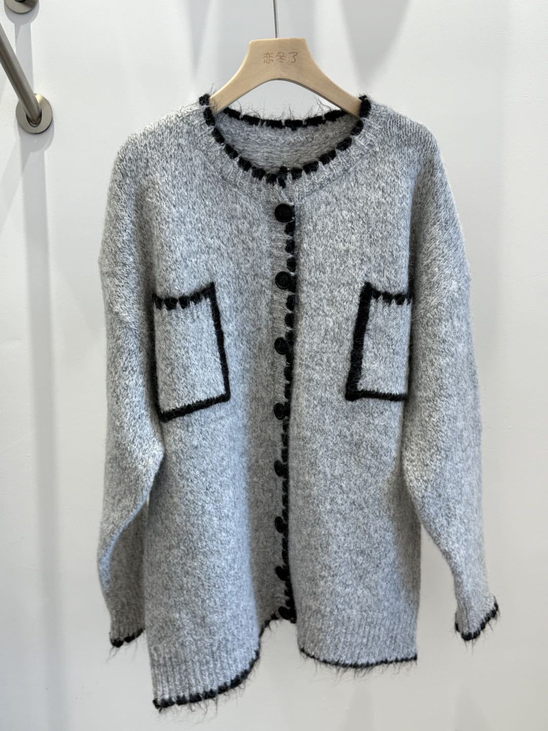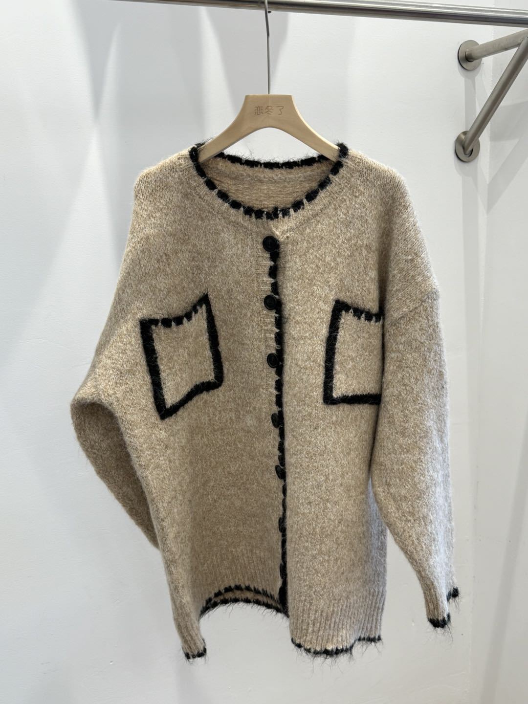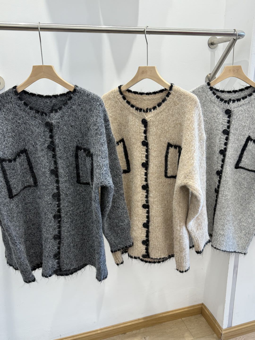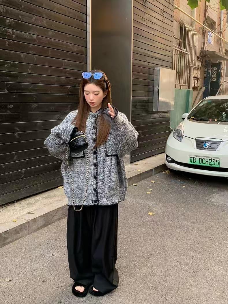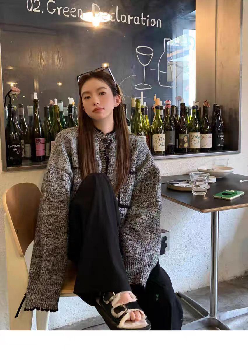 Cárdigan Suéter Nuevo Estilo Coreano para Mujer Cuello Redondo Estilo Perezoso Sentido del Diseño Suelto Suelto Casual Tejido Top